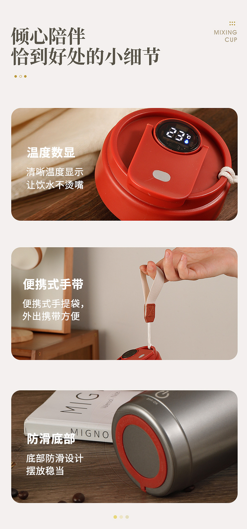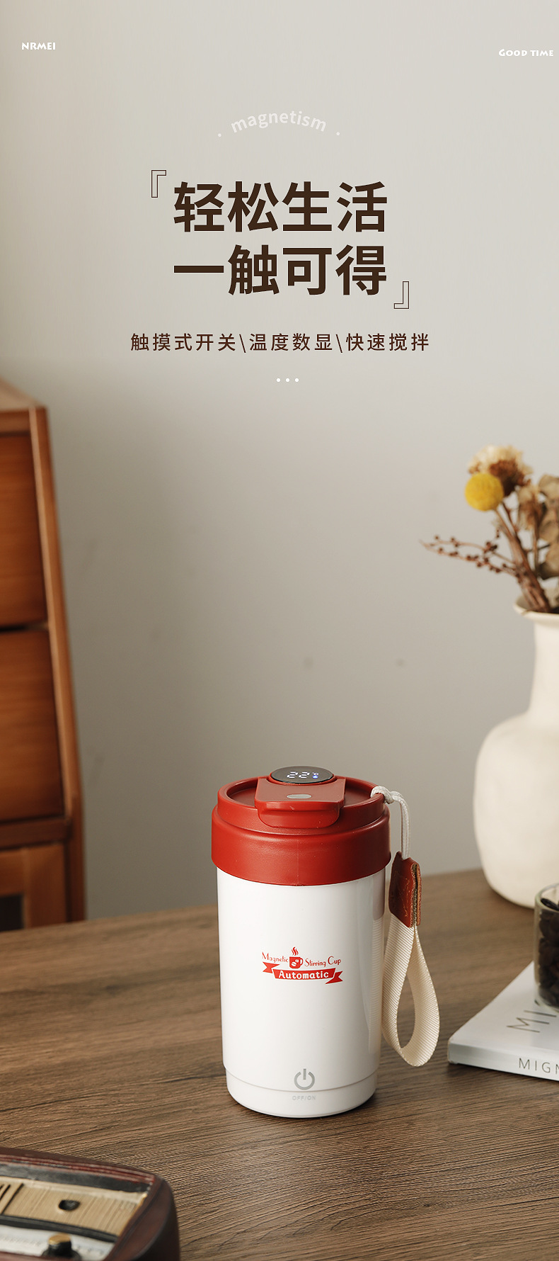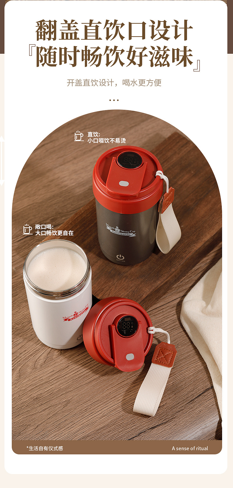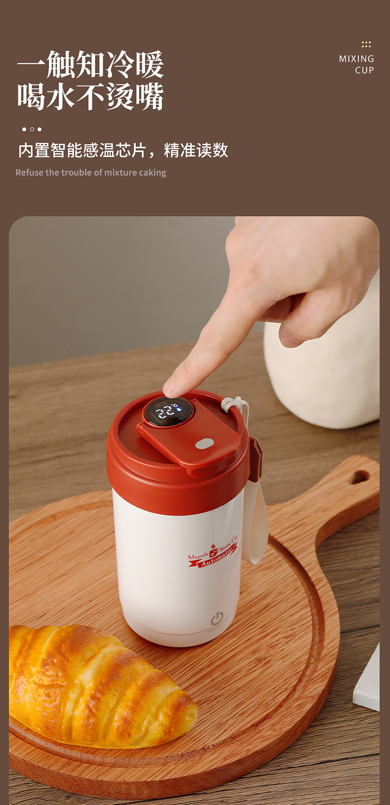 新款搅拌杯【轻松生活!一触可得】智能数显咖啡杯316便携磁力搅拌杯温度显示充电搅拌杯,磁力感应 双击启动自动搅拌。ry