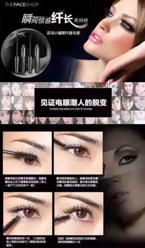 韩国正品🇰🇷菲诗小铺THE FACE SHOP睫毛膏菲詩小鋪熱賣到爆💥的一款睫毛膏😘01#纖長型㊙️02#濃密型,大肚子睫毛膏,睫毛膏家族的明星🌟。防水☔️不暈染,不脫妝而且好塗,就算你是新手也不用擔❤️。刷再濃密也不會像劣質睫毛膏感覺抹了膠水那樣硬邦邦😖,輕如羽翼🕊有木有。更不用擔心會結塊,變蒼蠅腿🕷,又長又濃又卷翹。卷翹保持度也是普通睫毛膏望塵莫及的👏🏻👏🏻,真正的又長又濃又卷翹👍🏻👍🏻👍🏻。
