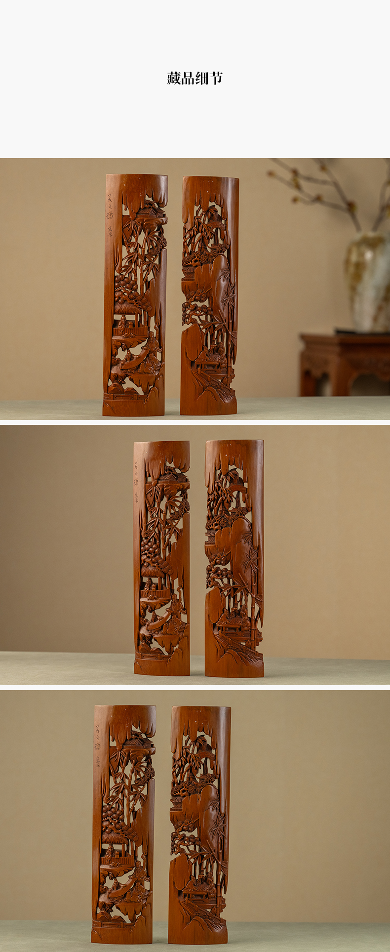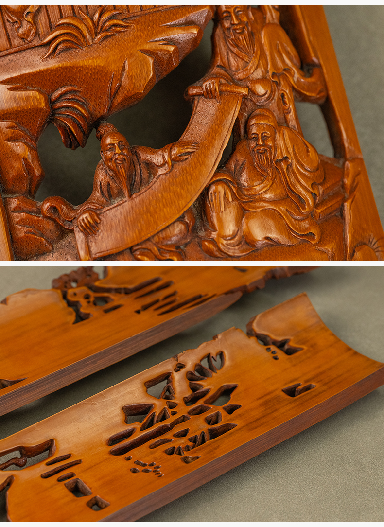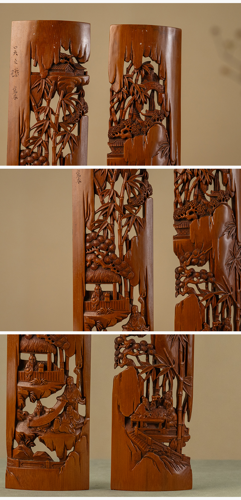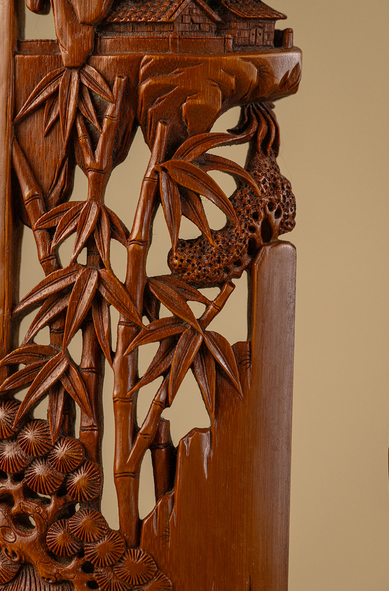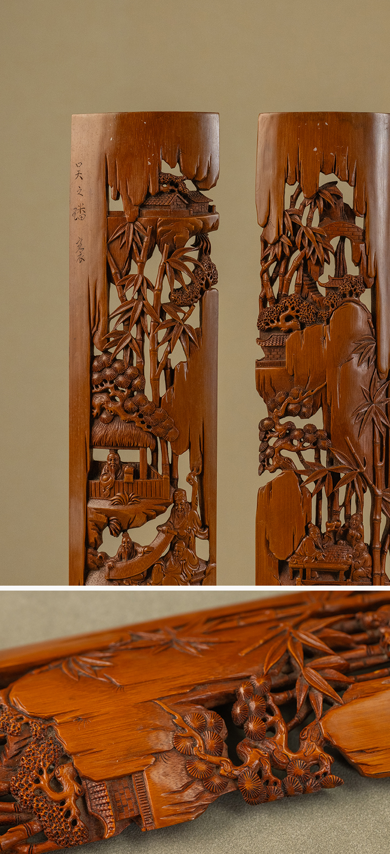二十世纪 吴之璠款竹雕文人雅集臂搁(一对)
