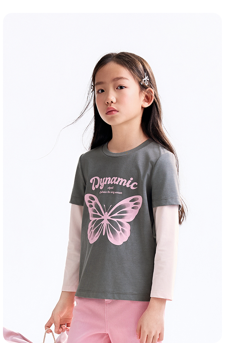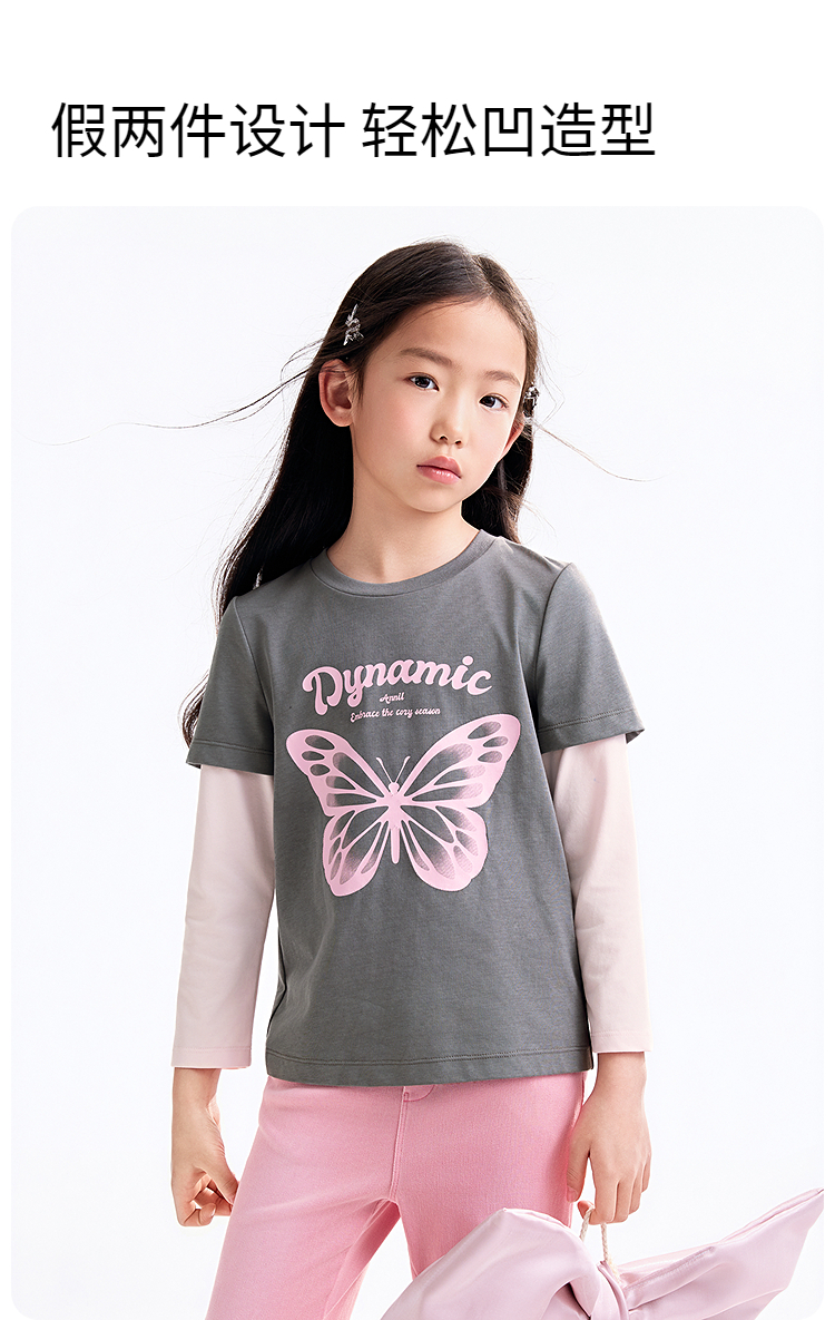 【实体店同款】女童圆领长袖T恤秋季新款安奈儿童装AG531283