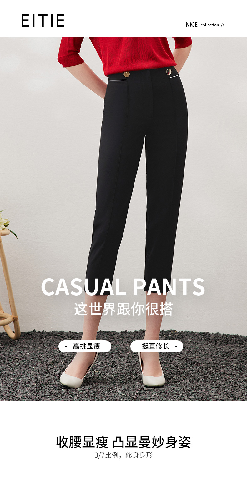EITIE爱特爱春季新款职业干练通勤显瘦直筒裤女百搭长裤6905615