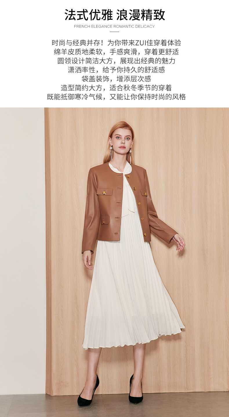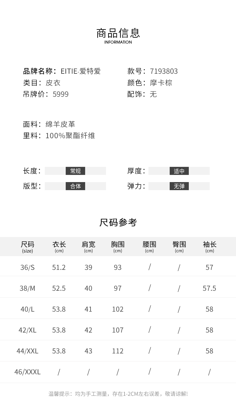 EITIE爱特爱冬季新款气质羊毛羊皮革皮衣外套7193803