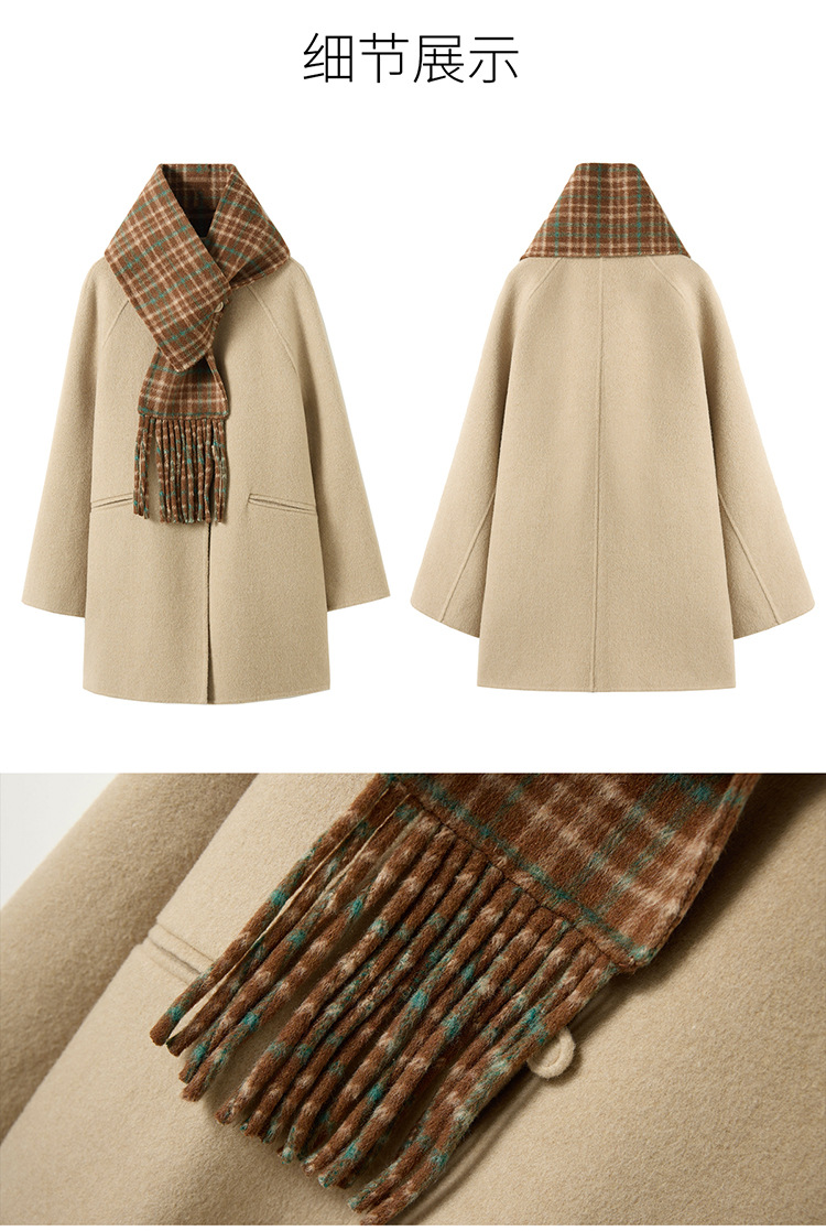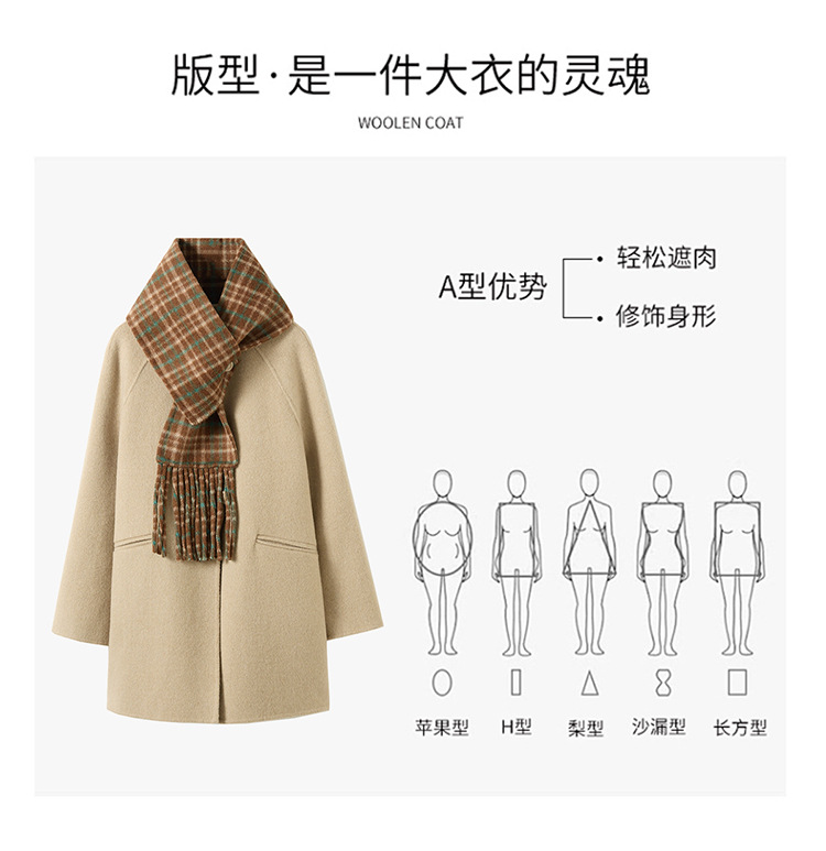 双面呢羊毛大衣,气质名媛时尚围巾外套HR-ZYQQ26
