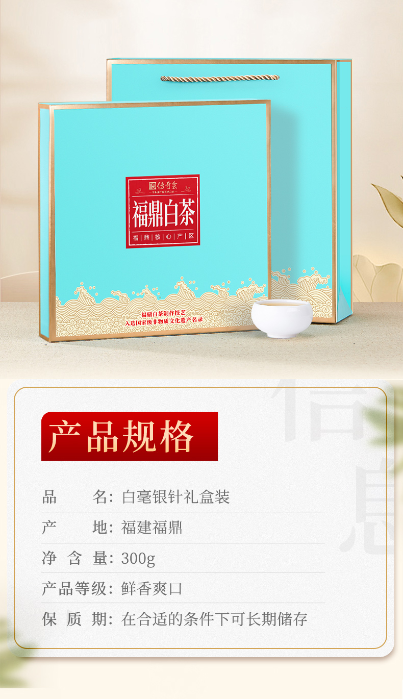 传奇会茶叶 福鼎白茶 白毫银针 陈年品质老白茶礼盒装300g