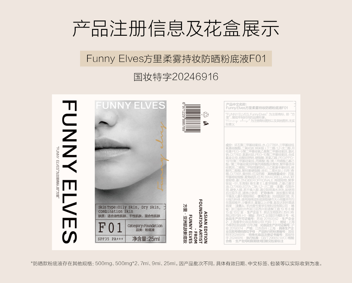 【口袋装】Funnyelves方里持妆粉底液7ml/防晒粉底液9ml