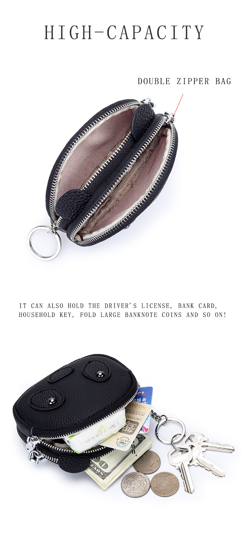 雀说 头层牛皮女零钱包双层拉链收纳包YT-26