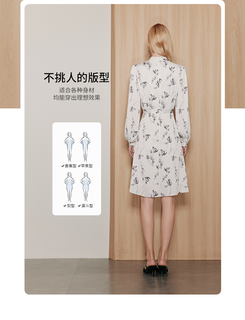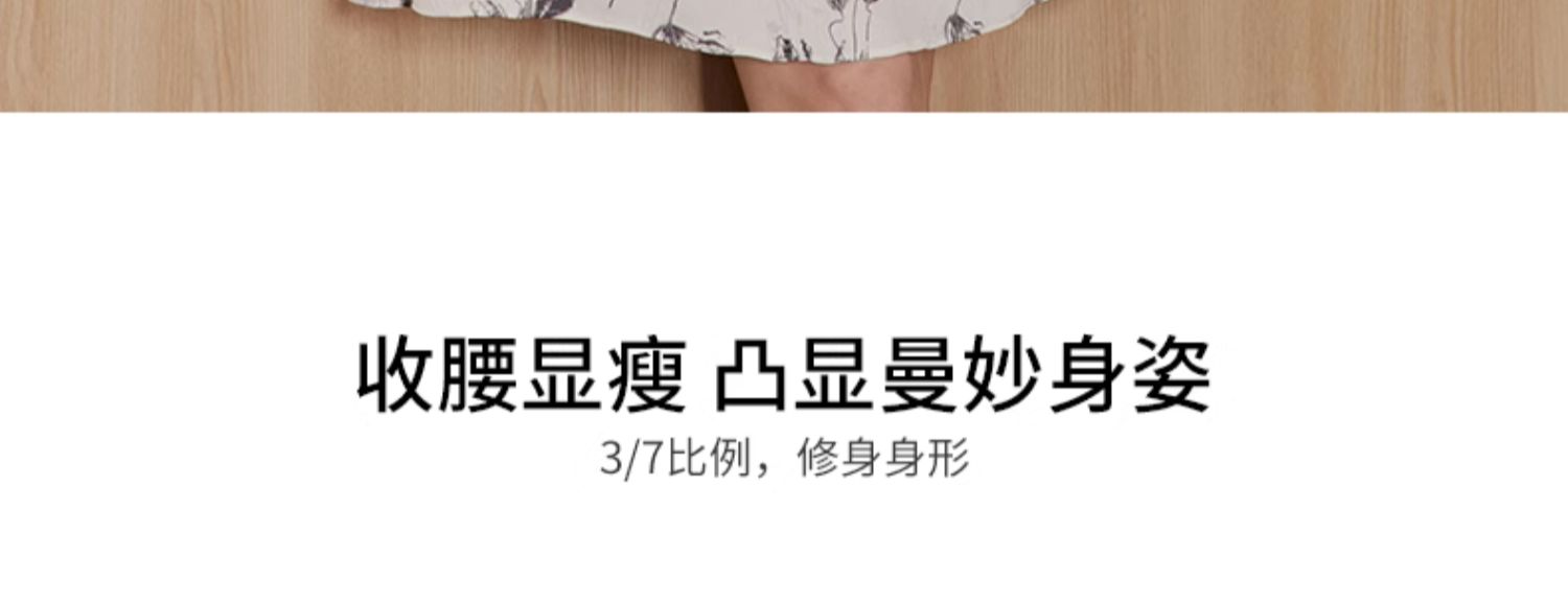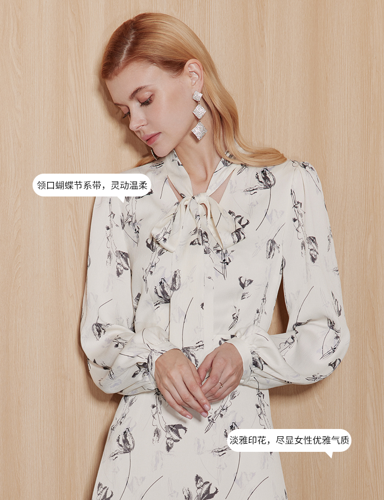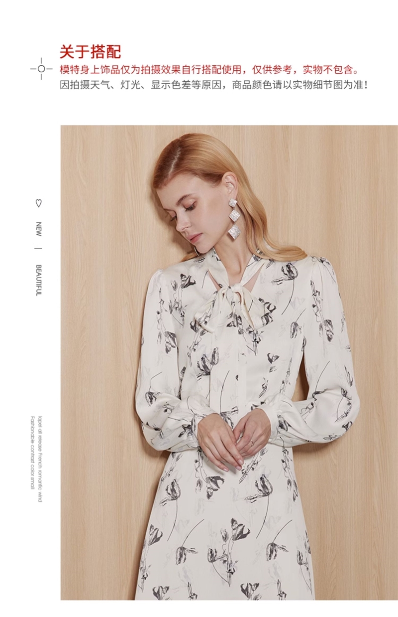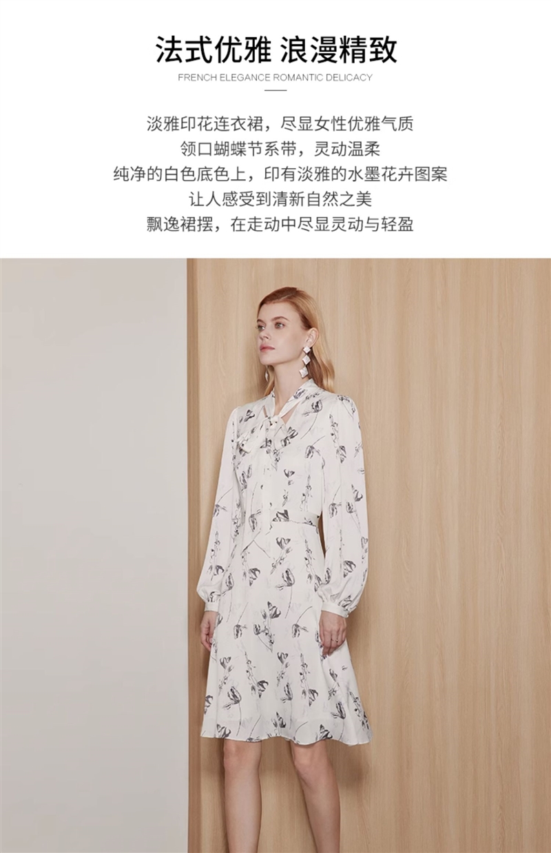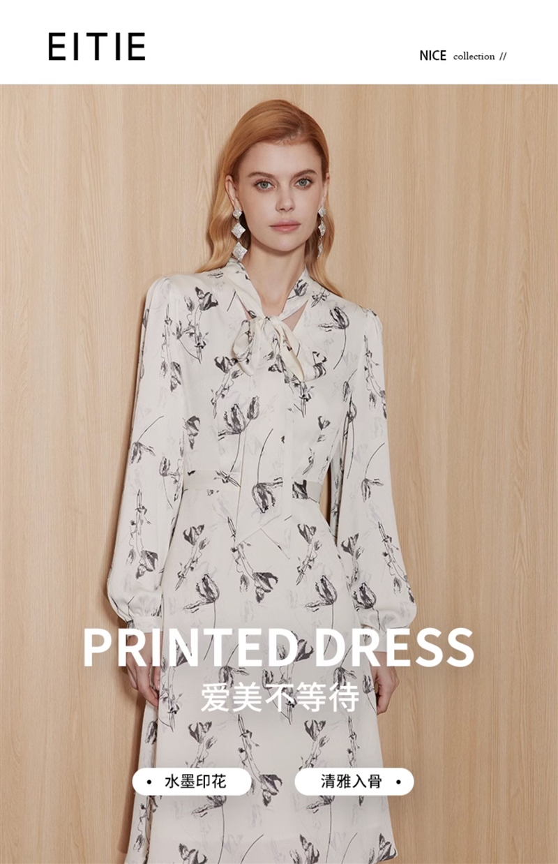 EITIE爱特爱中式水墨印花收腰飘带精致高级优雅连衣裙秋季新款C072