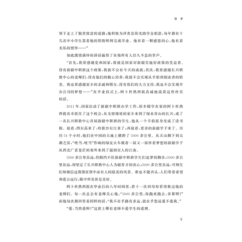他们适应了一切之后在各个方面都收获满满:成绩进步,比赛获奖;他们学有所成后成为了建设大美新疆的栋梁:开办公司,发挥技术专长。在故事中,顾海琳和学生们是师生,更胜似亲友,老师因为无悔的付出而彰显了大爱,学生因为懂得感恩而奋勇前行。顾海林就犹如一道光,照亮了新疆学生前进的路。五千公里很远,那是路程的长度;五千公里不远,因为在师生的心里,爱从来就没有距离!