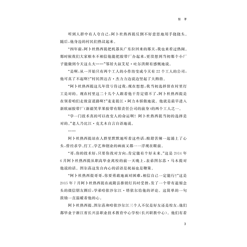 该作品讲述了阿卜杜热西提、图尔荪和哈依沙尔江三个毕业于长兴职教中心新疆中职班的学生及他们和顾海林老师之间的一些故事。三个学生出疆求学时怀揣着希望和梦想:学得一技之长,振兴家乡;他们在初学时心存困惑和迷惘:如何学得好?是否要留下来?