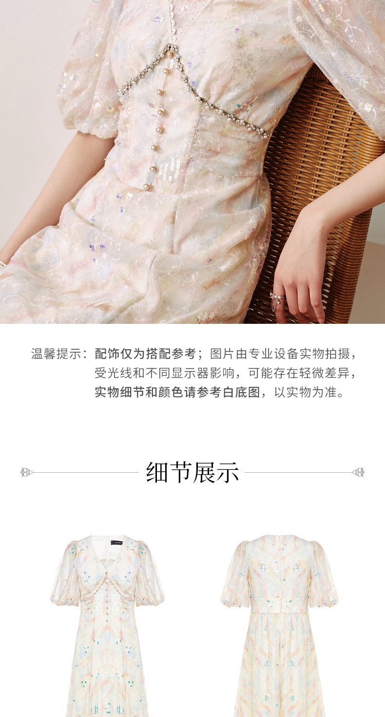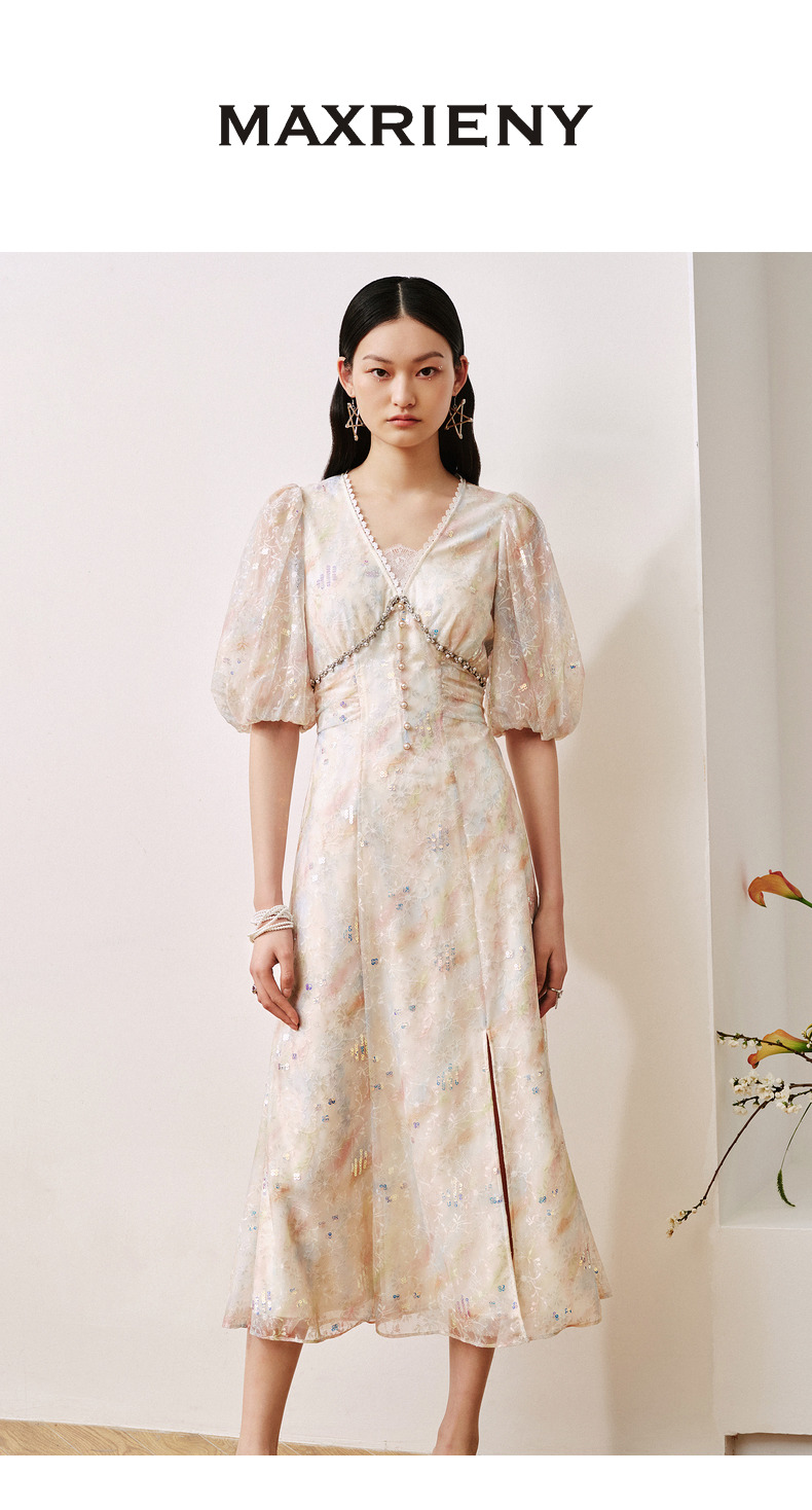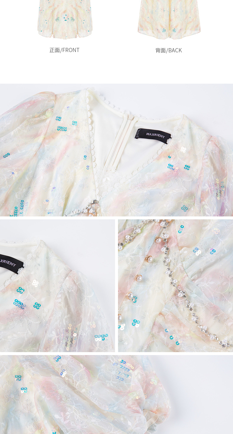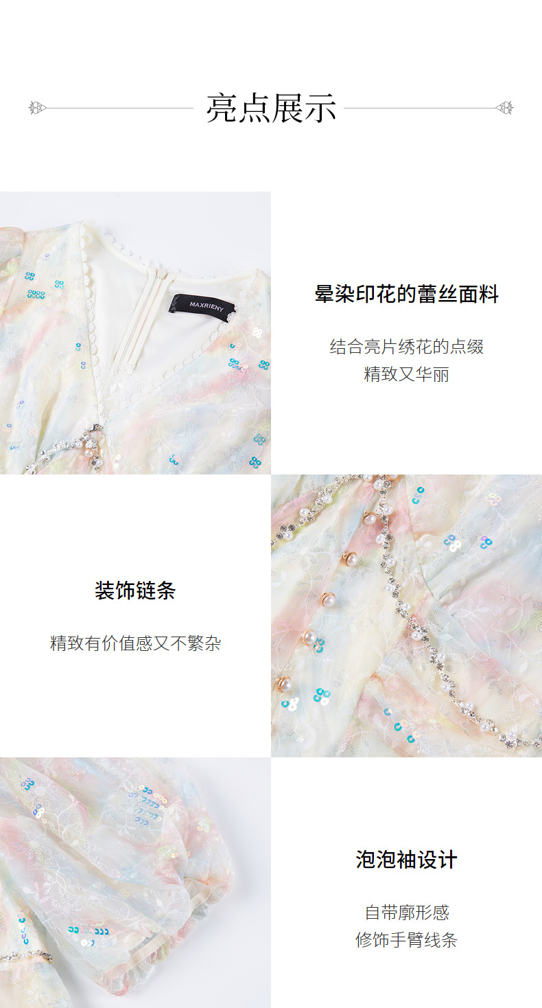 MAXRIENY欧式复古宫廷风蕾丝亮片绣花连衣裙v领(货号:MC88DR538)
