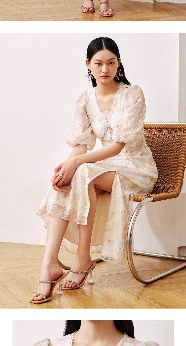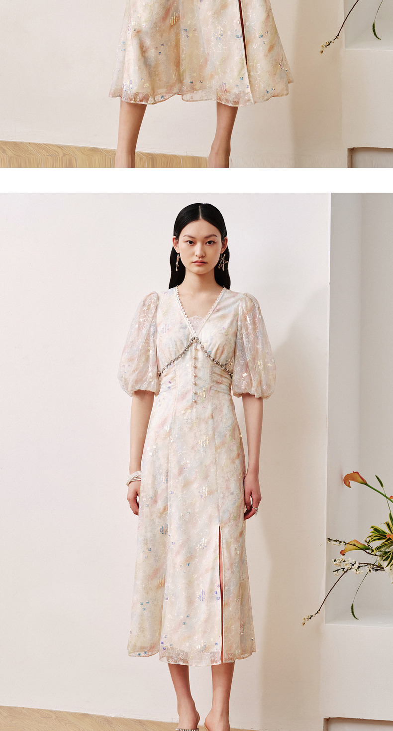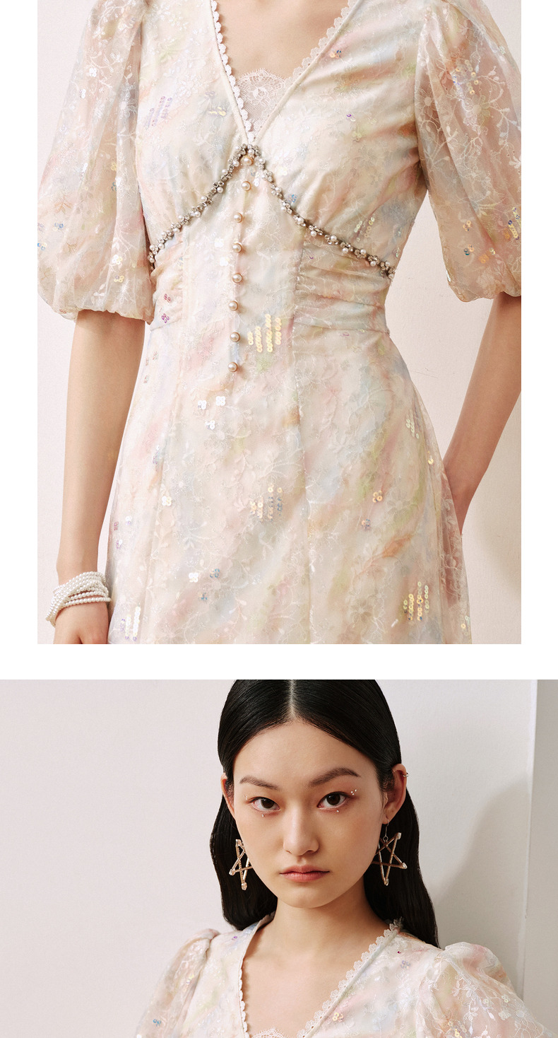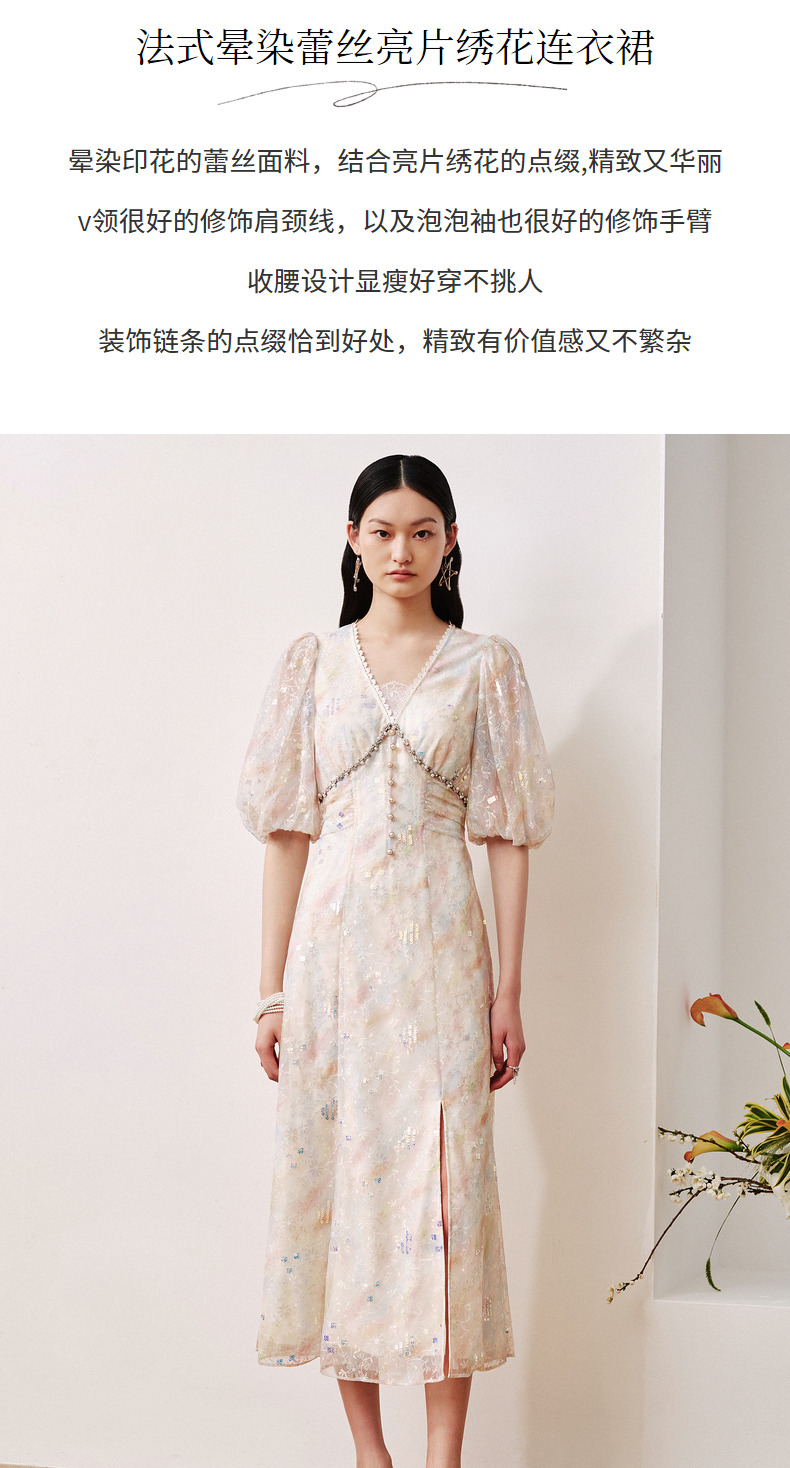 MAXRIENY欧式复古宫廷风蕾丝亮片绣花连衣裙v领(货号:MC88DR538)