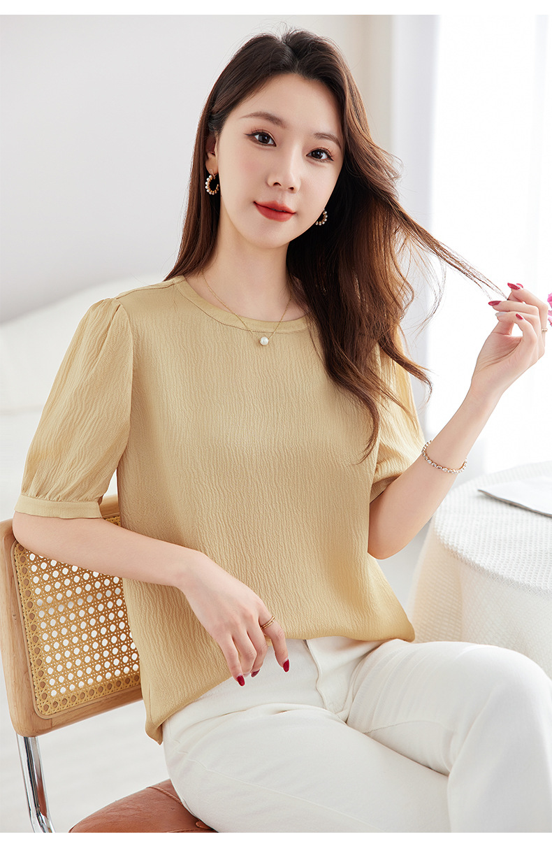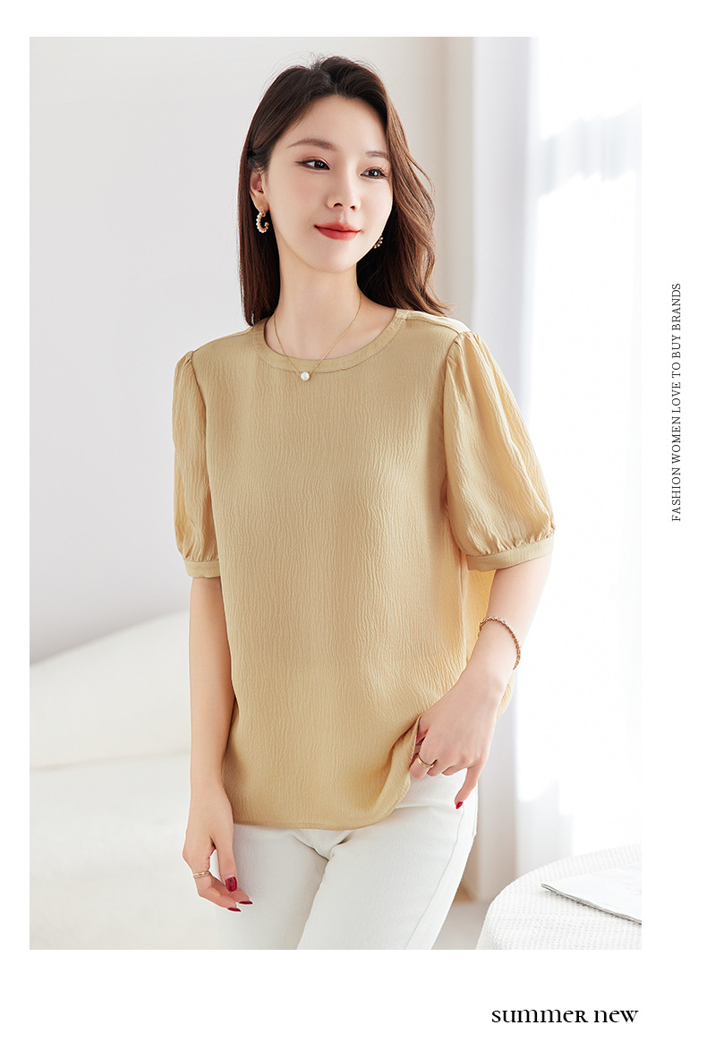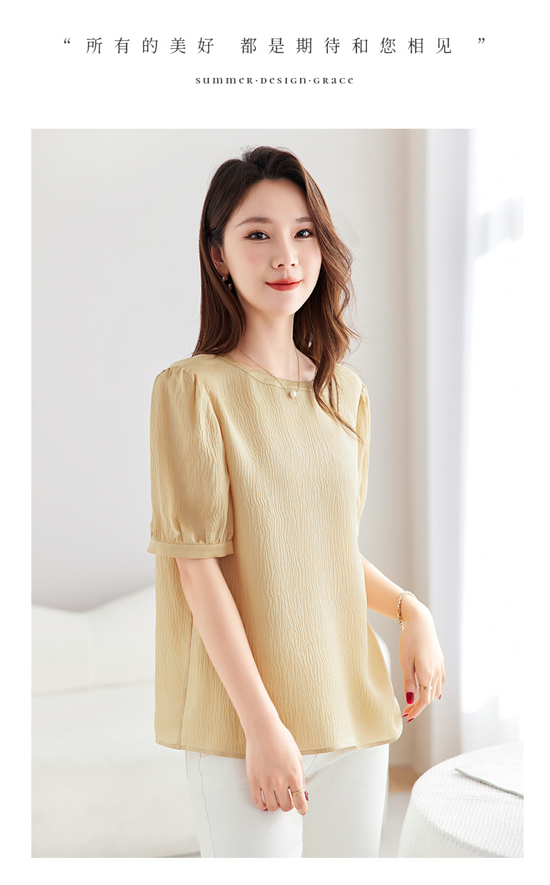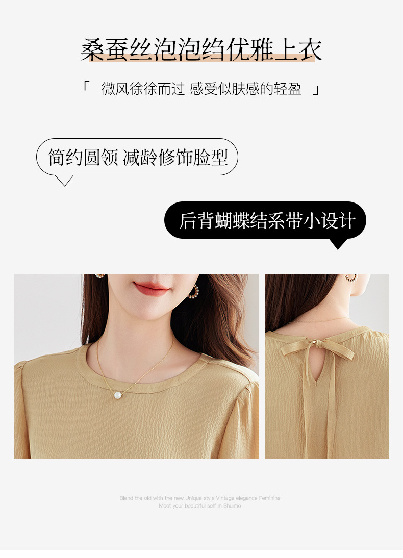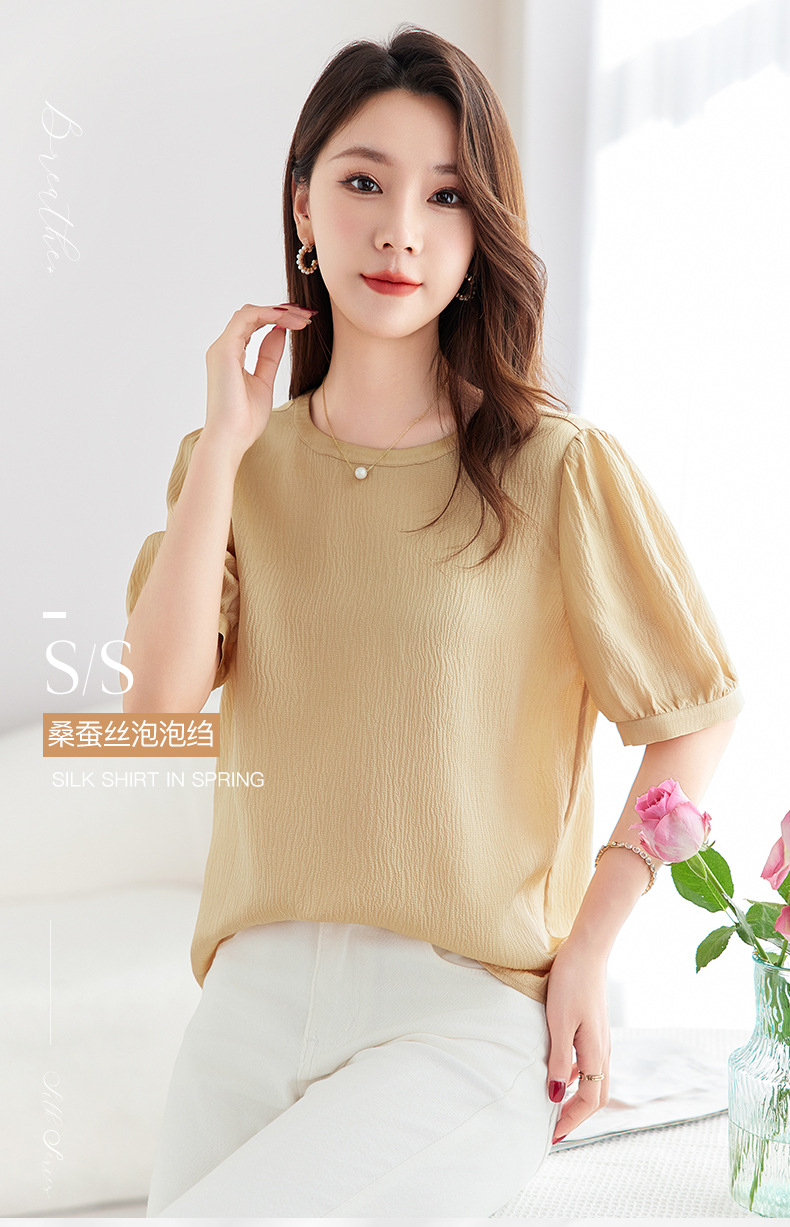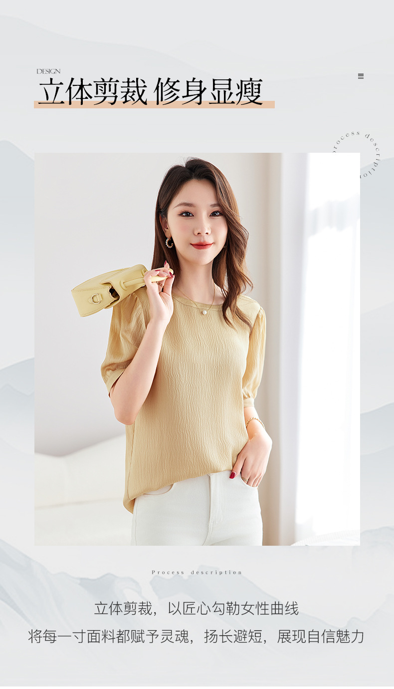 QS-12599320【真丝冠乐绉】桑蚕丝肌理感打底衫气质圆领上衣提花T恤女9320