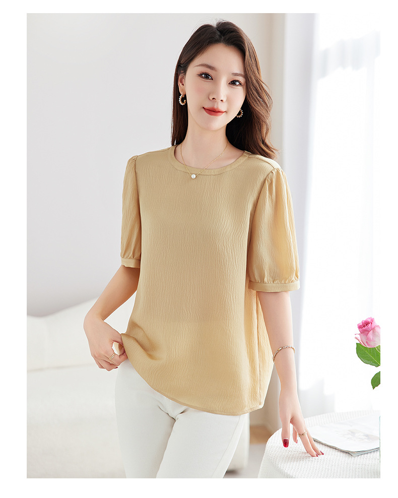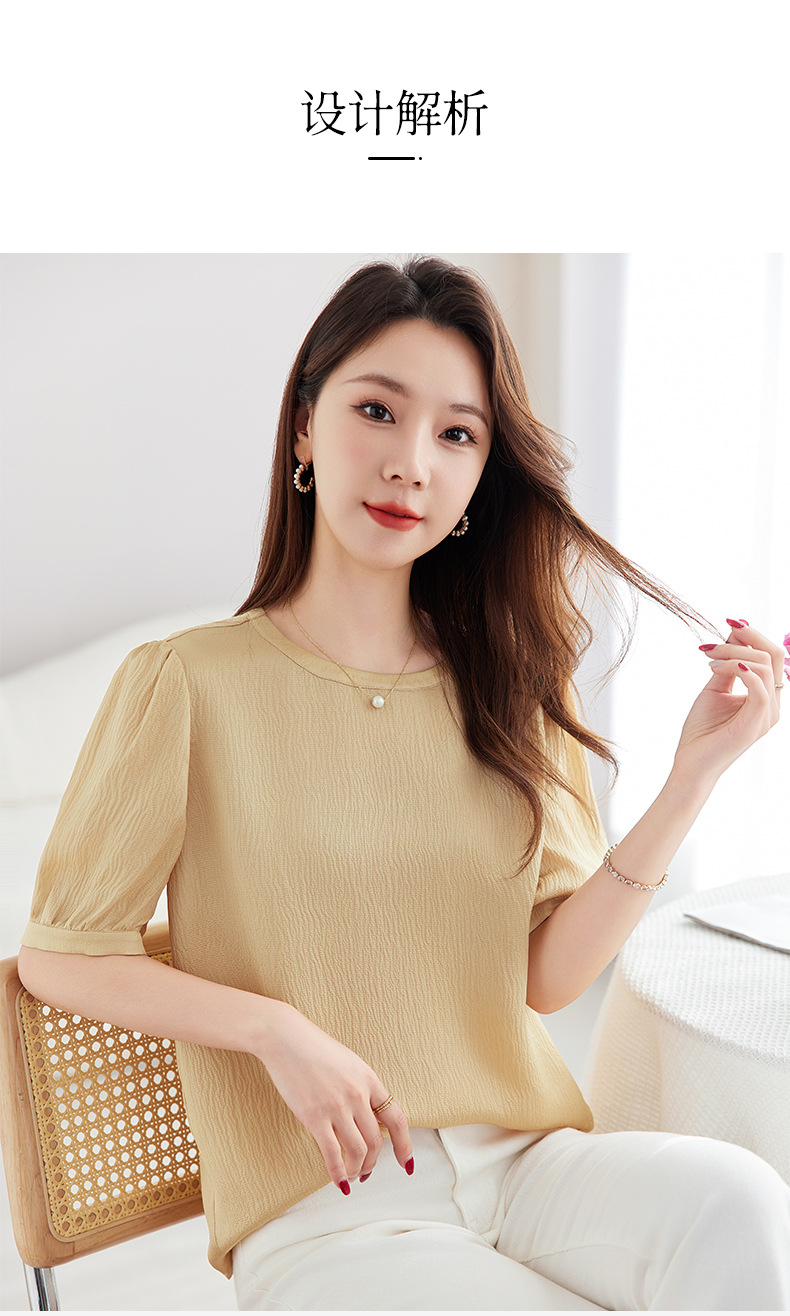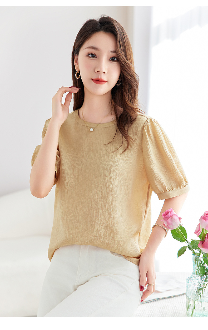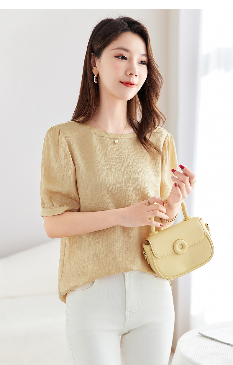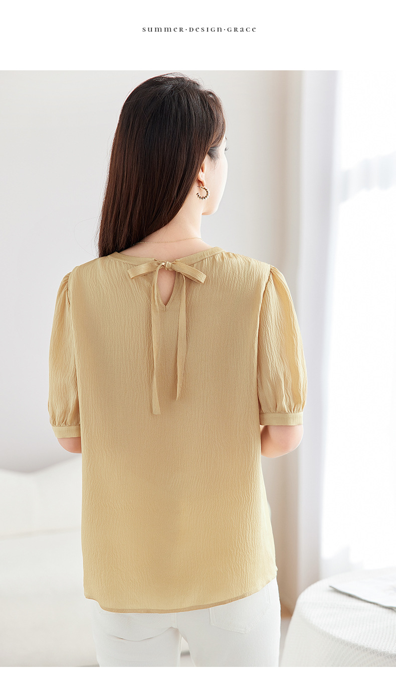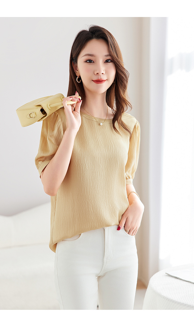 QS-12599320【真丝冠乐绉】桑蚕丝肌理感打底衫气质圆领上衣提花T恤女9320