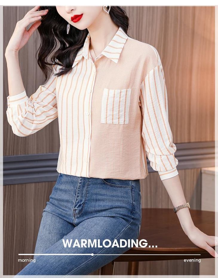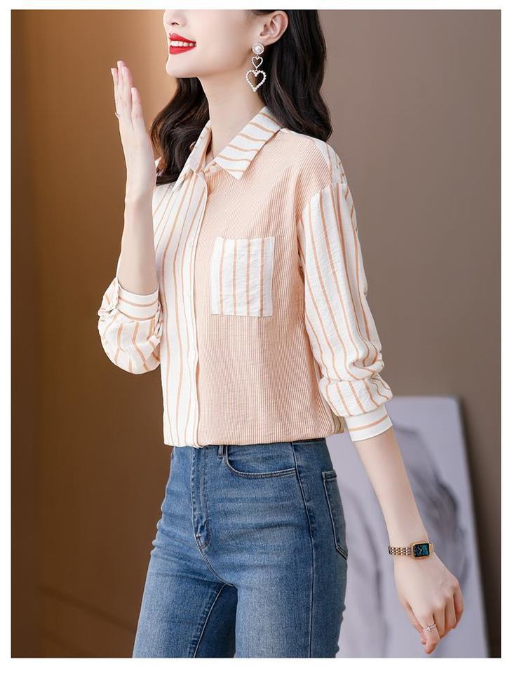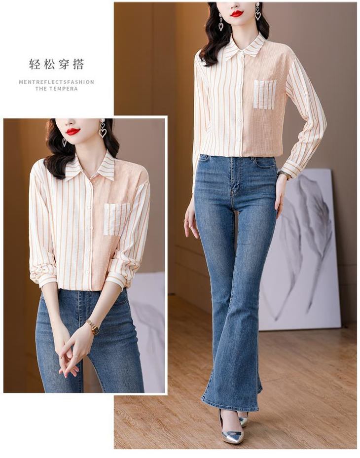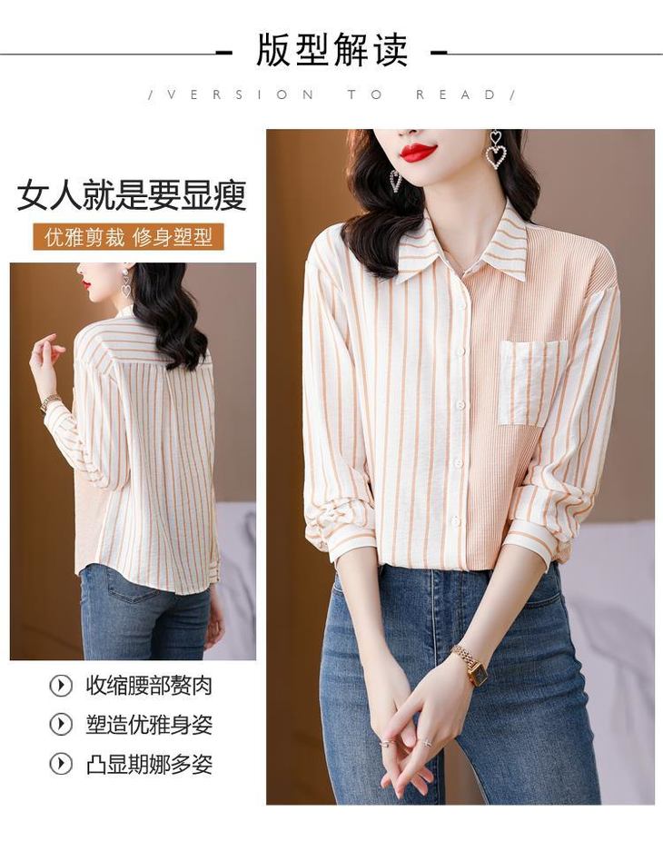 港风撞色条纹衬衫女独特别致春秋装新款气质长袖设计感衬衣KQLB41N3935