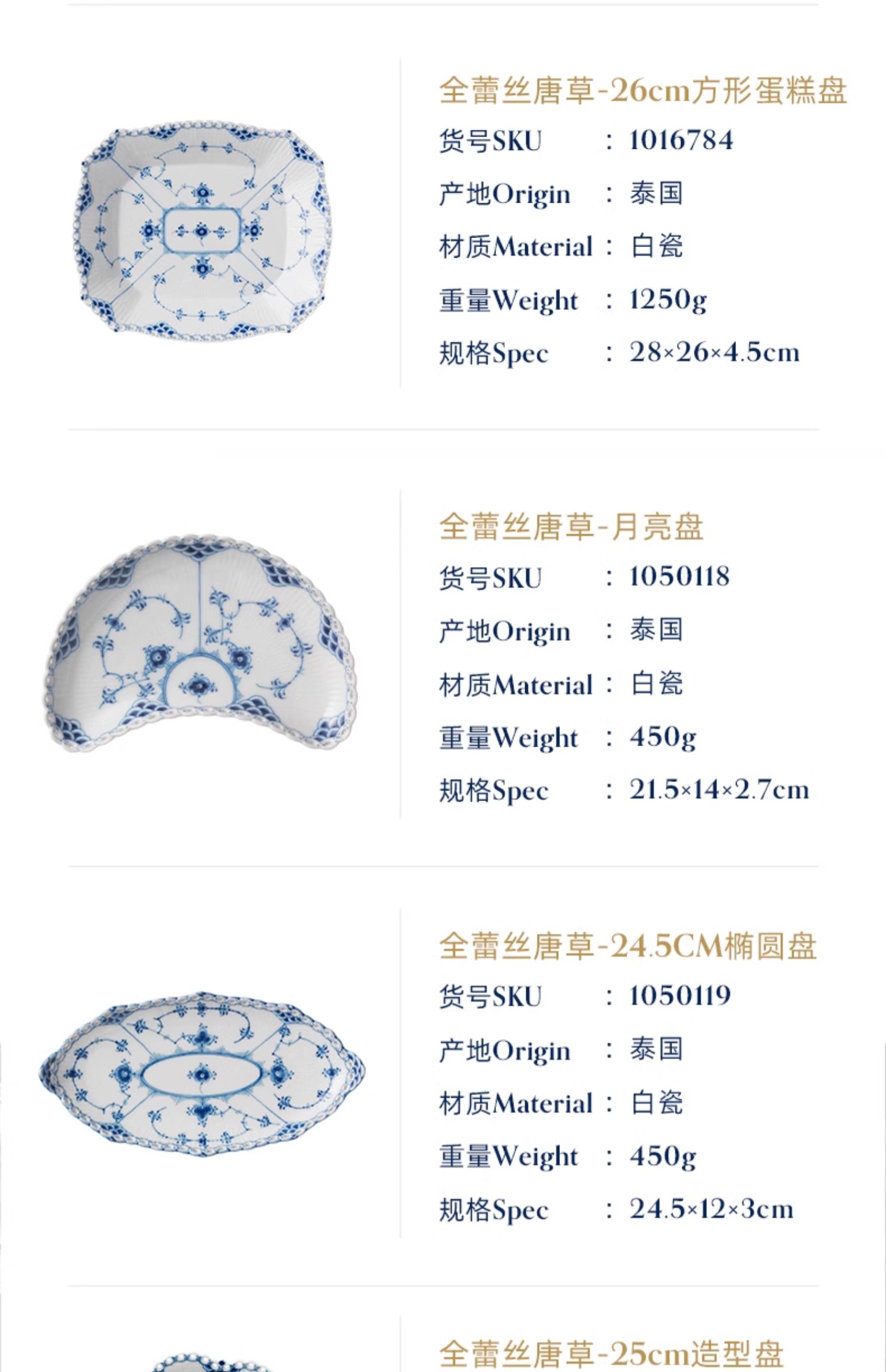 【ROYAL COPENHAGEN】皇家哥本哈根全蕾丝唐草盘子ins风家用高级感餐盘