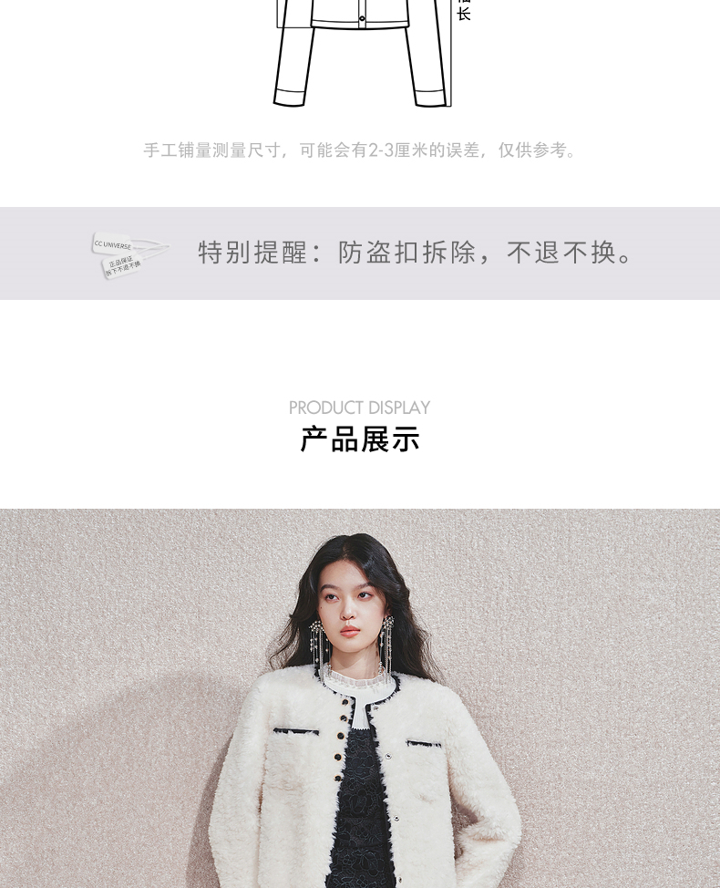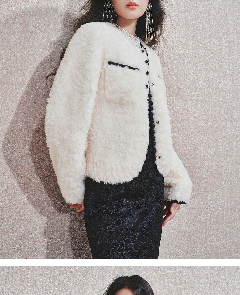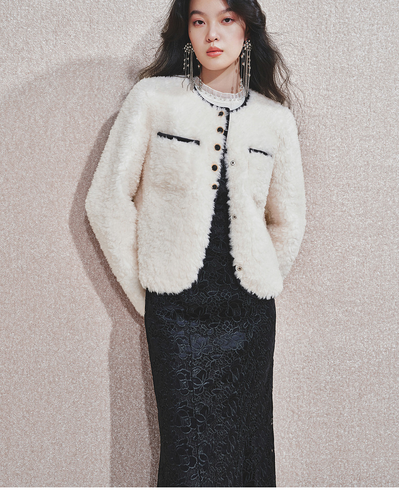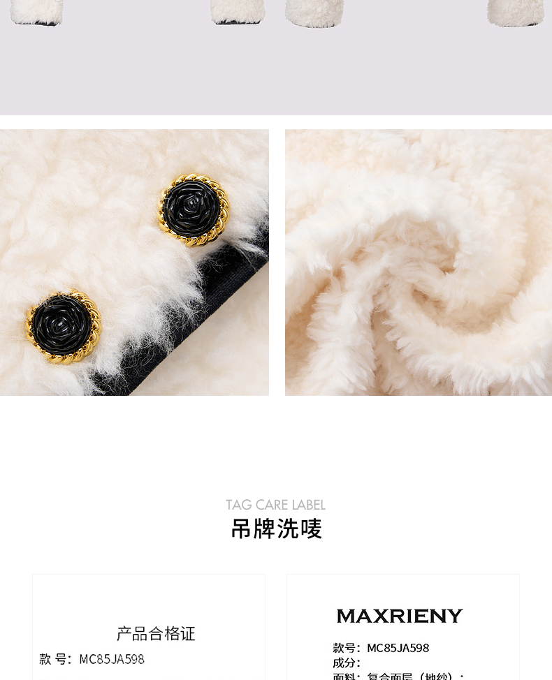 【宫廷巴洛克-商场同款】MAXRIENY羊羔绒肌理小香外套女24冬新款(货号:MC85JA598)