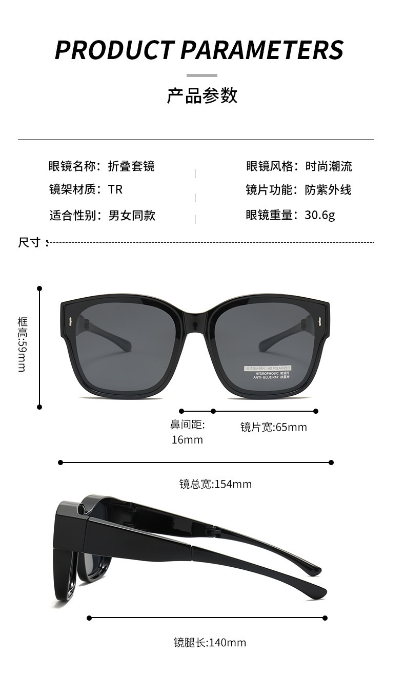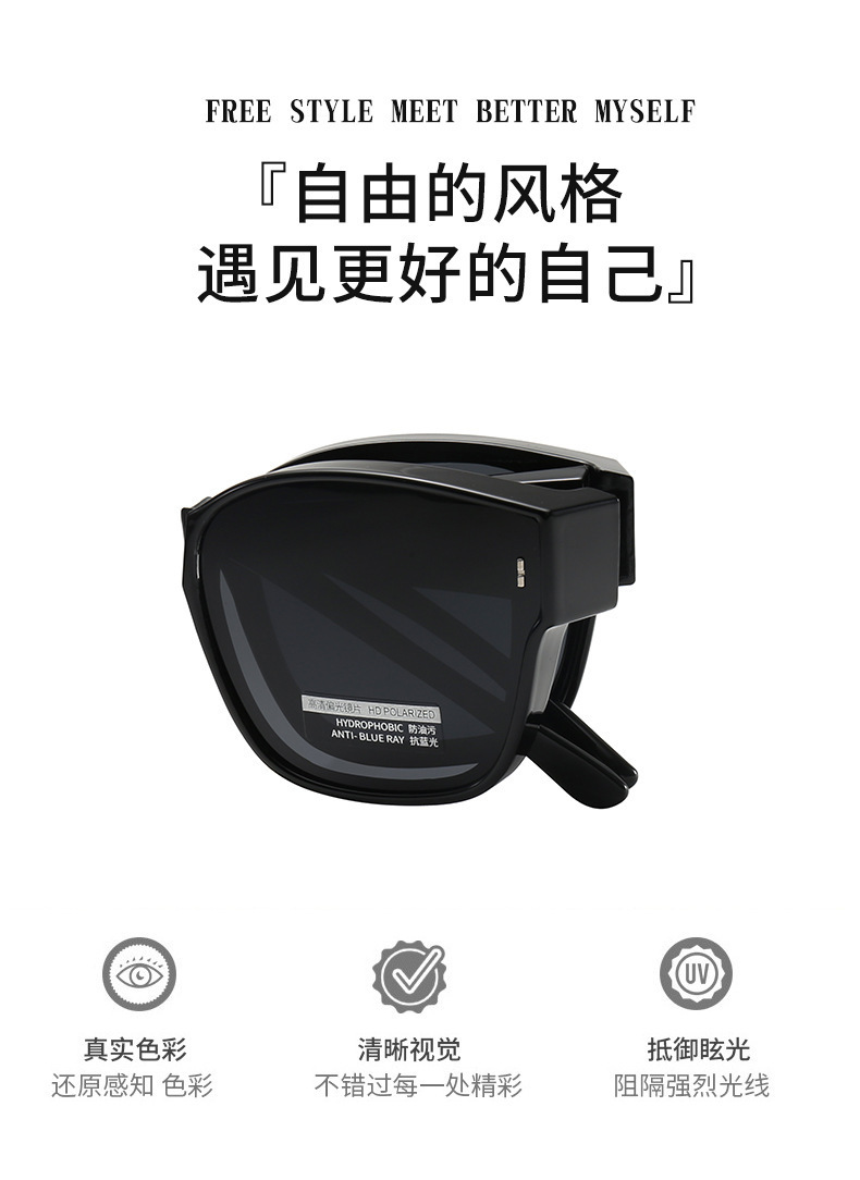【任选两副】GUMUMA可折叠近视套镜墨镜,升级TAC偏光镜片,高清防眩光护眼,便携折叠款。兼容多种近视眼镜