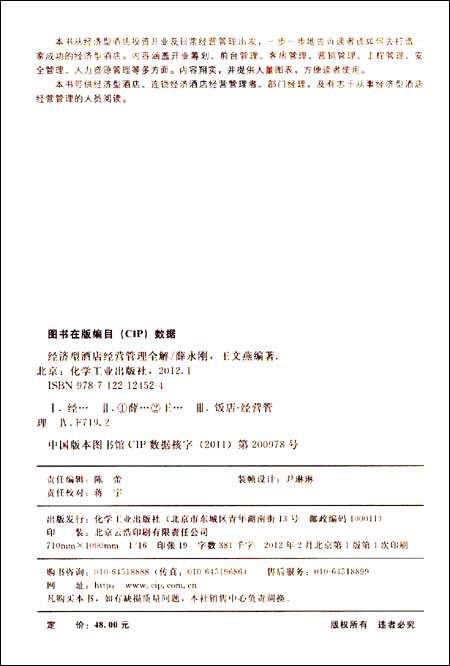 《经济型酒店经营管理全解》由化学工业出版社出版。