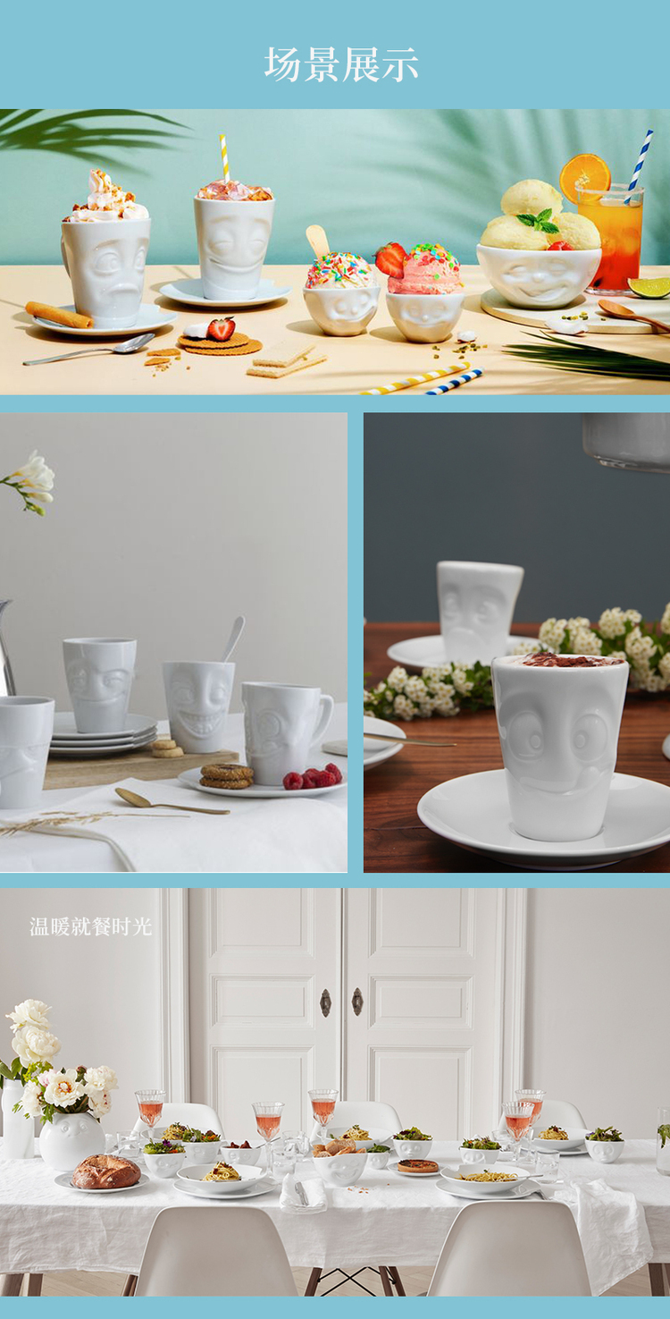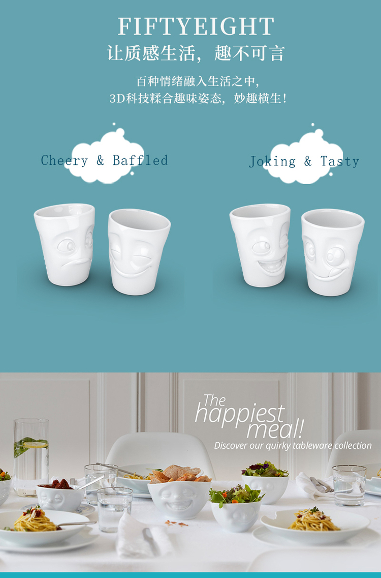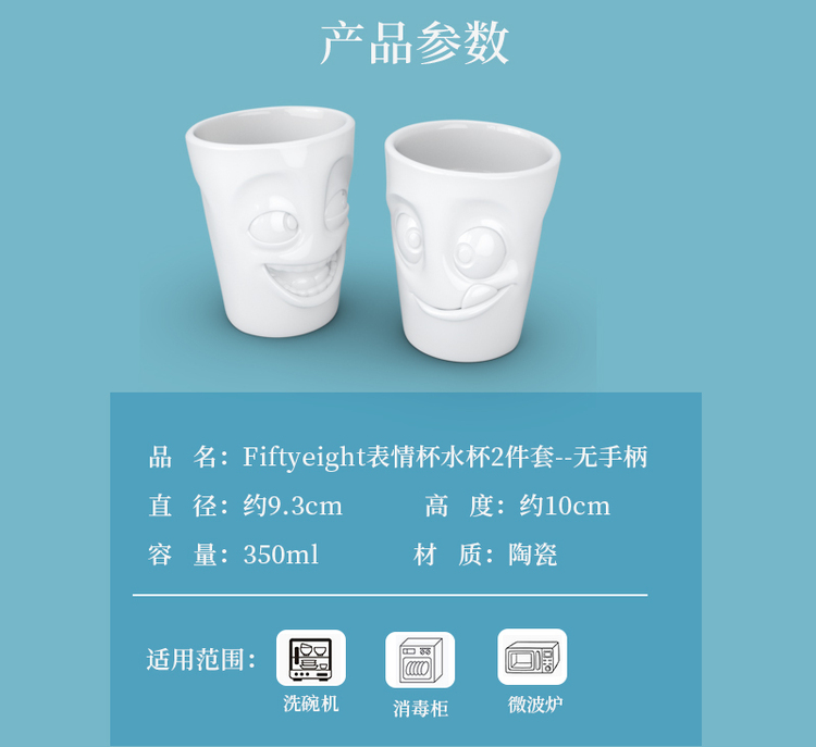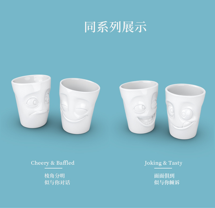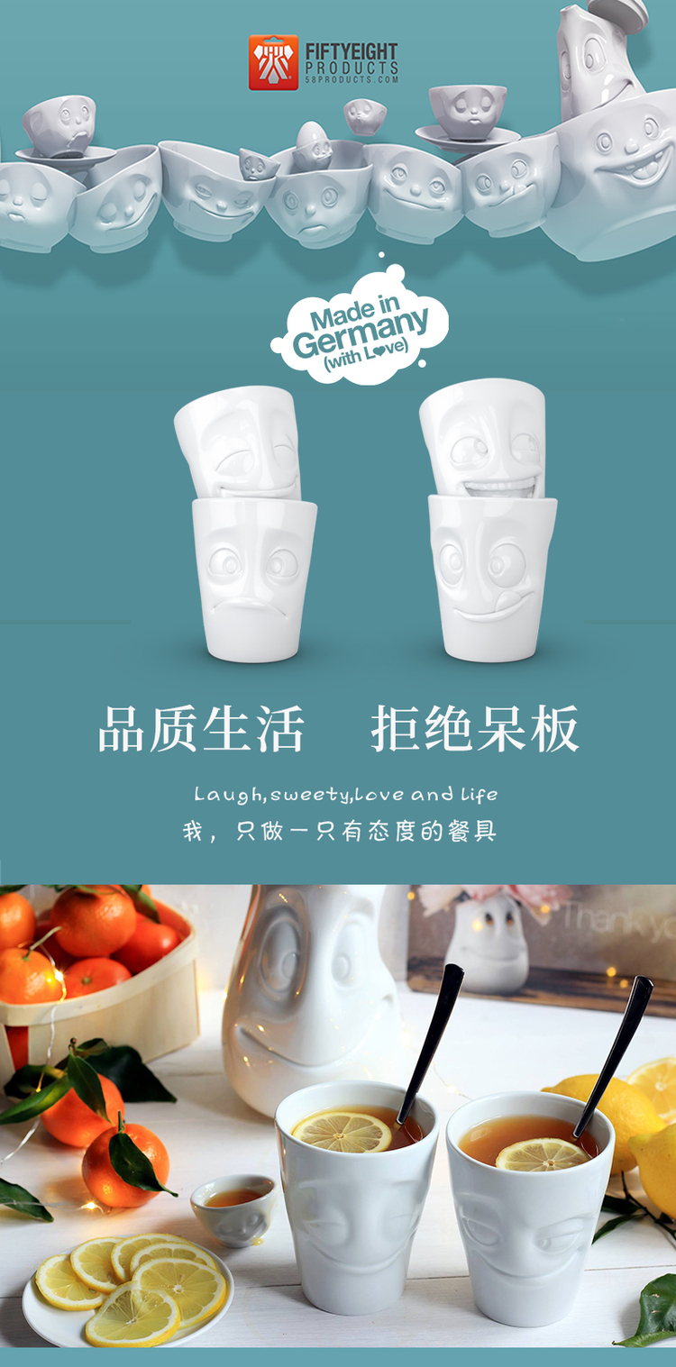【Fiftyeight 】德国原产陶瓷卡通表情杯水杯2件套无手柄 350ml