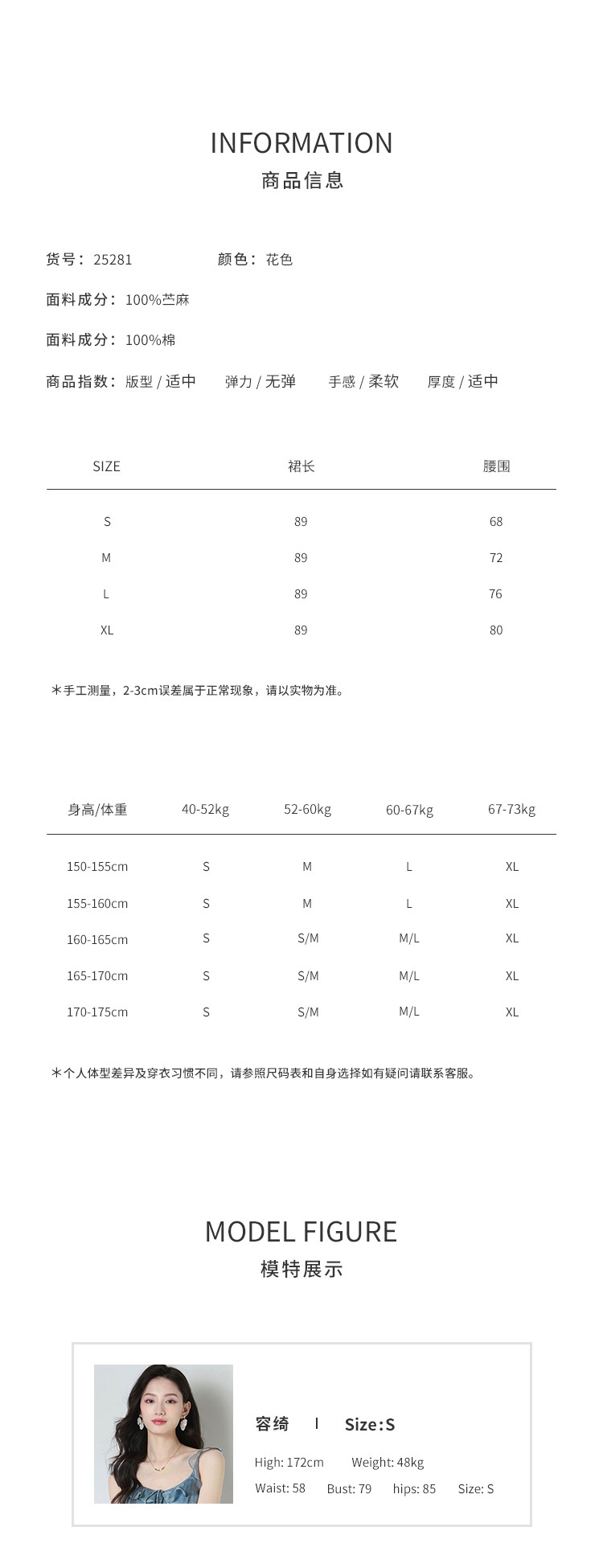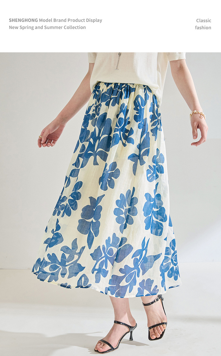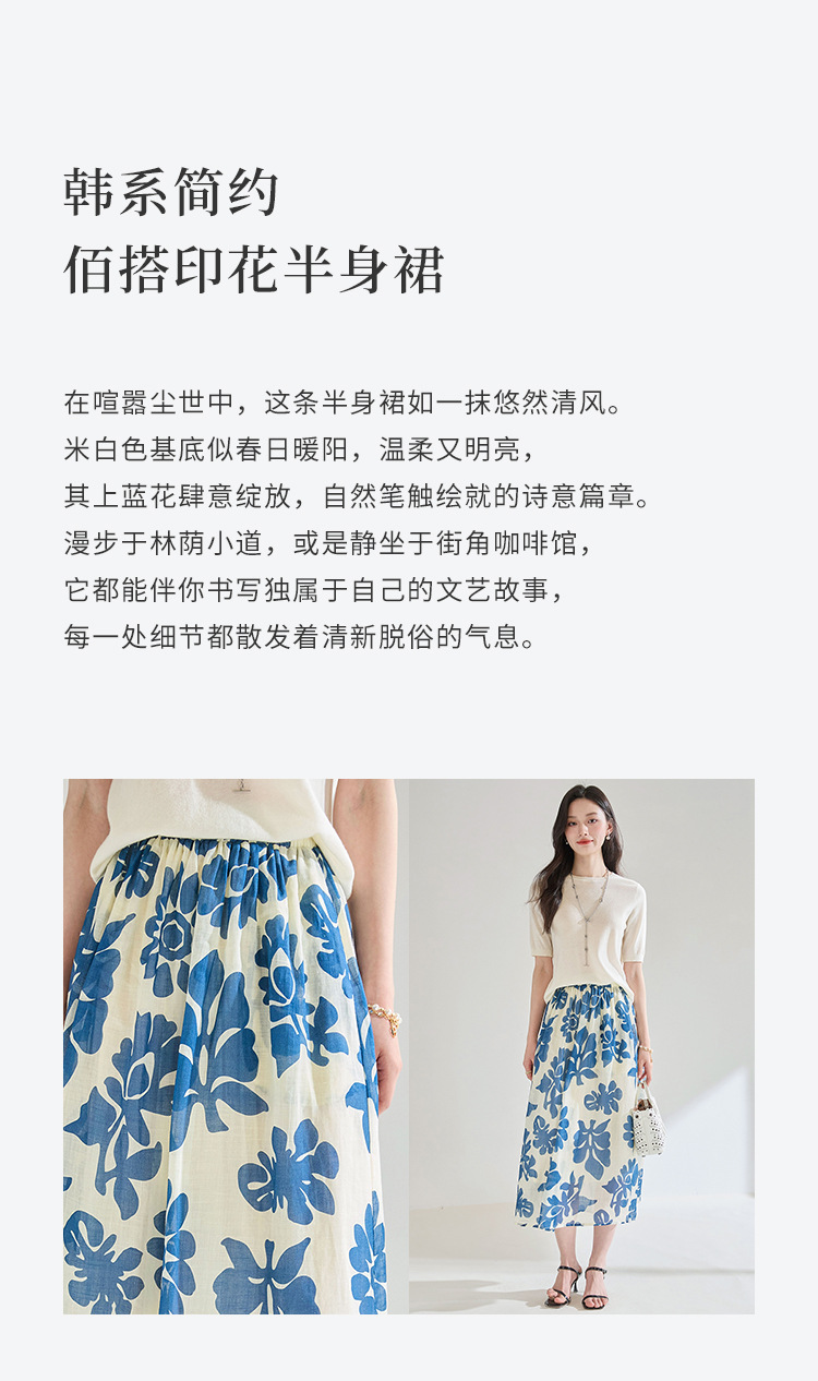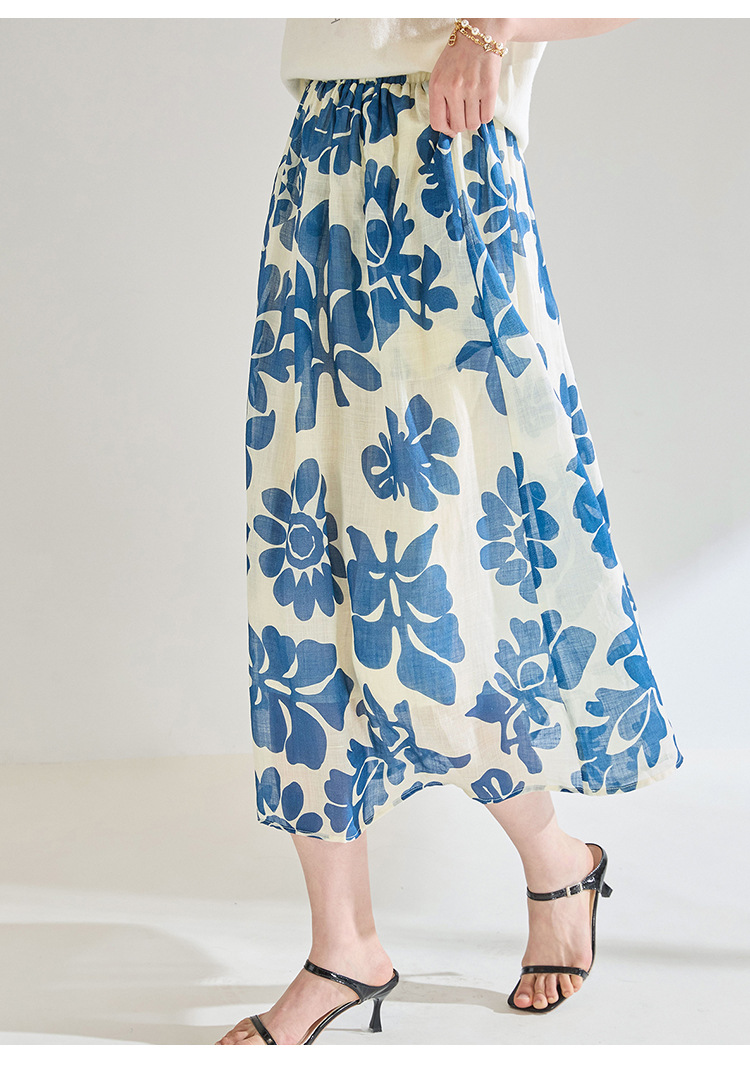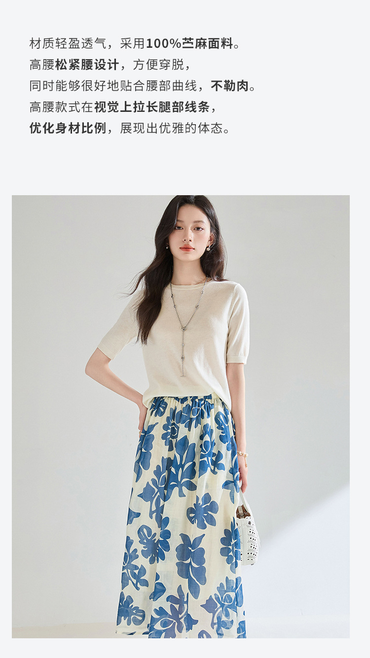 「高货sh」全新升级【铂金会员312/天猫419/差价107】(02802)洛诗琳苎麻印花垂感半身裙2025夏季轻盈空氣感度假风半裙