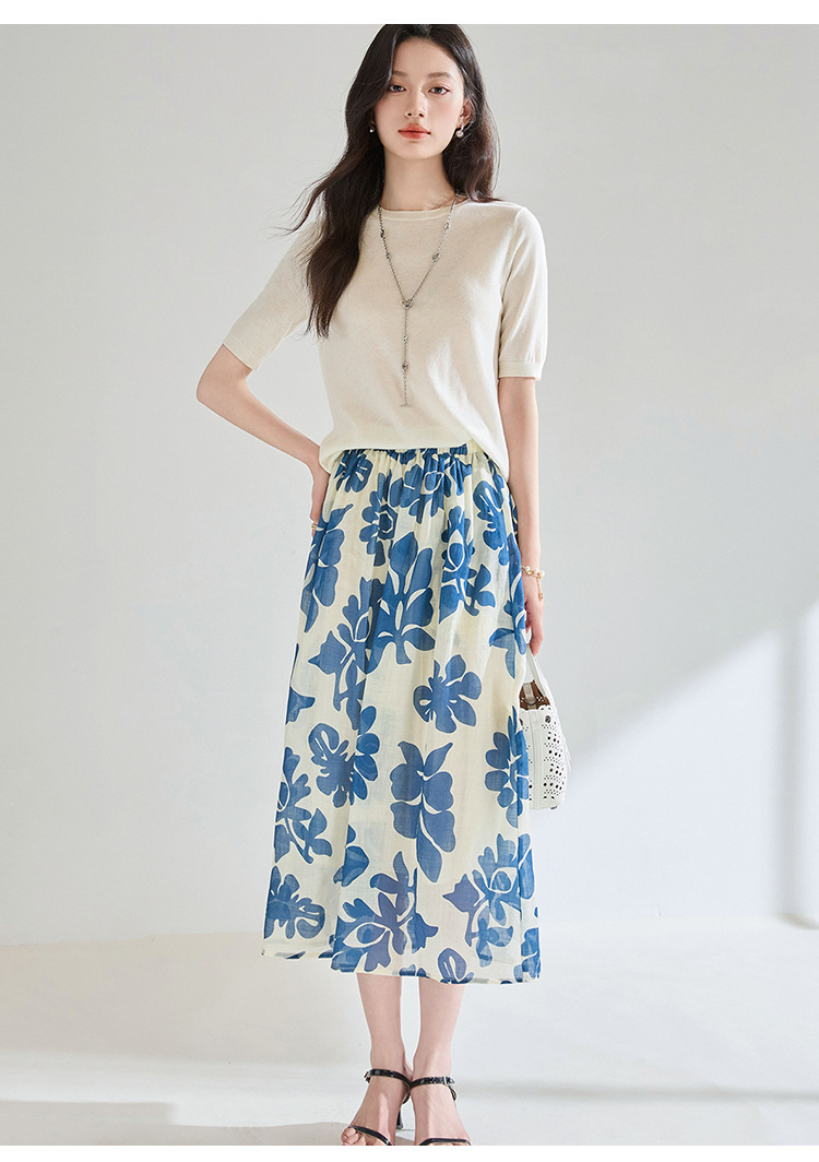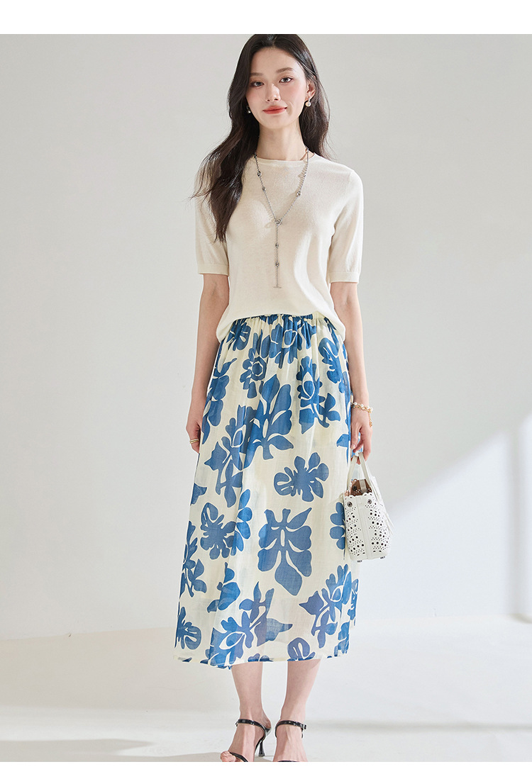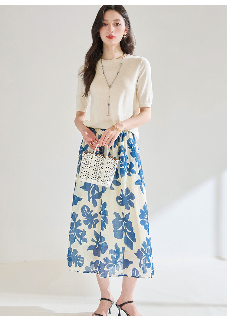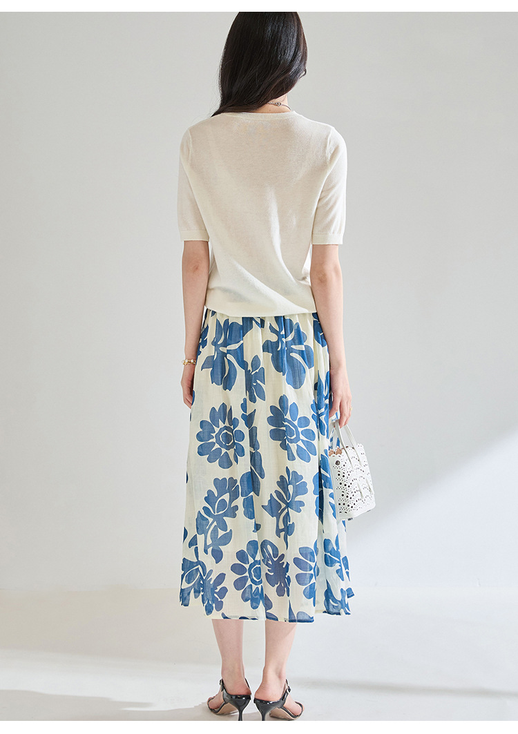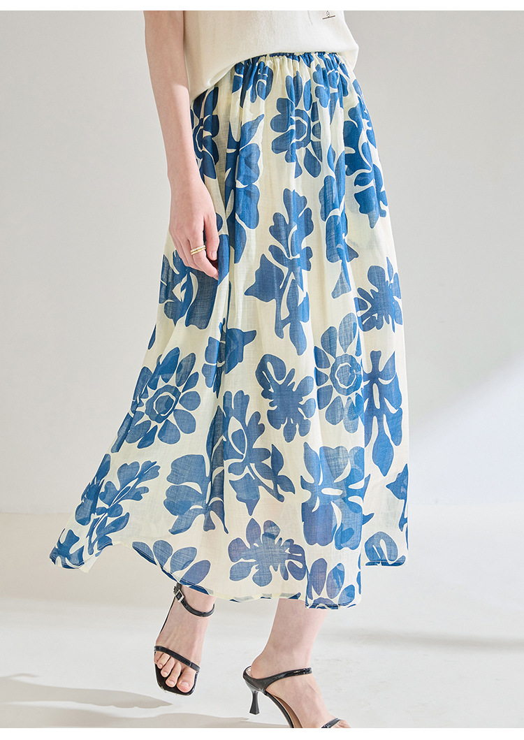 「高货sh」全新升级【铂金会员312/天猫419/差价107】(02802)洛诗琳苎麻印花垂感半身裙2025夏季轻盈空氣感度假风半裙