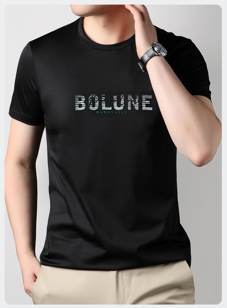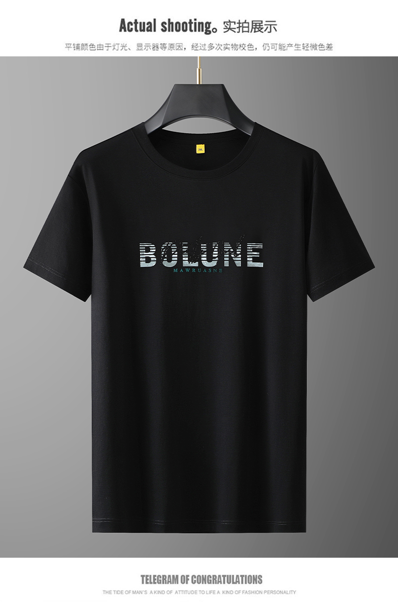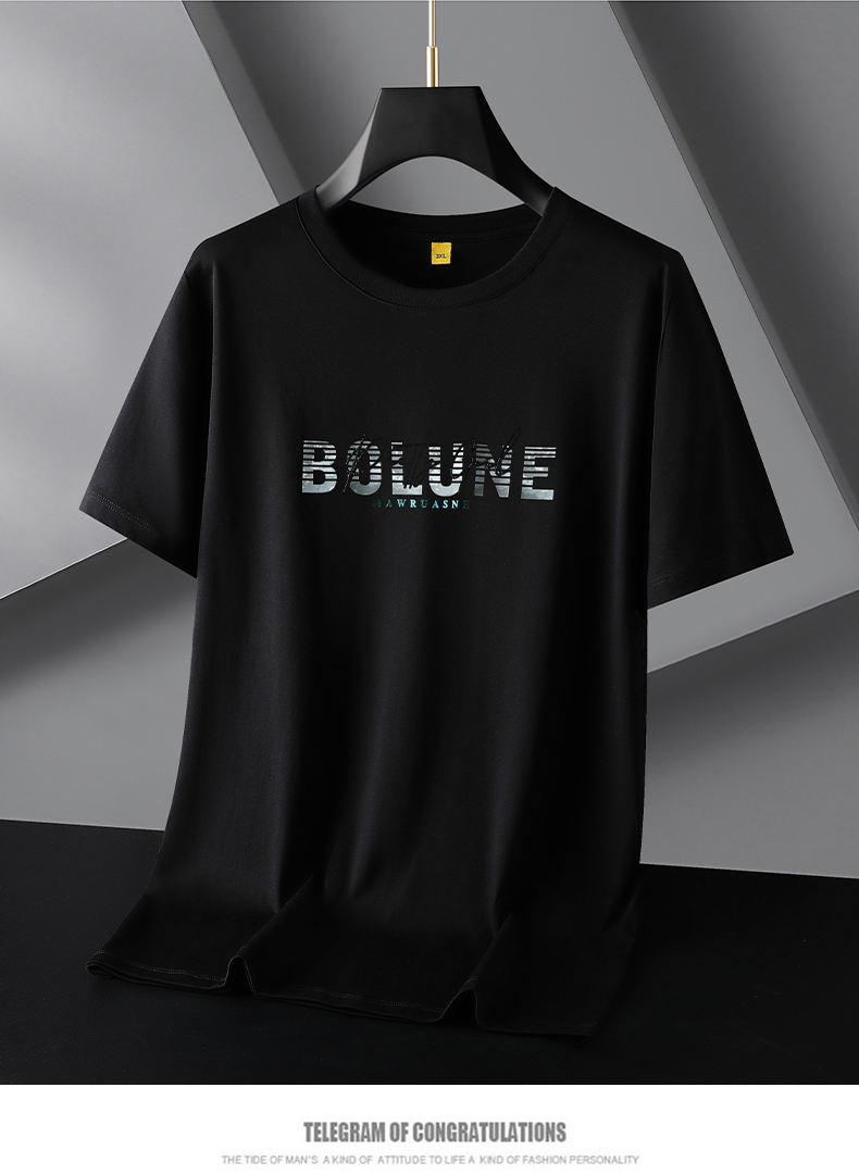 【轻奢液氨棉】【新款DG】大依优型大码短袖T恤圆领胸前印花加肥加大男士大号弹力透气舒适半袖夏装
