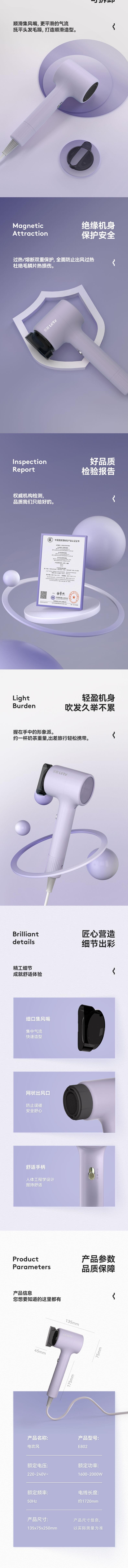乐视 家用恒温不伤发高颜值电吹风1600-2000W E802