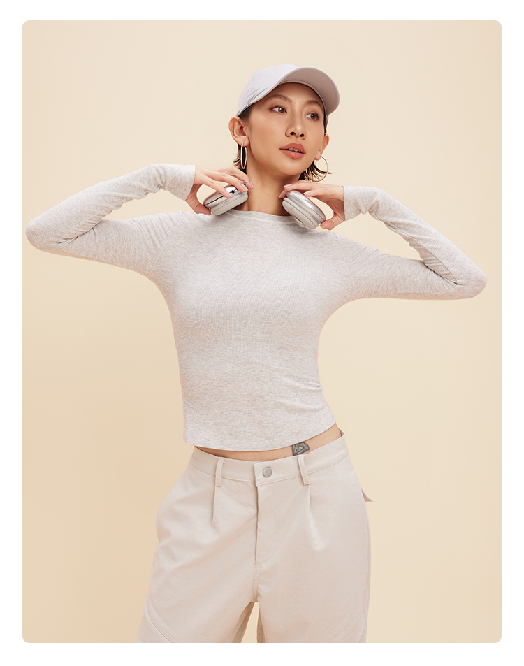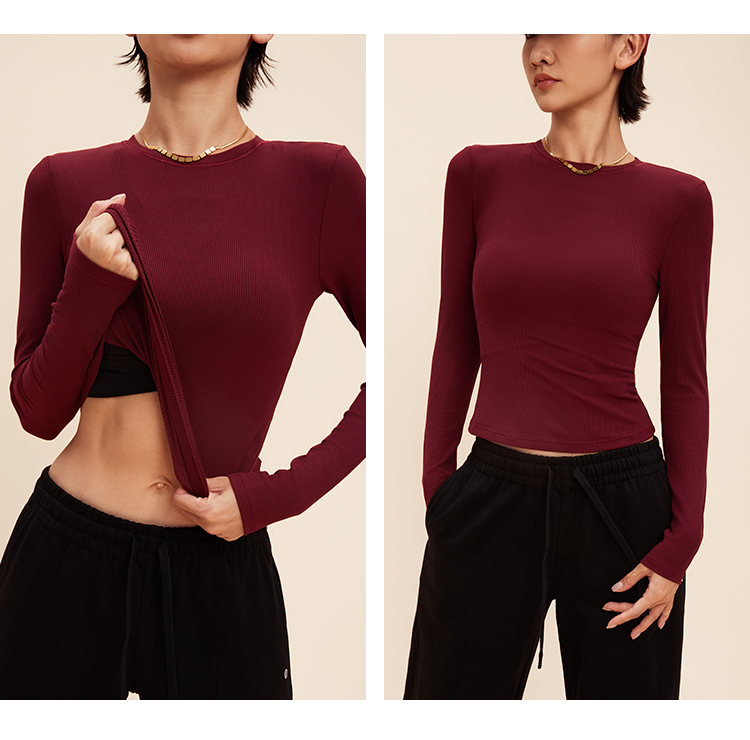 跃牌【周游世界】秋冬新款瑜伽服女运动长袖T恤修身显瘦上衣TP0945
