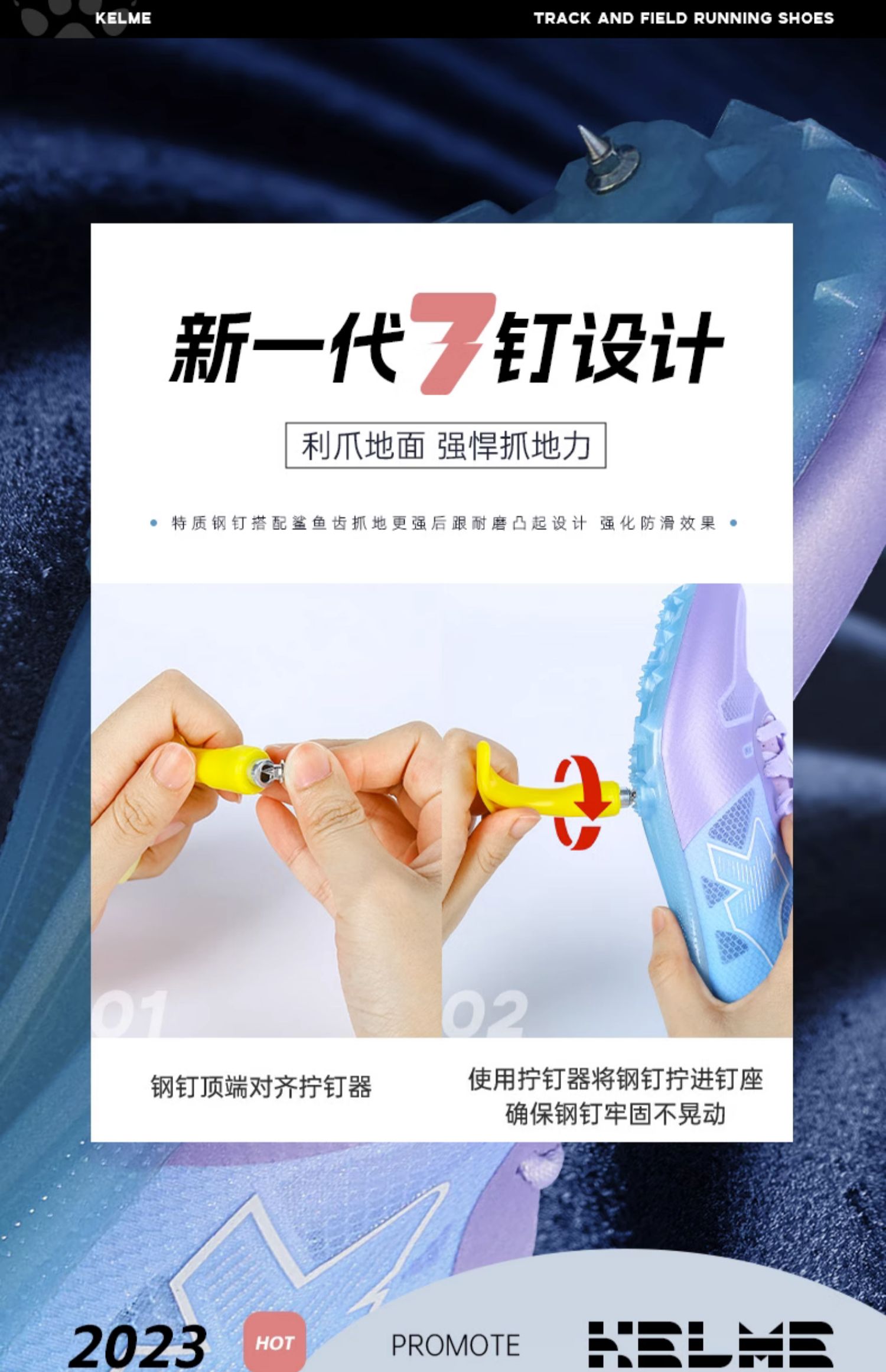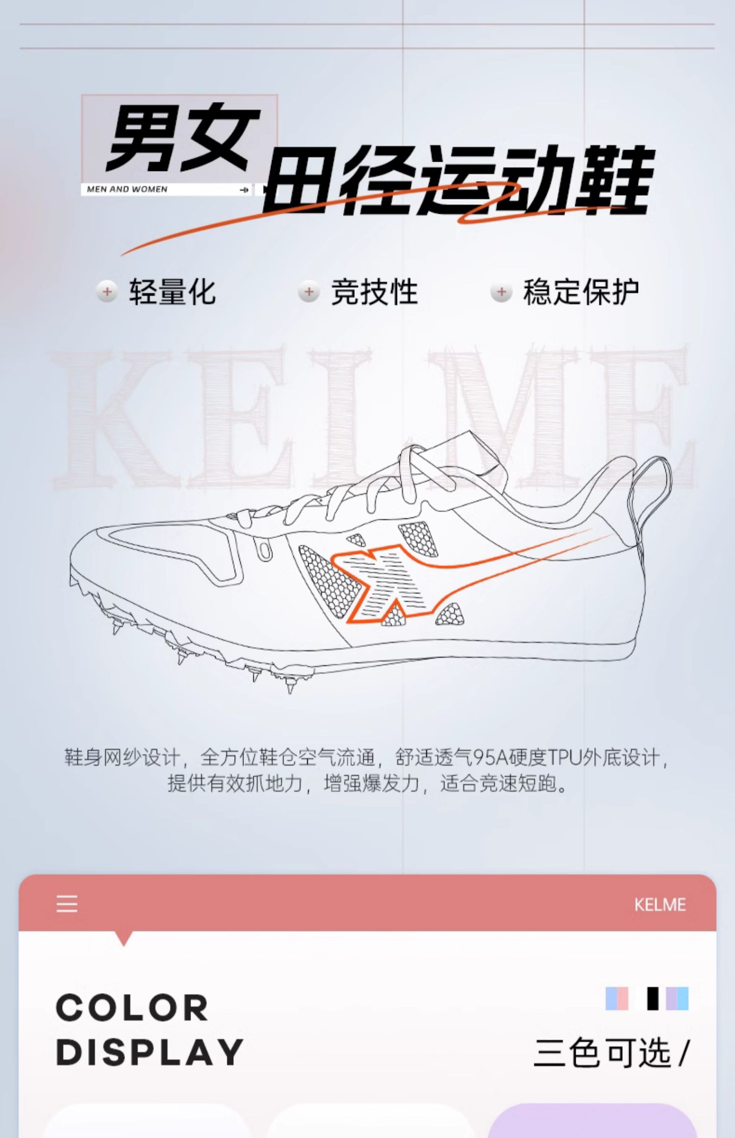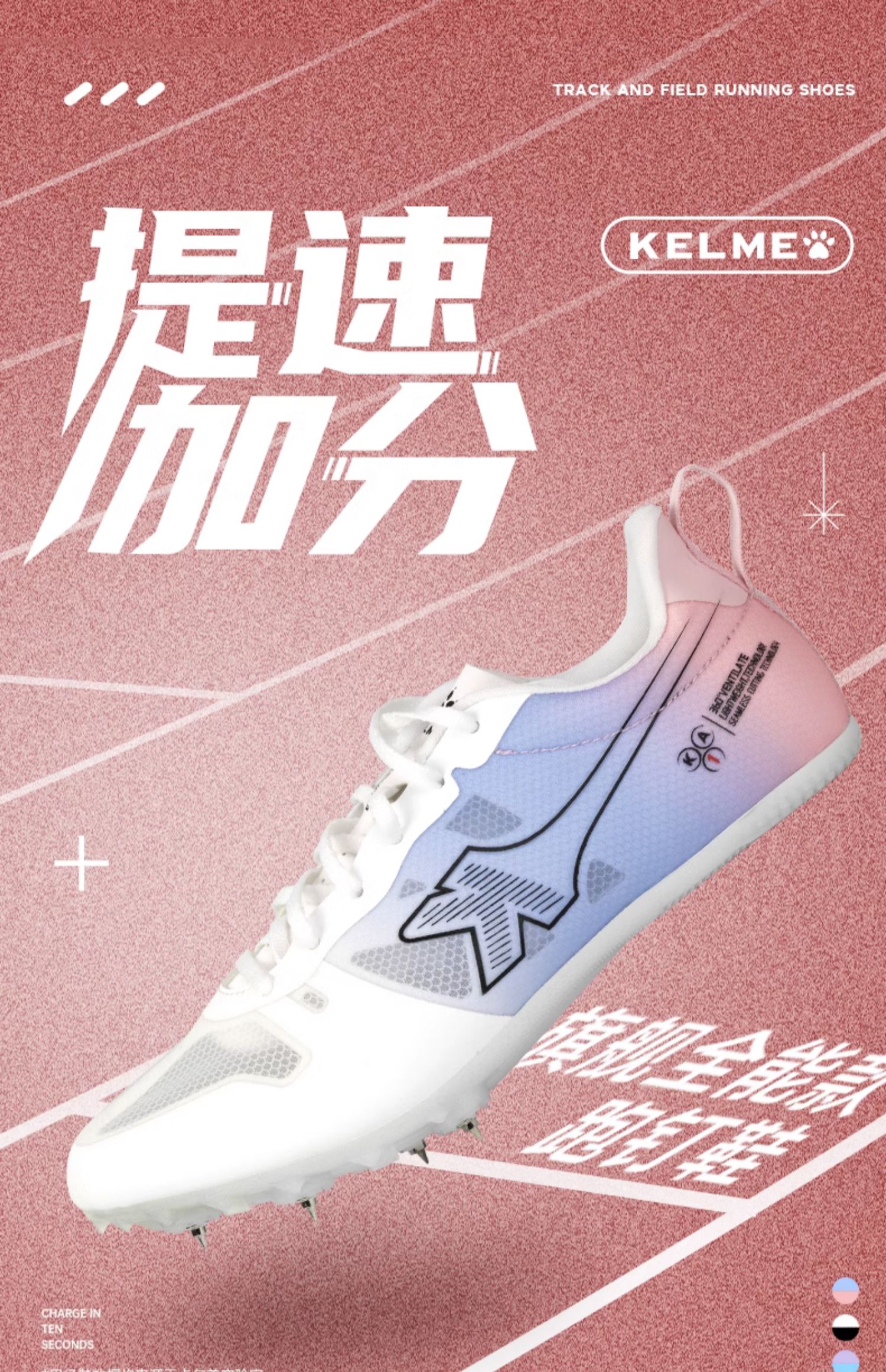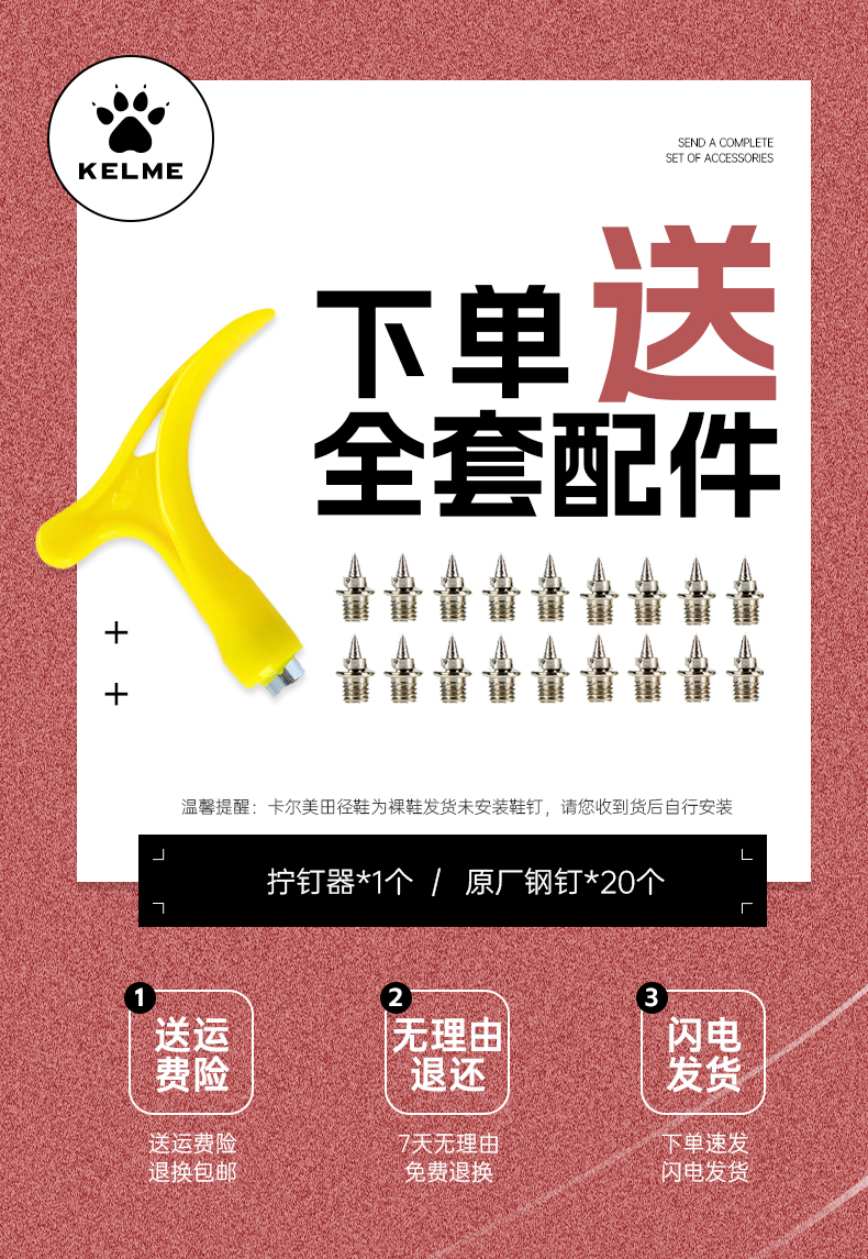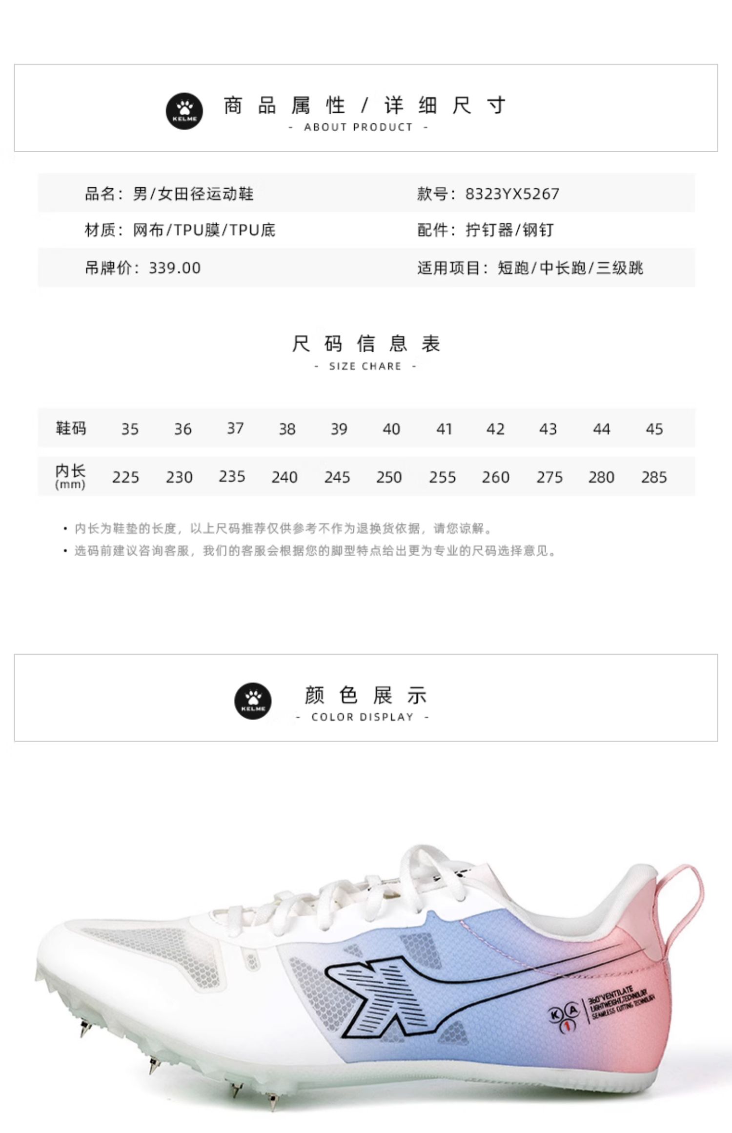 KELME卡尔美 中短跑步田径鞋男女学生专业中考体考跳远比赛钉子鞋