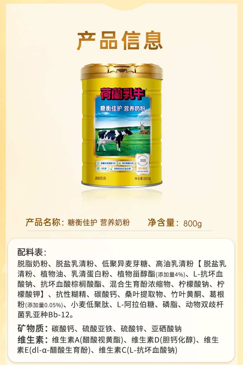 SY23-1版(谱华威)荷兰乳牛糖衡佳护营养奶粉-800g听装