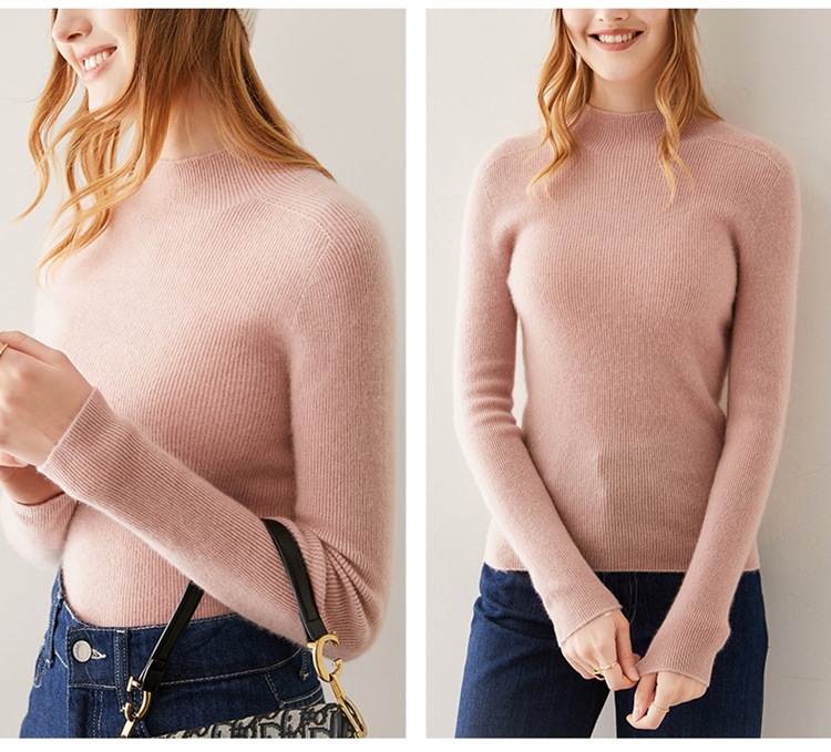 丁摩 羊绒衫女100%纯山羊绒衫女半高领秋冬款一线成衣针织打底毛衣5ZF-805