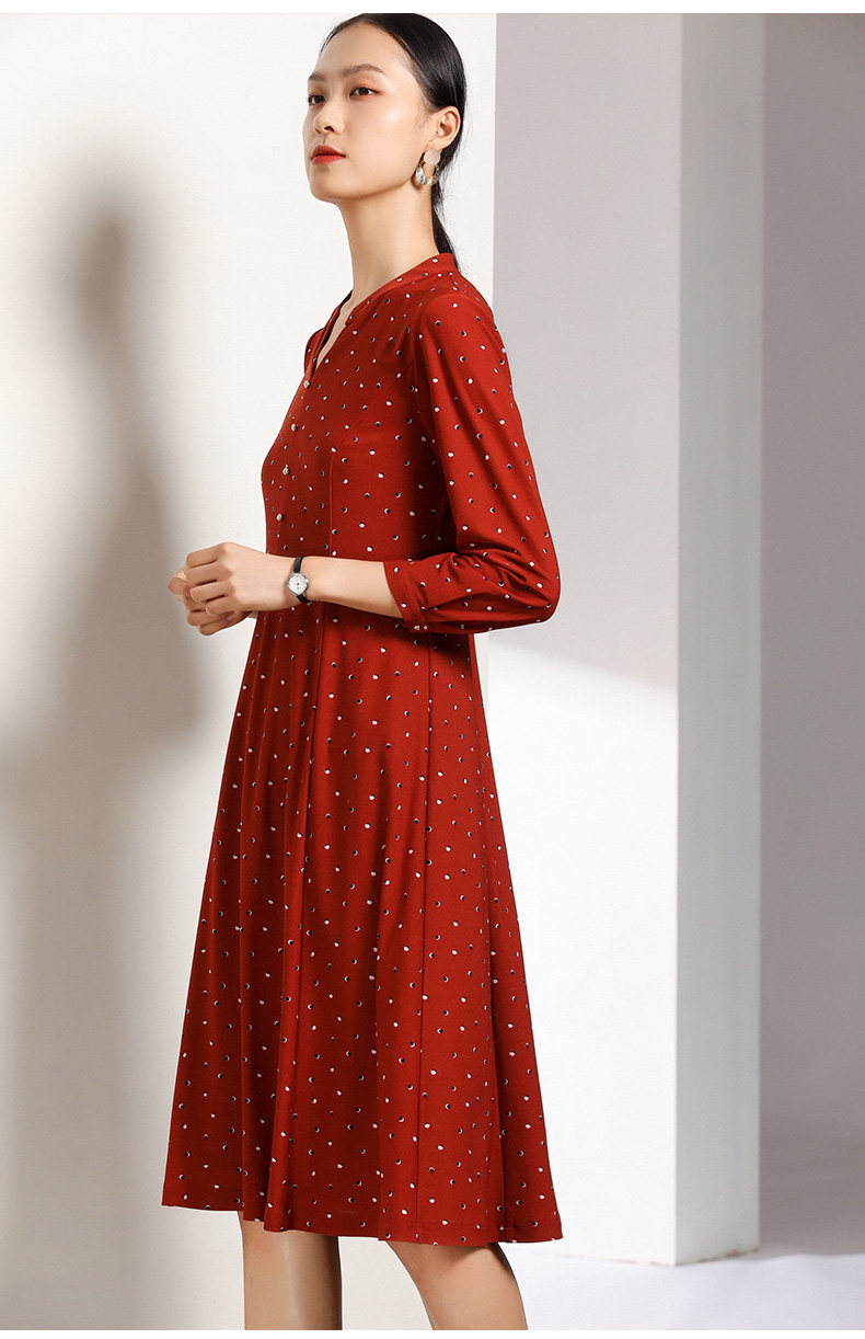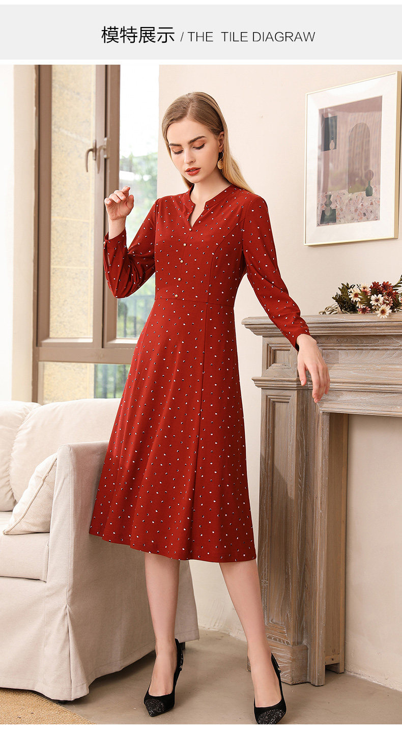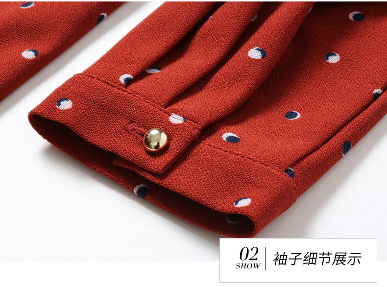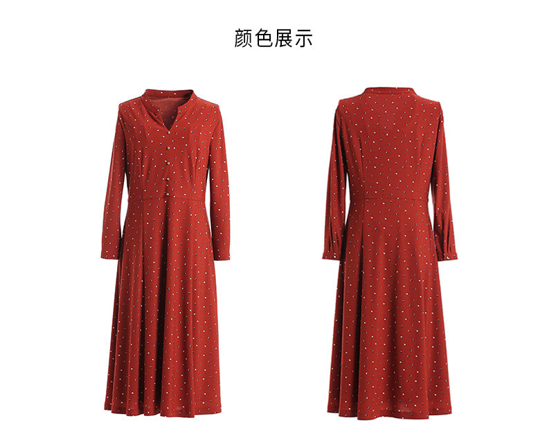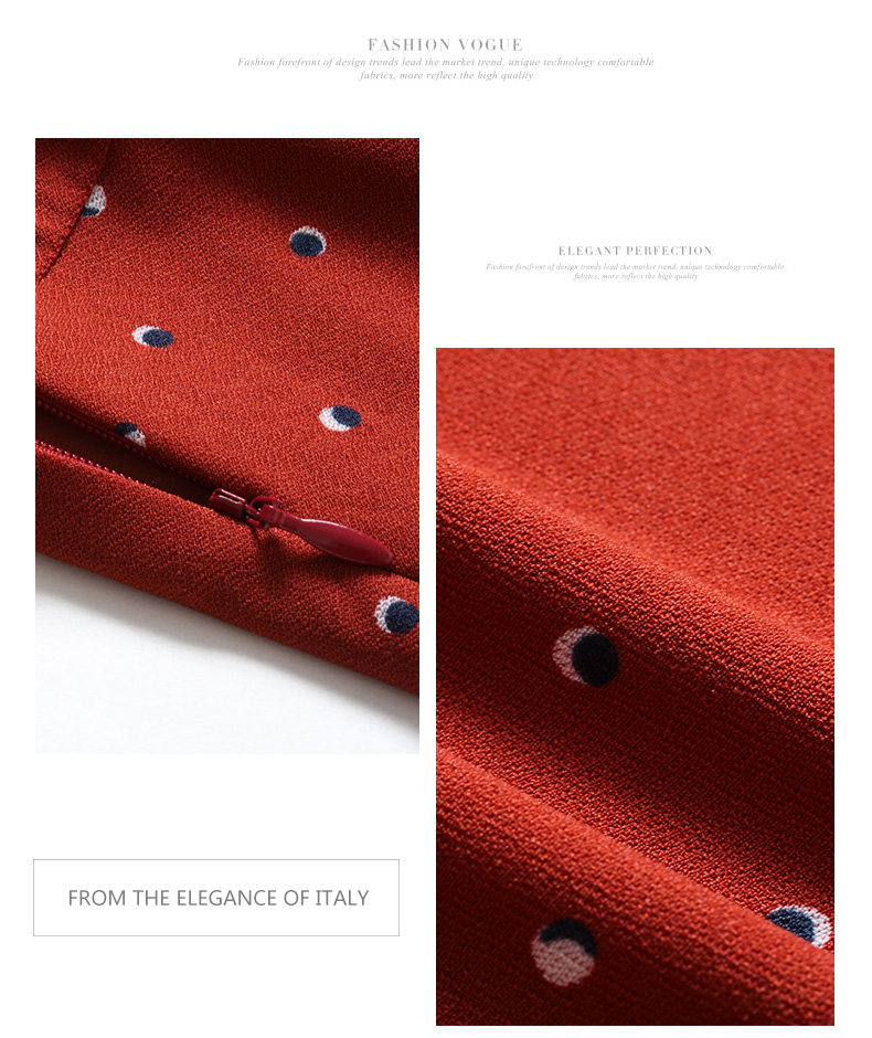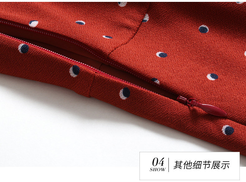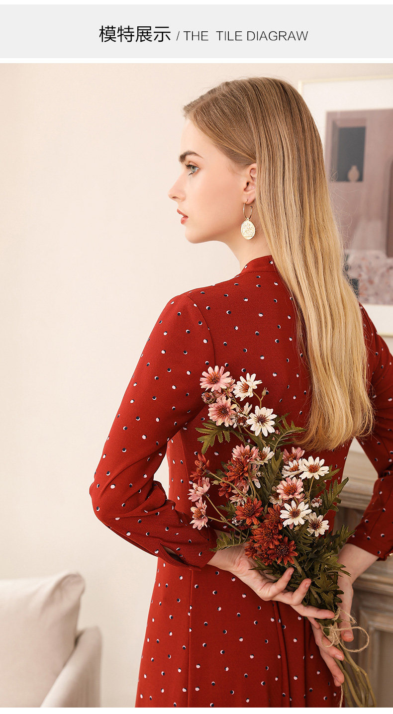 乔万尼秋装流行修身气质红色波点长袖连衣裙中长款EN3E311