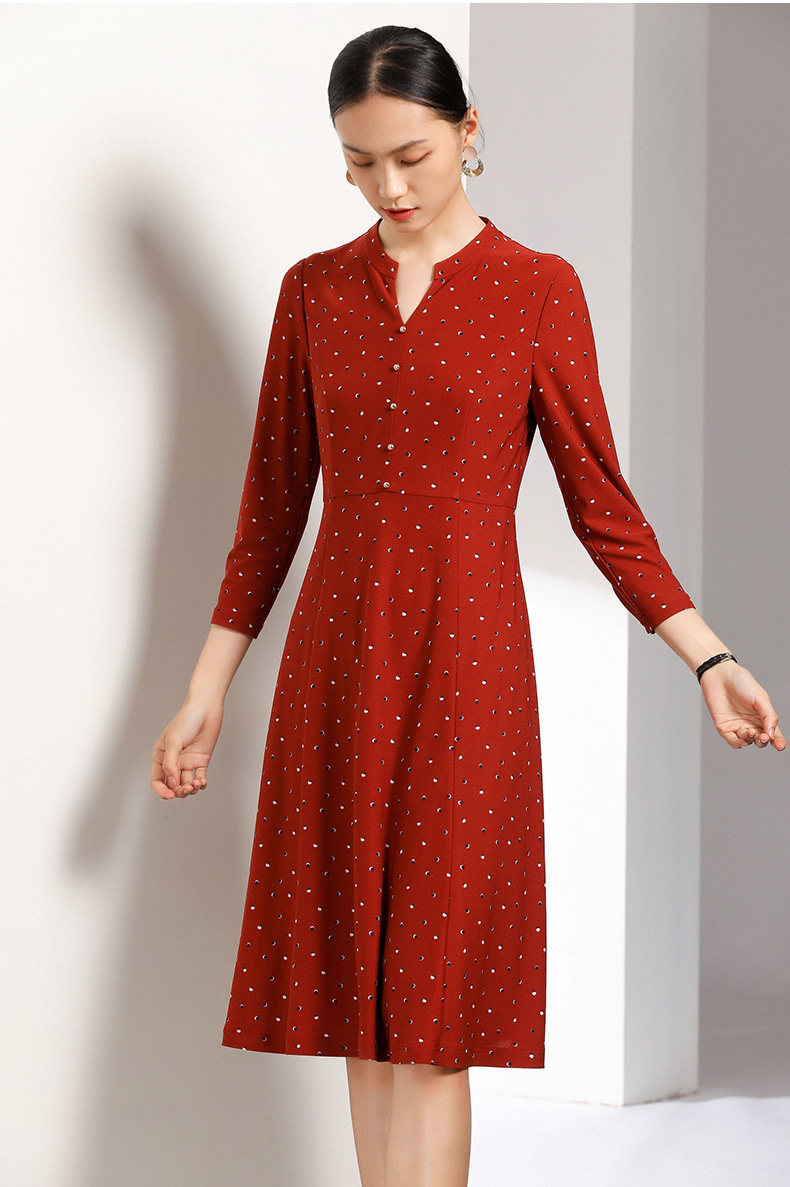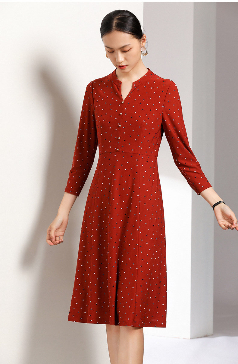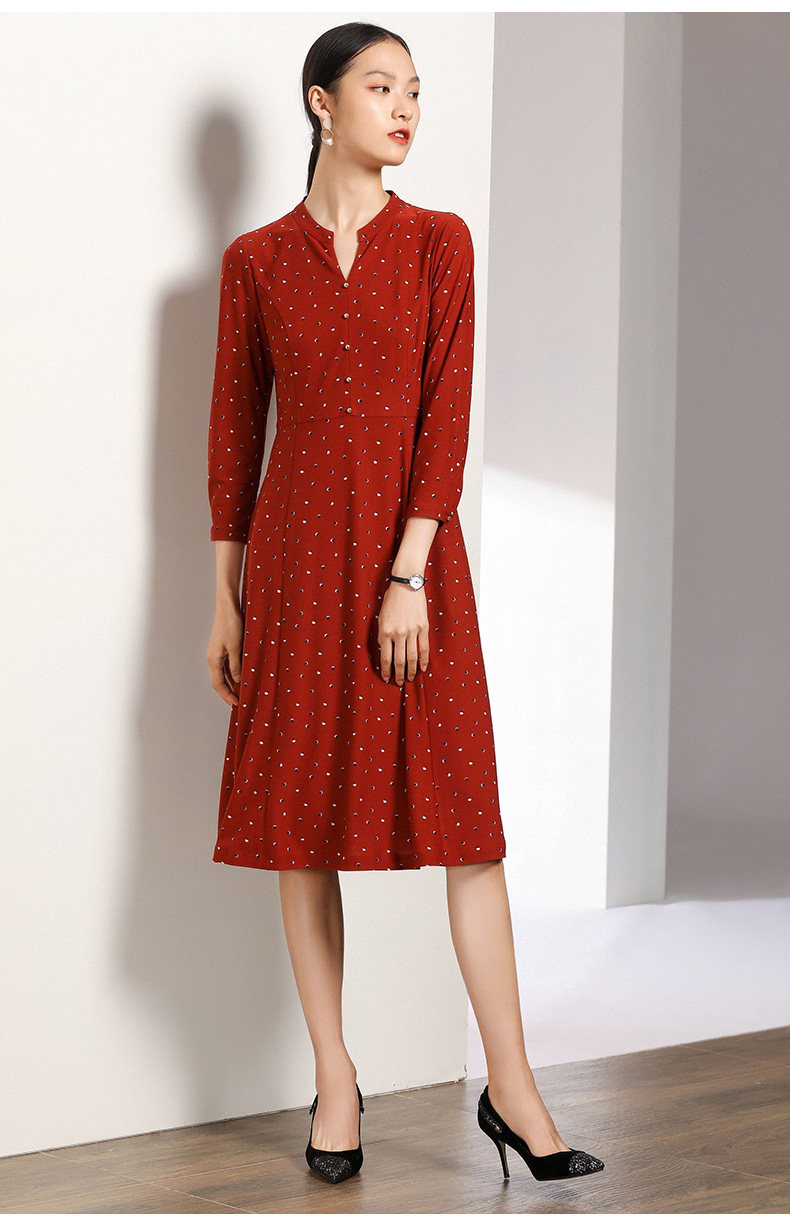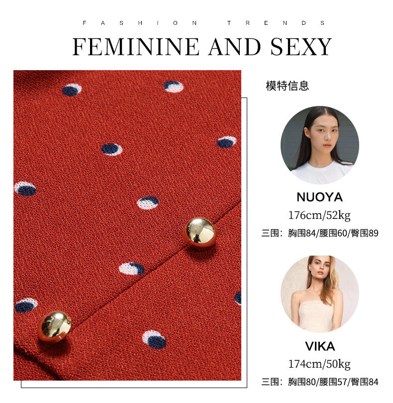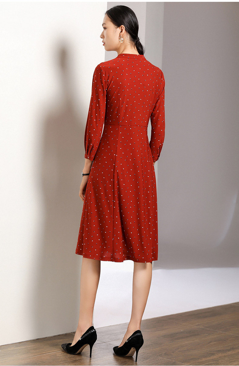 乔万尼秋装流行修身气质红色波点长袖连衣裙中长款EN3E311