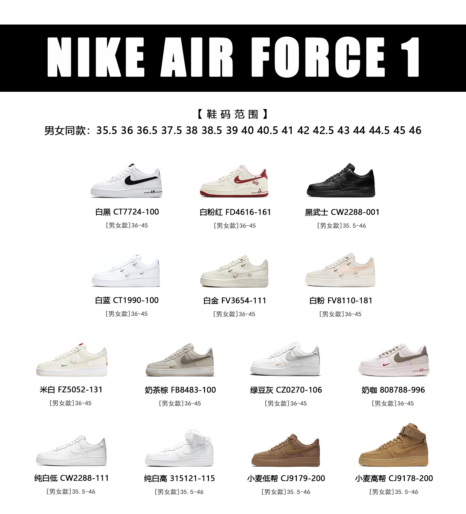 情侣鞋shou选!14个配色!就是经典! 鞋柜里永远都要有的空军一号,全部情侣码