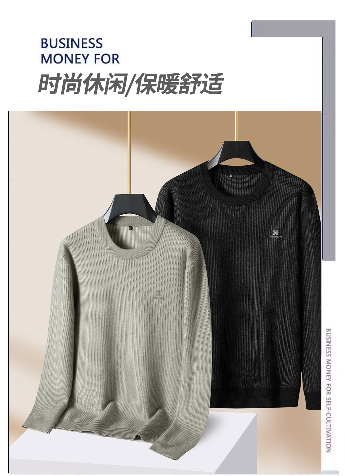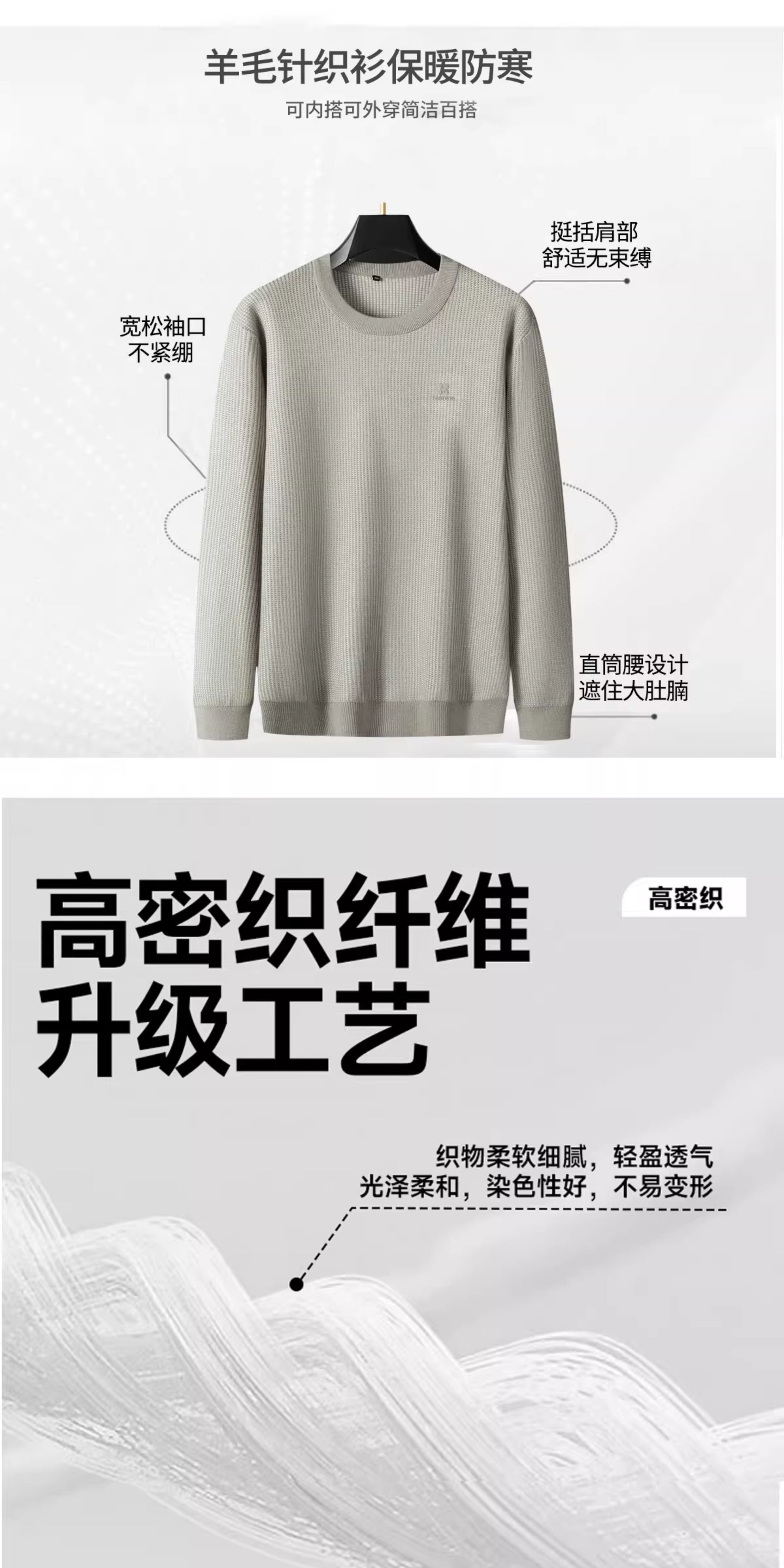 【DPS】【含绵羊毛】大依优型大码男装针织衫毛衣圆领长袖打底衫简约