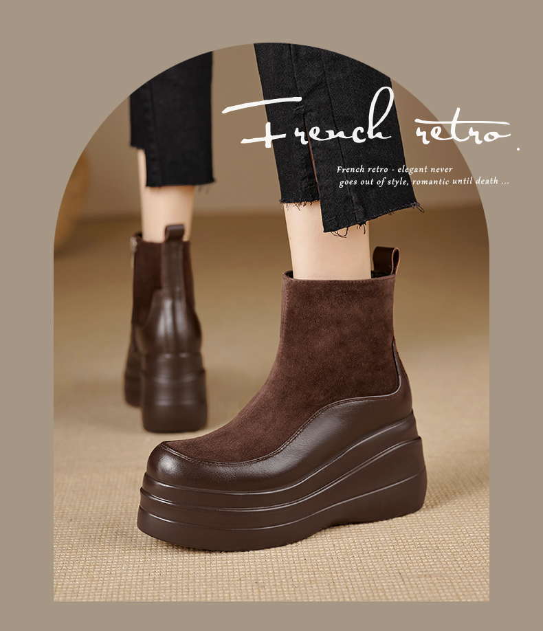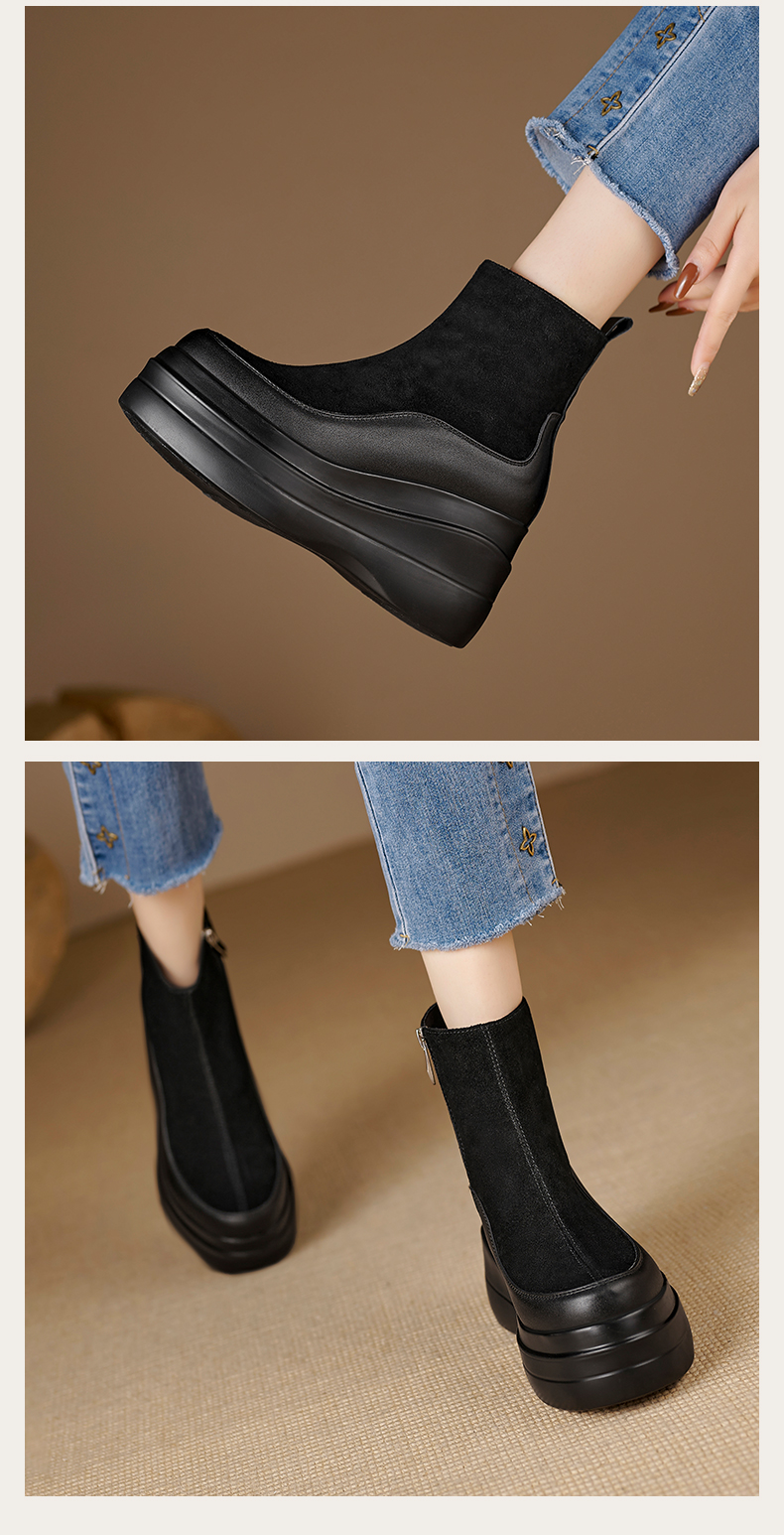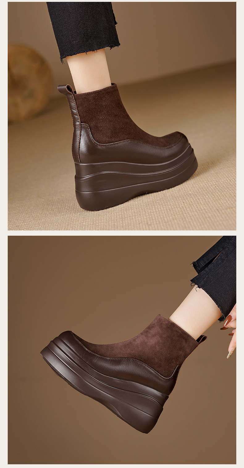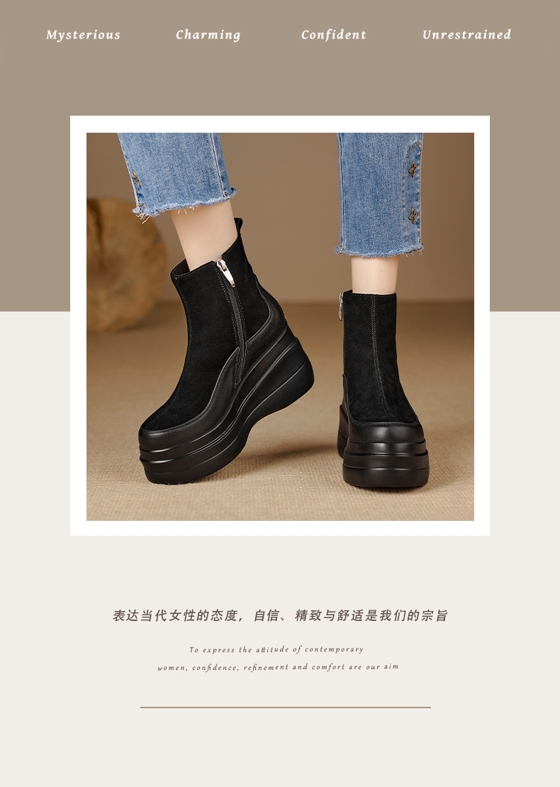 简约舒适,高跟防水台真皮拼接靴子MQE-G82-5