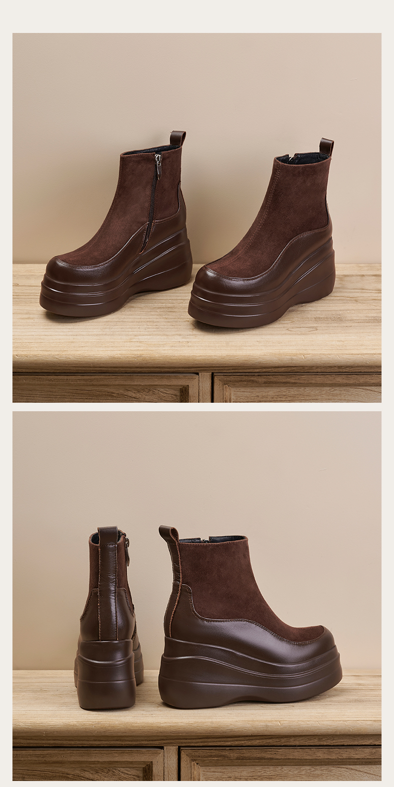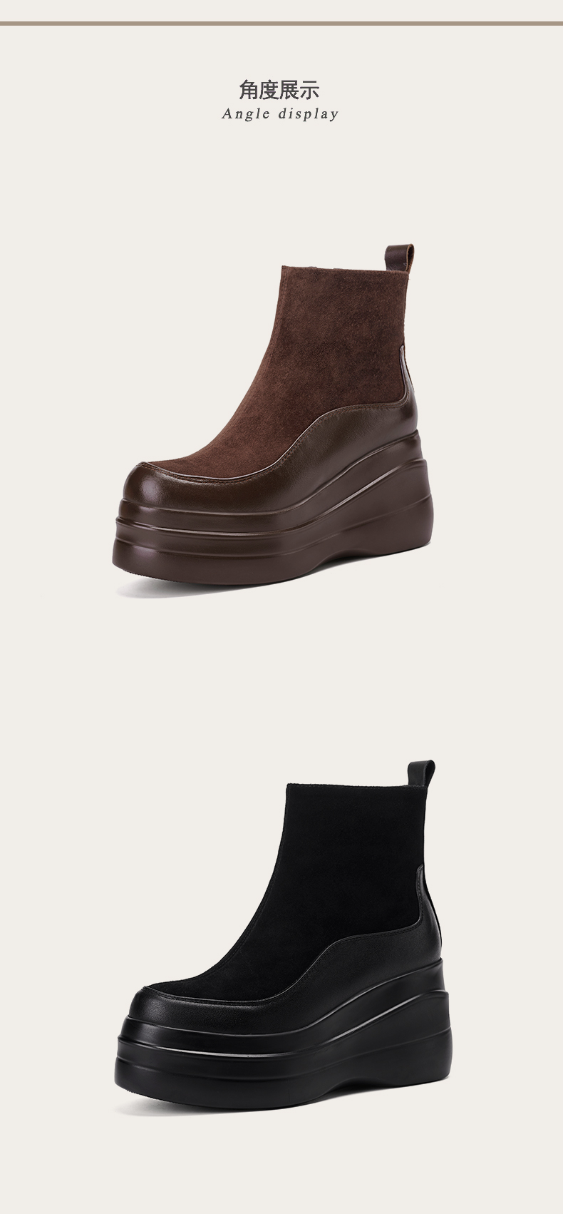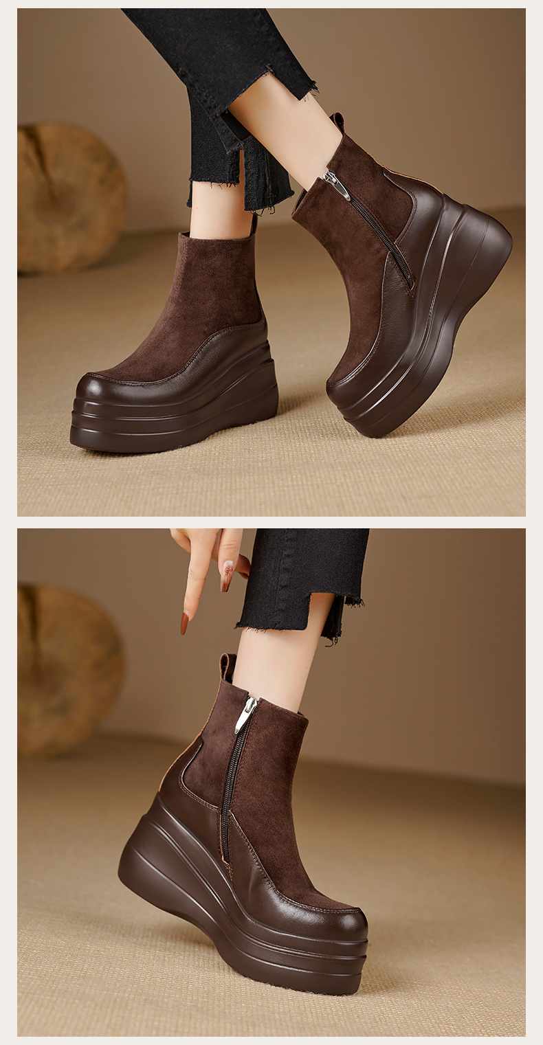 简约舒适,高跟防水台真皮拼接靴子MQE-G82-5