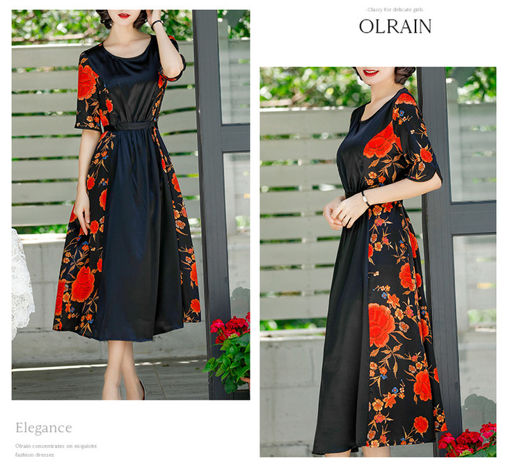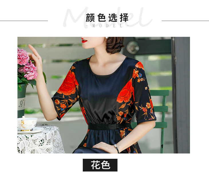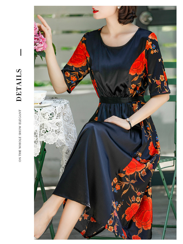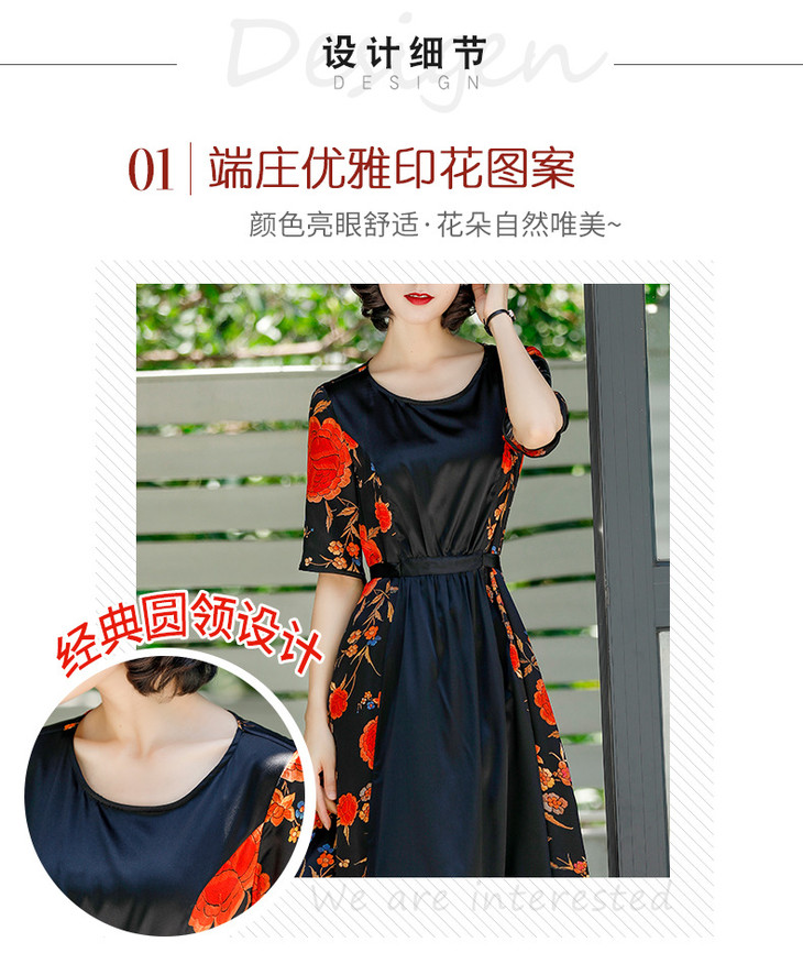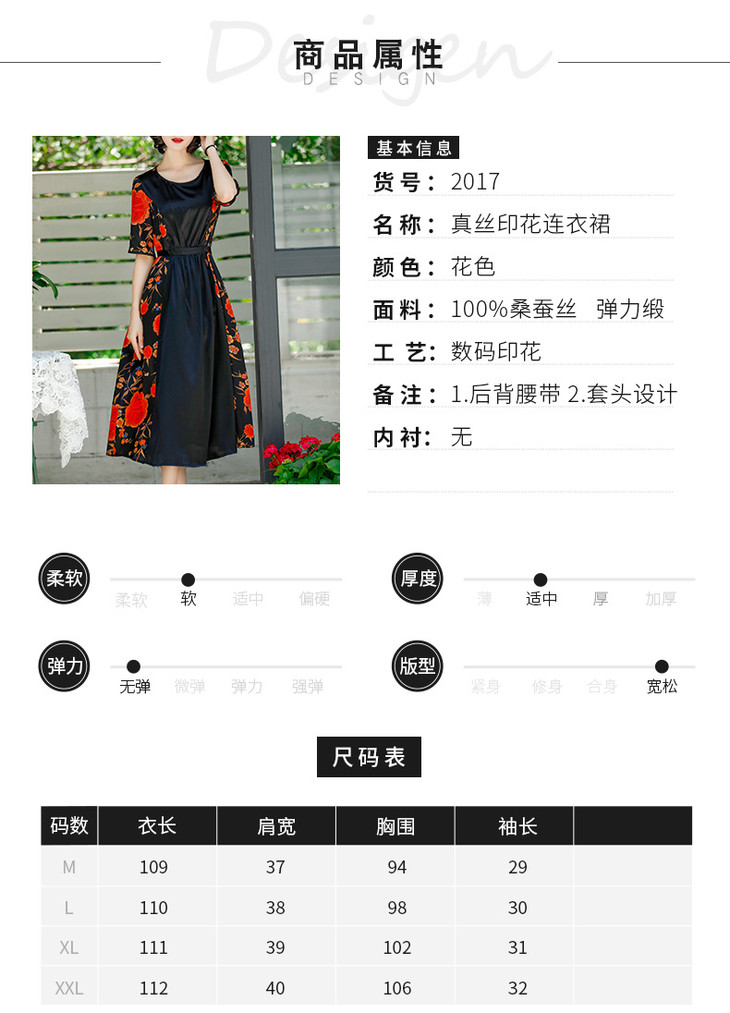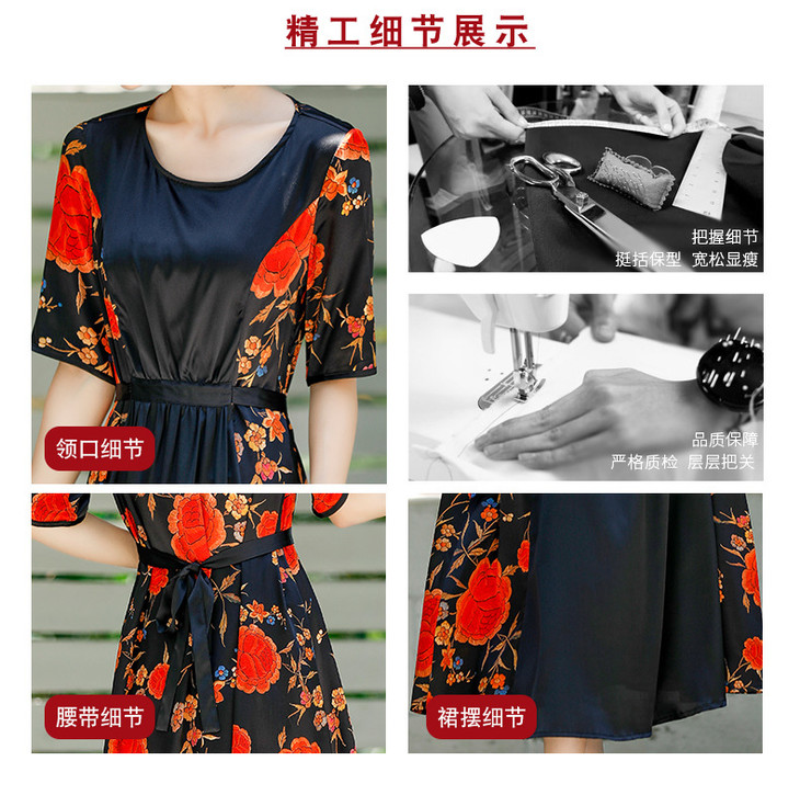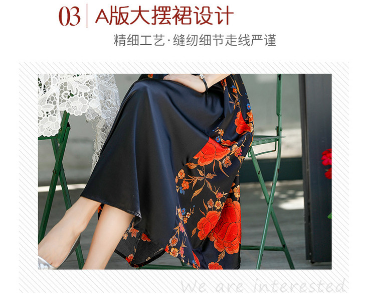 NYT-2017原创印花连衣裙真丝A字裙收腰显瘦长裙
