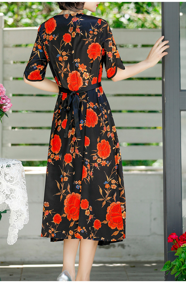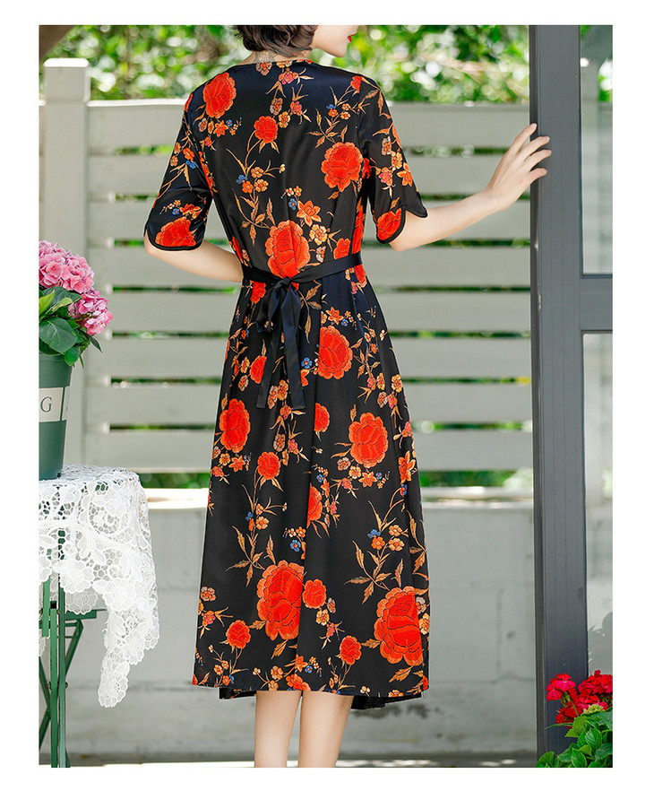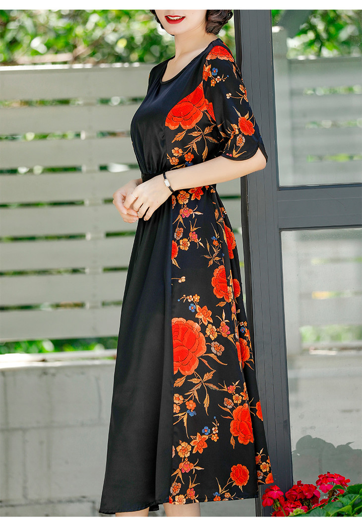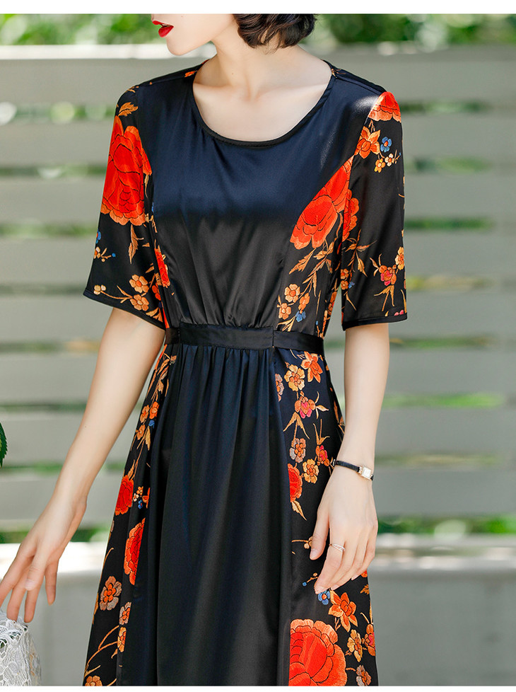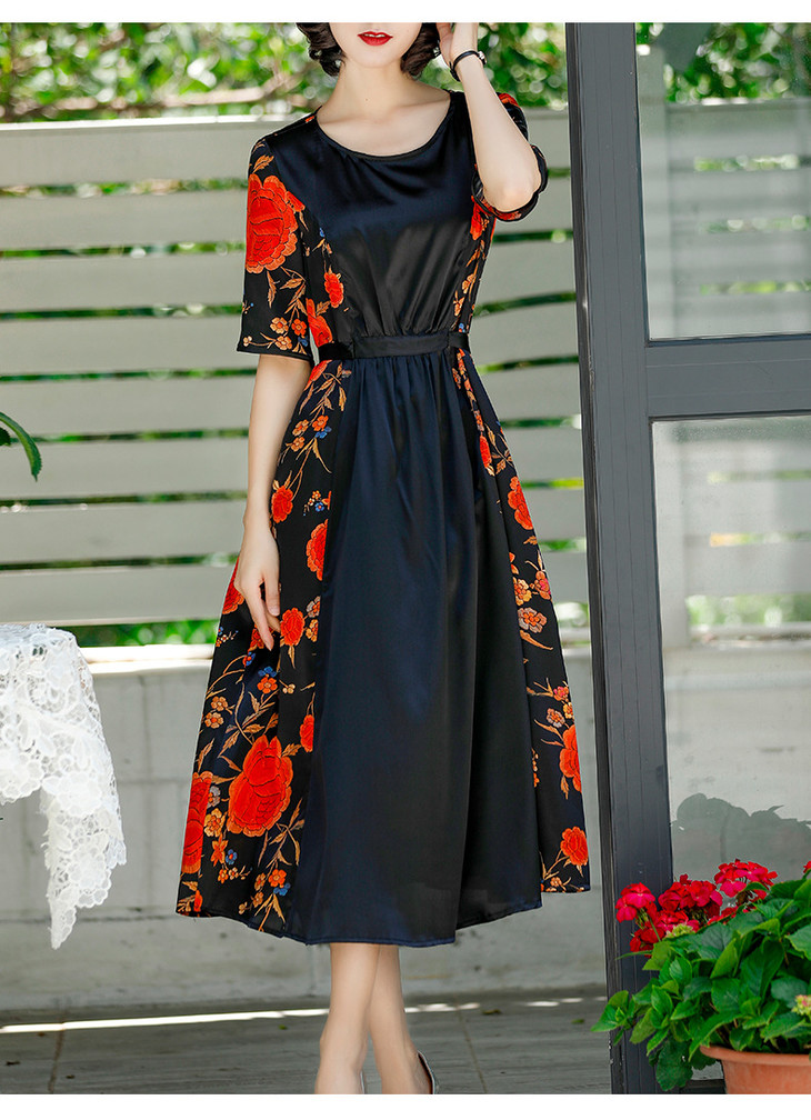 NYT-2017原创印花连衣裙真丝A字裙收腰显瘦长裙