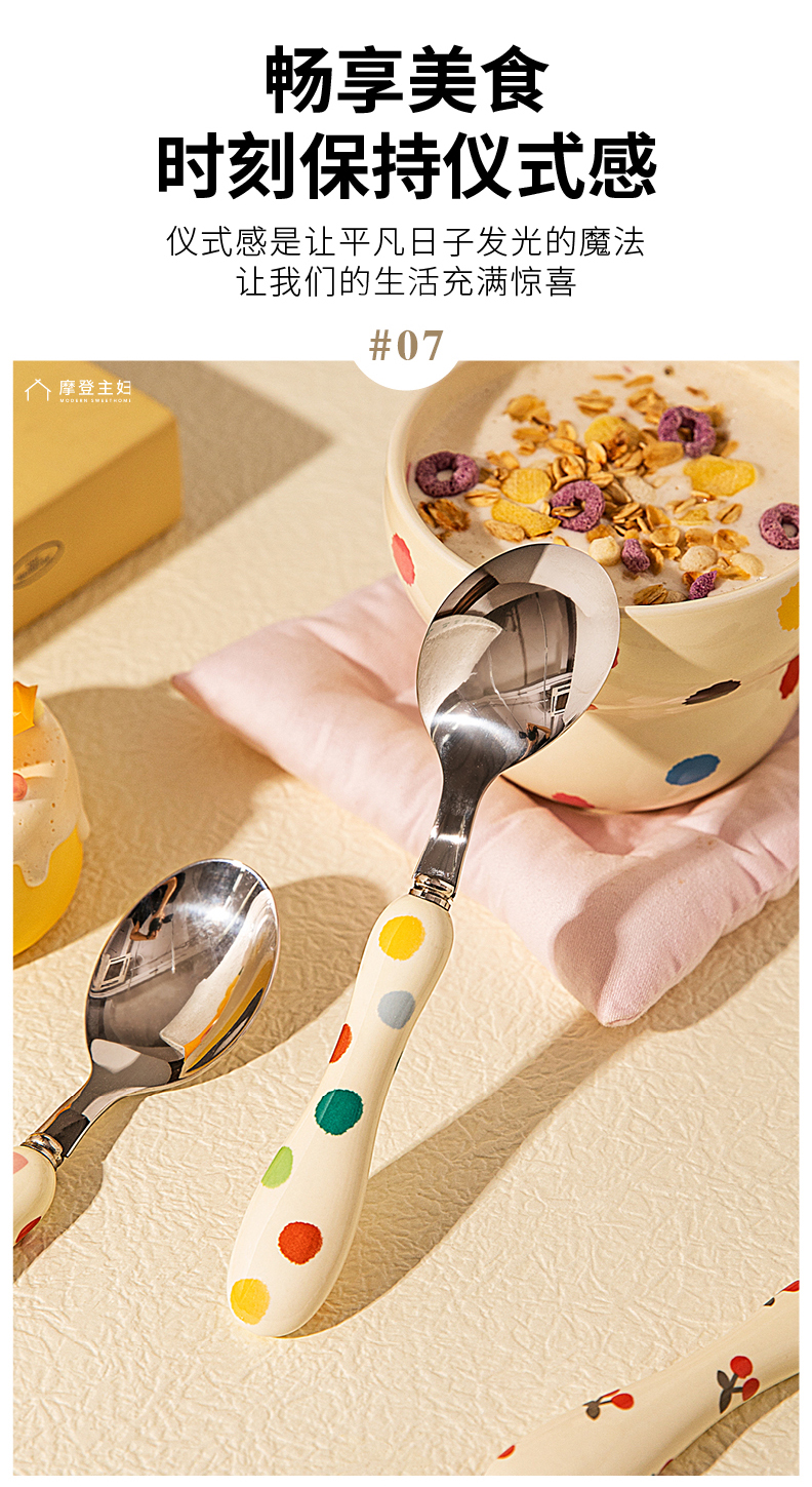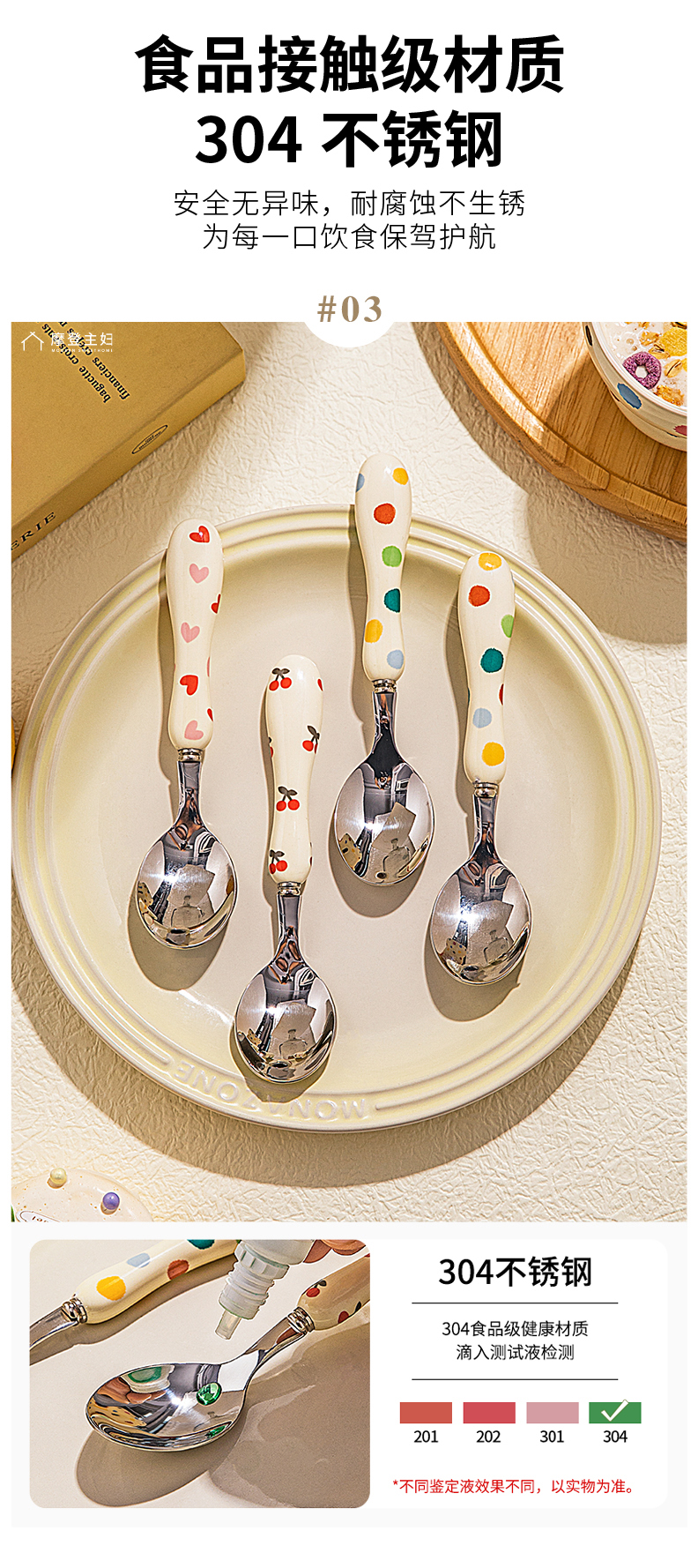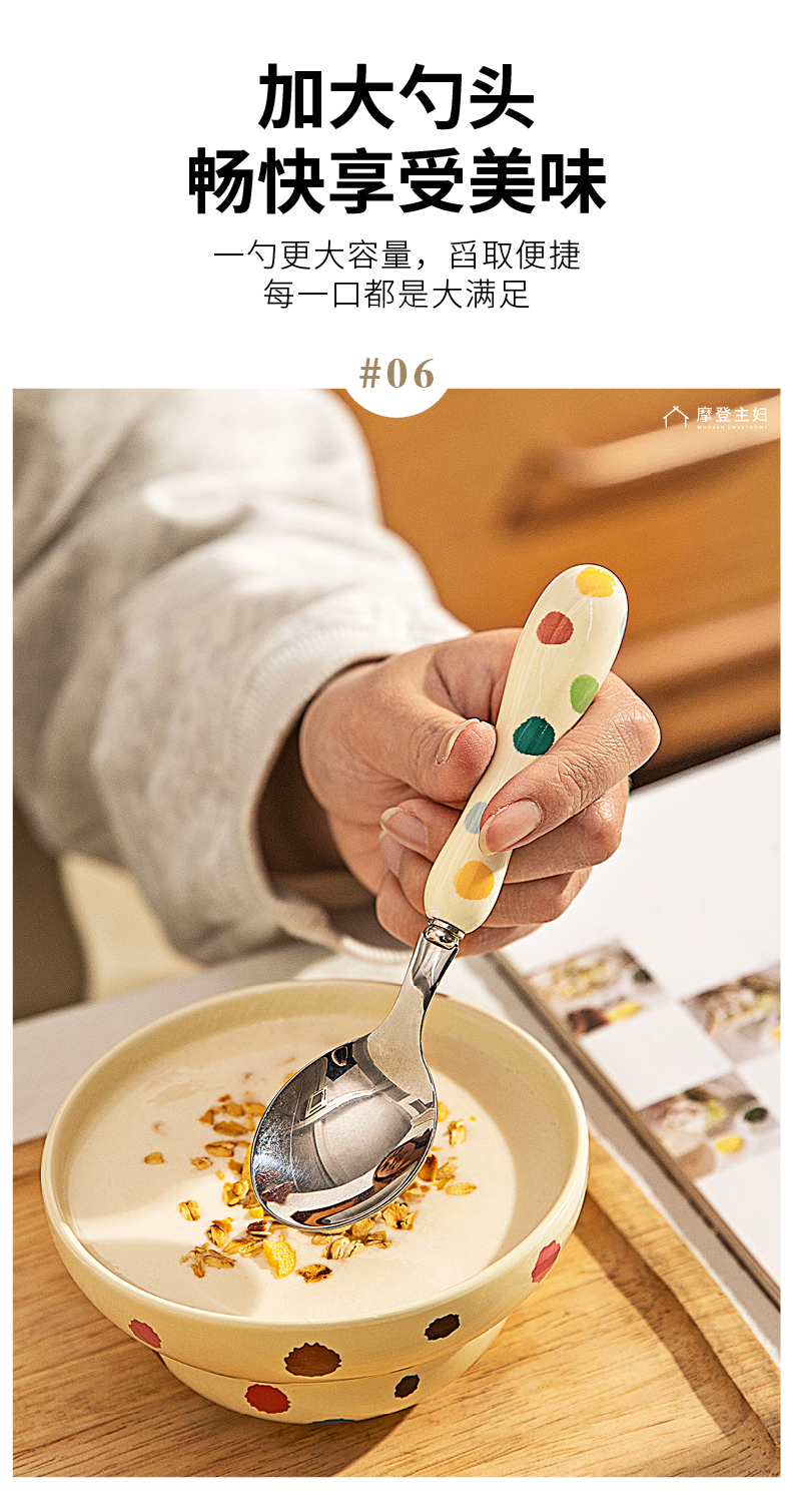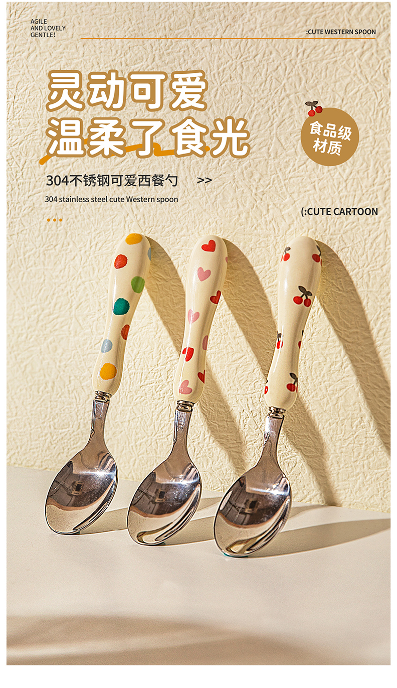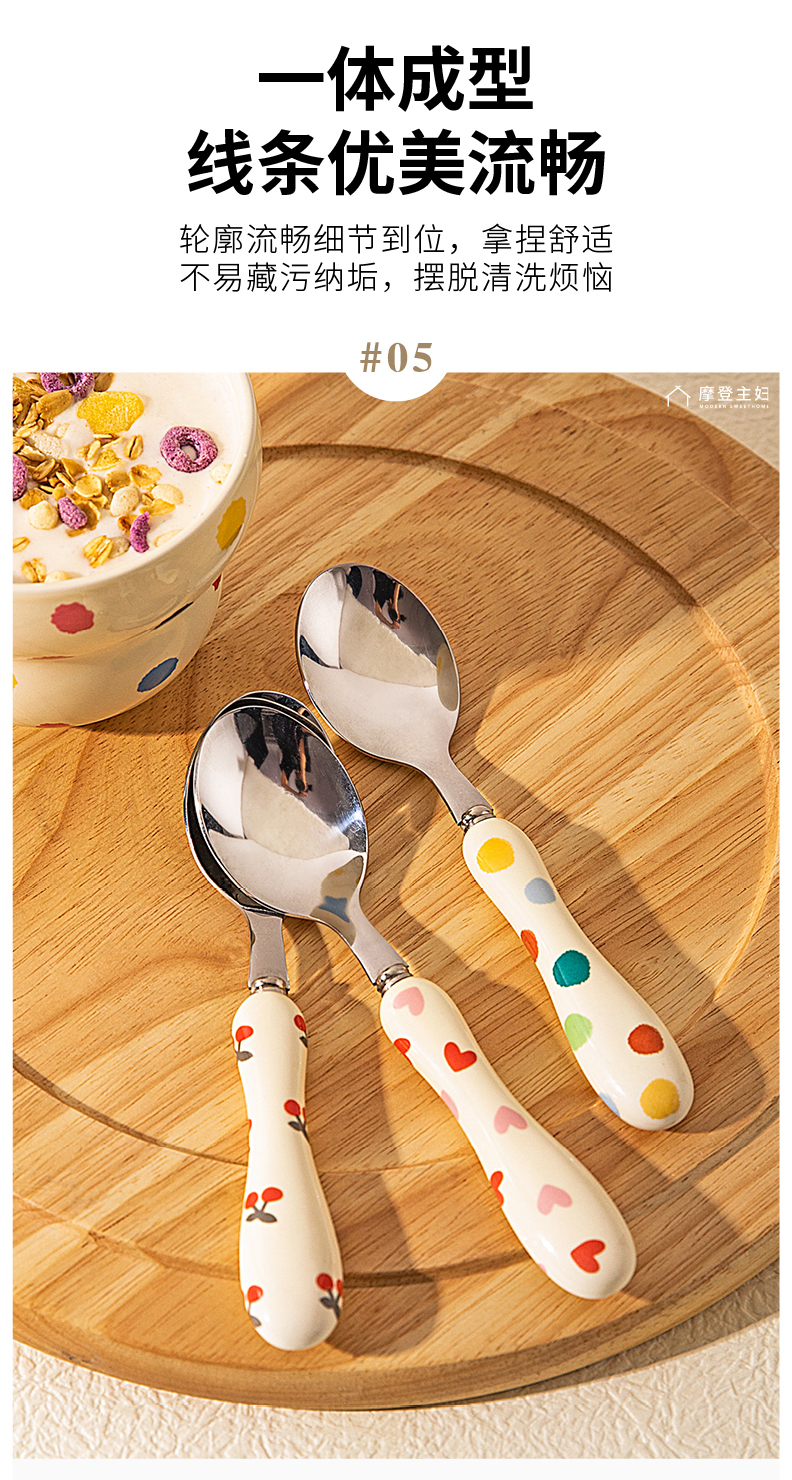 摩登主妇304不锈钢勺子儿童家用汤匙铁勺长柄可爱小勺子个人专用