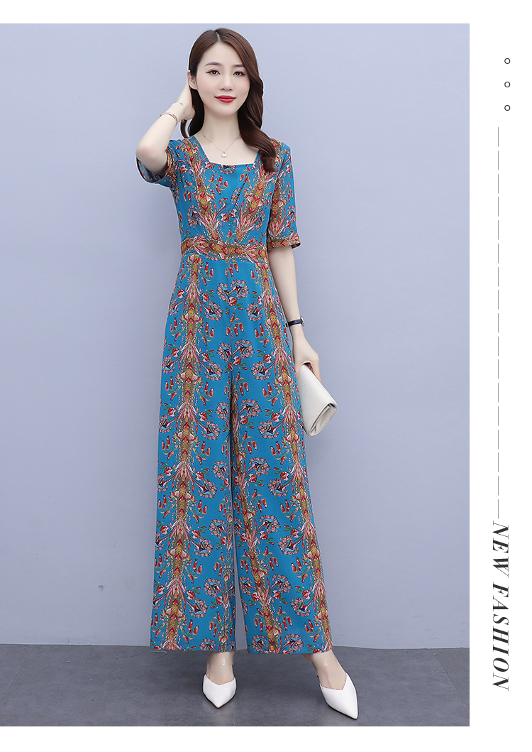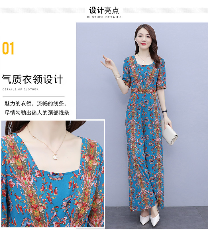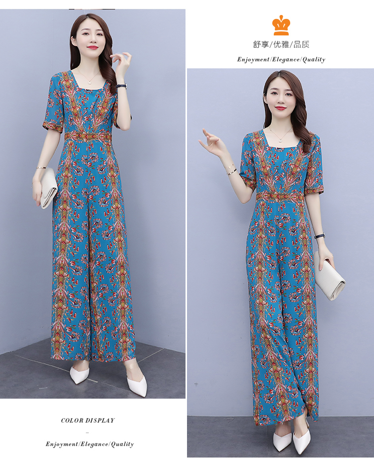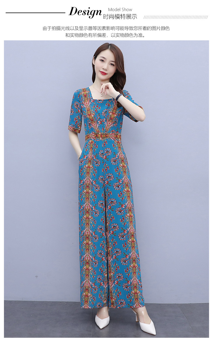 YLDFS8056新款时尚气质高腰方领短袖印花垂感阔腿连体裤