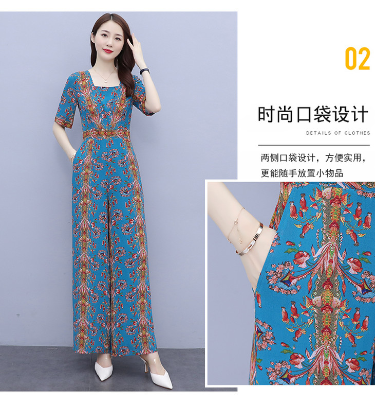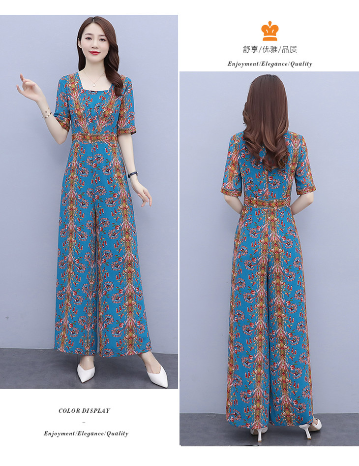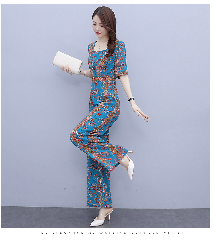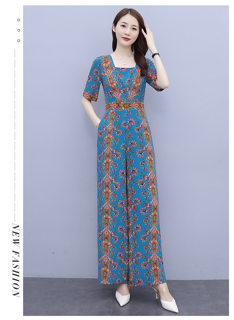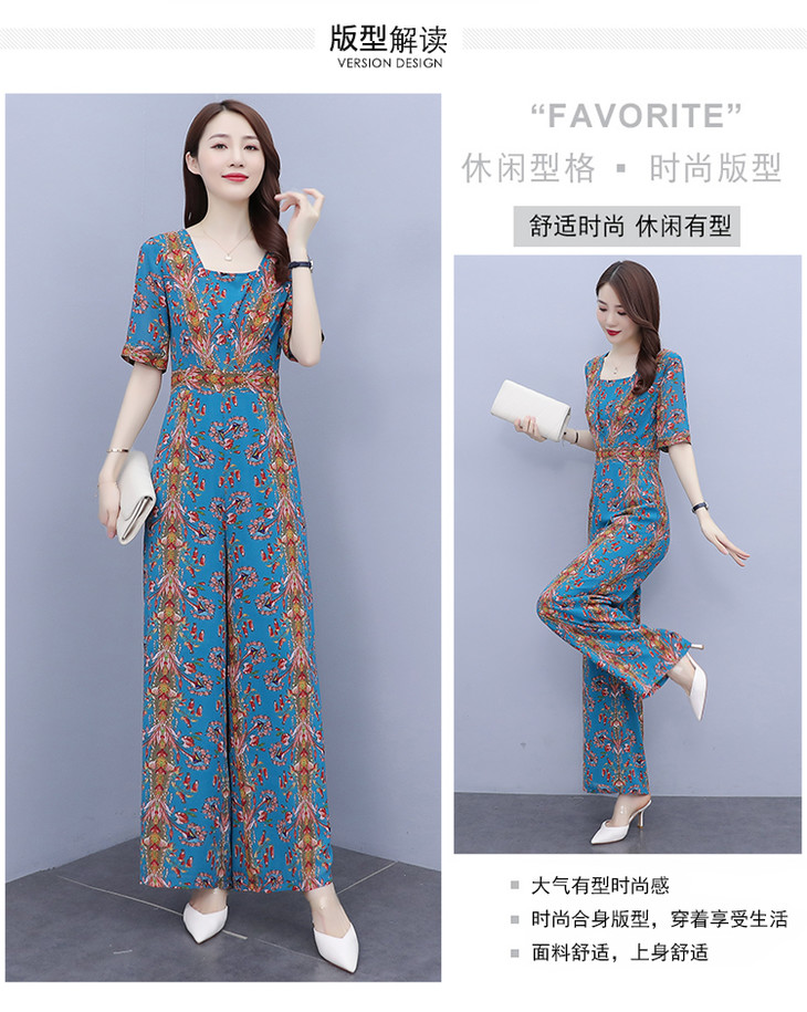 YLDFS8056新款时尚气质高腰方领短袖印花垂感阔腿连体裤