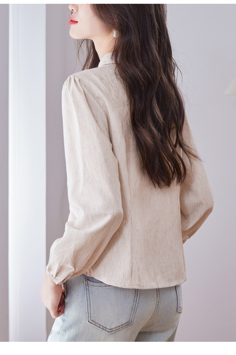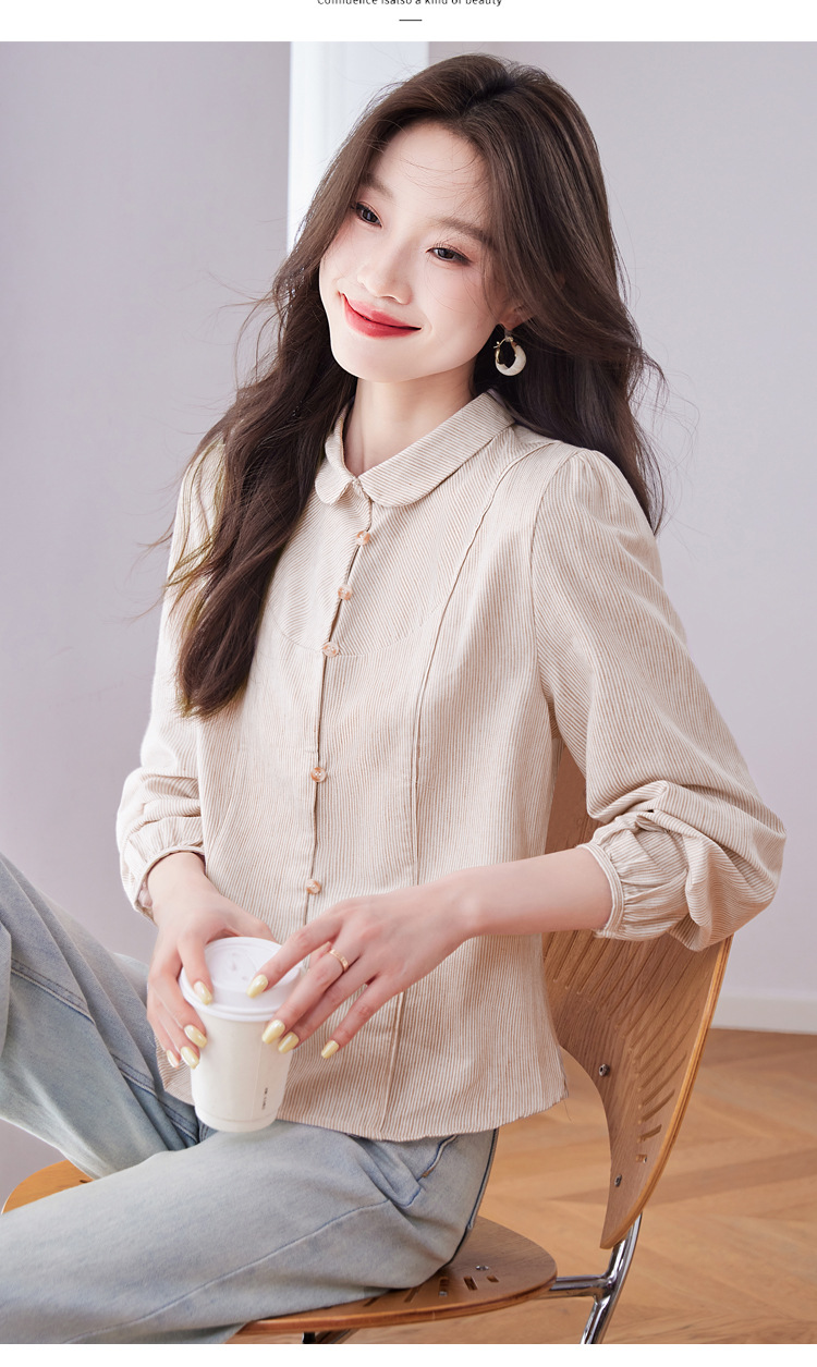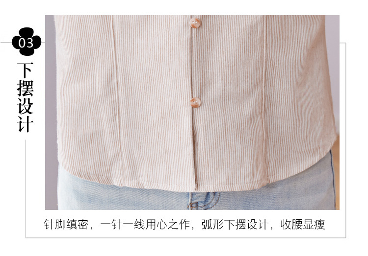 KQL 369h9985棉麻圆领长袖衬衫条纹衬衣设计感修身上衣