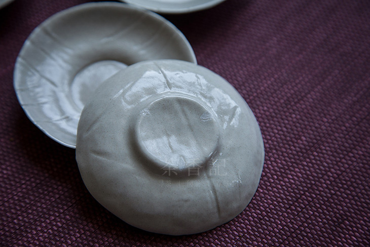 与寻常的茶托不太一样,表面富有肌理质感,