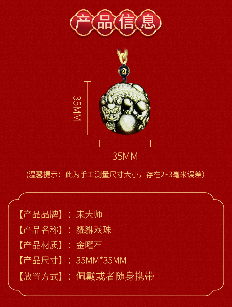 宋韶光新品吉物 貔貅戏珠 金曜石项链吊坠