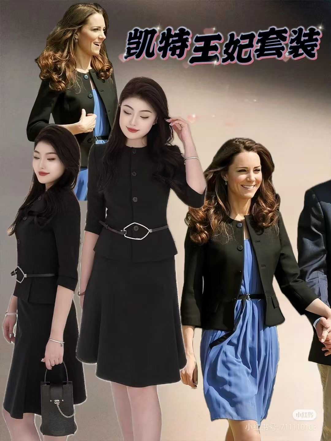【à perles】凯特王妃同款 收腰开叉精纺羊毛西装套装裙 【7天左右】