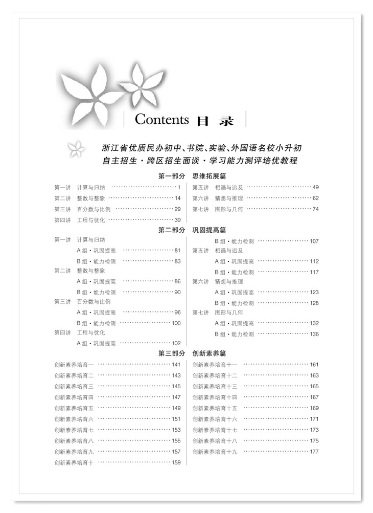因此书定位为中等偏上学生使用的复习资料,所以在题目选择上超越基础题目,以提升拓展题目为主。