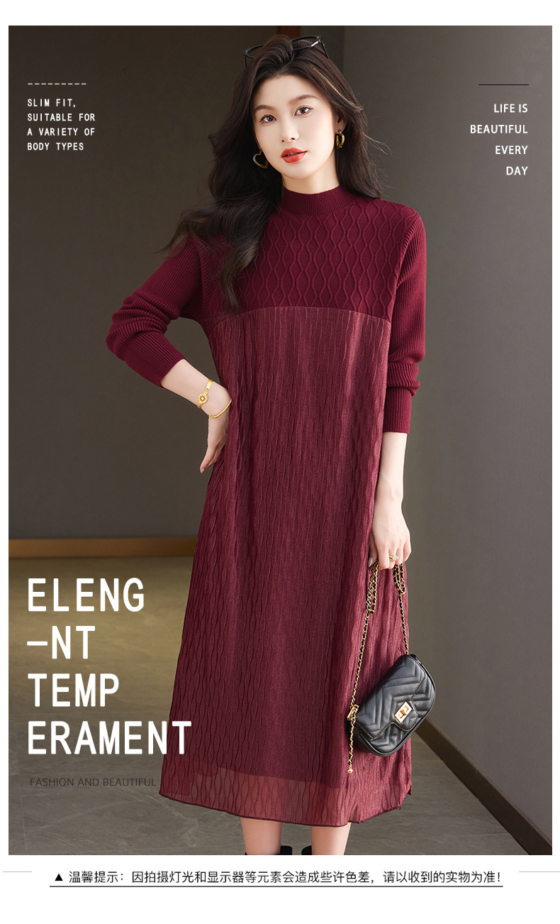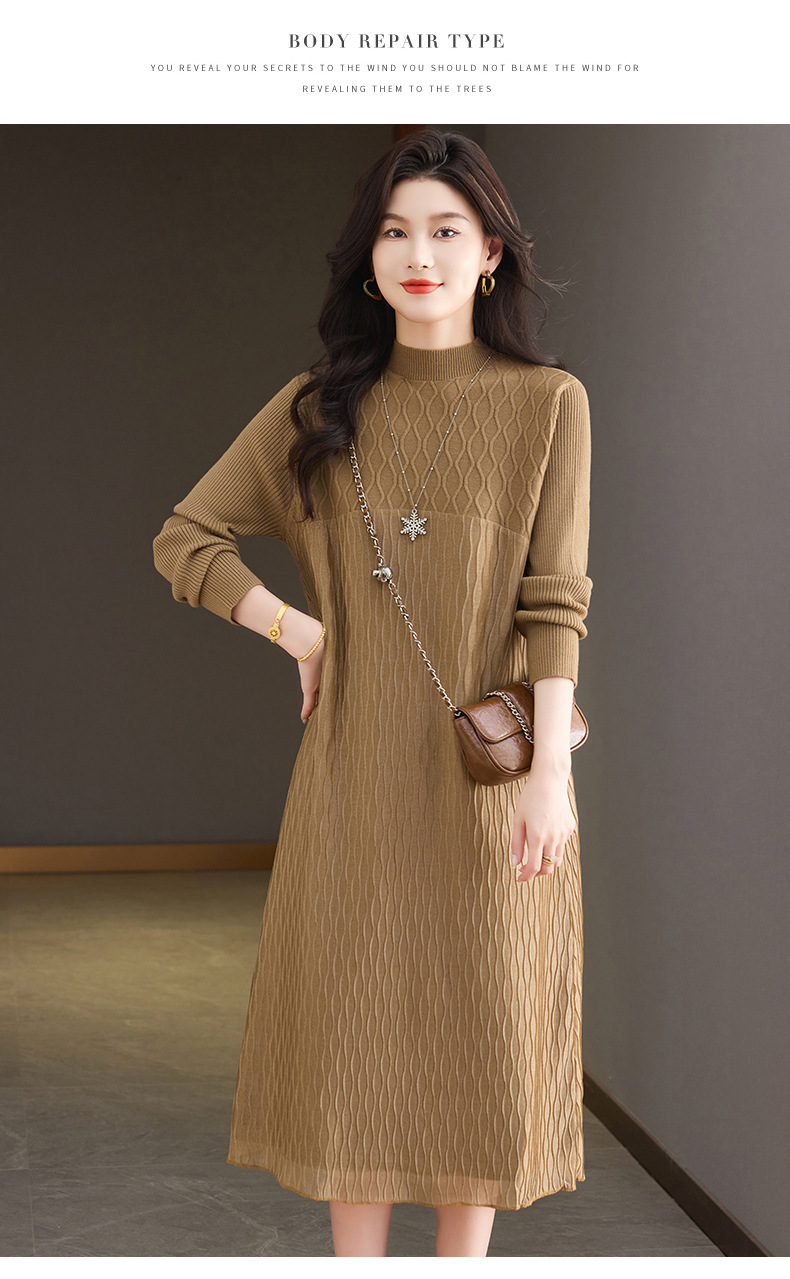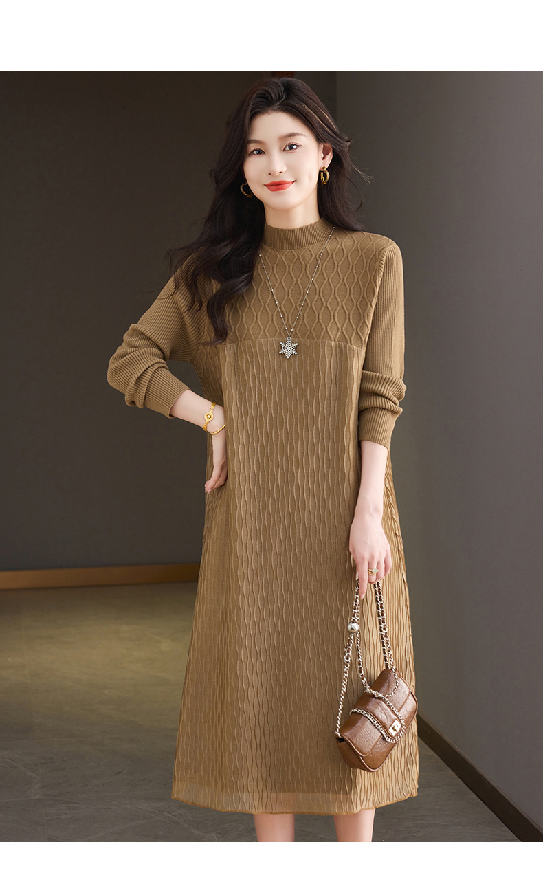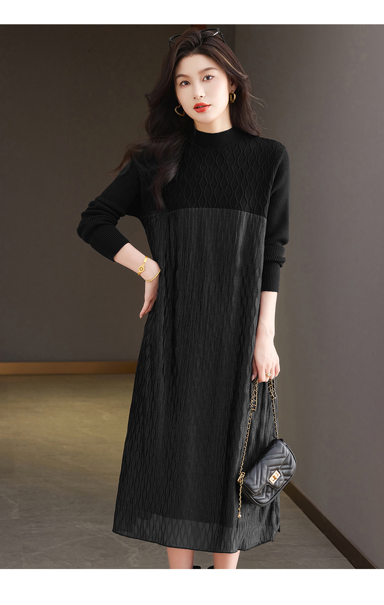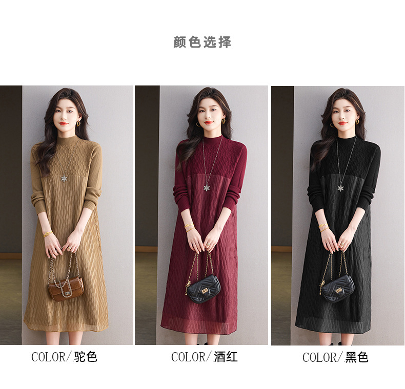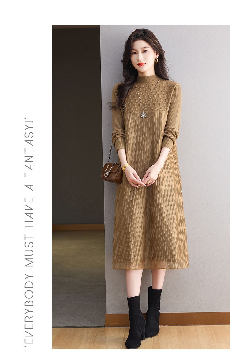 CC网纱拼接连衣裙秋冬高级感气质显瘦毛衣裙长款过膝配大衣内搭裙子