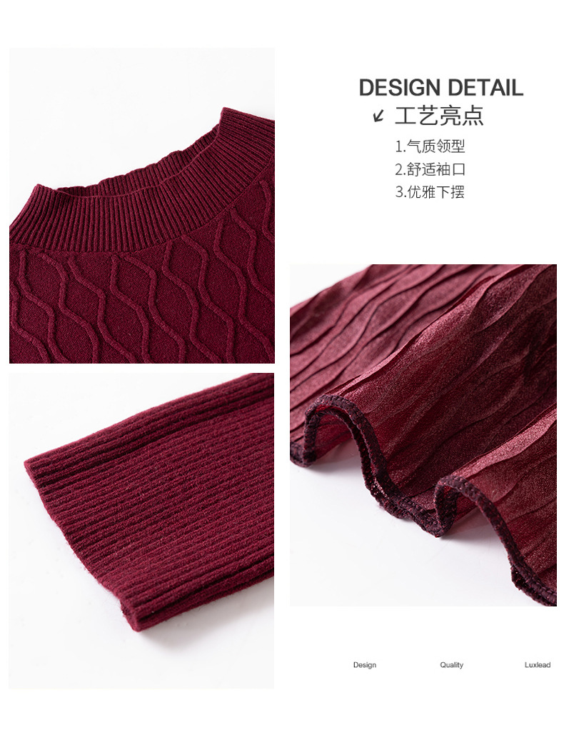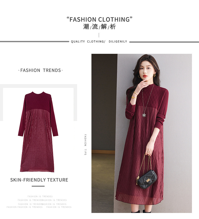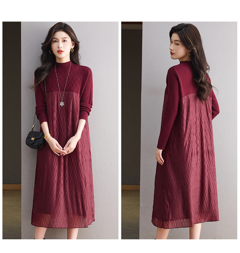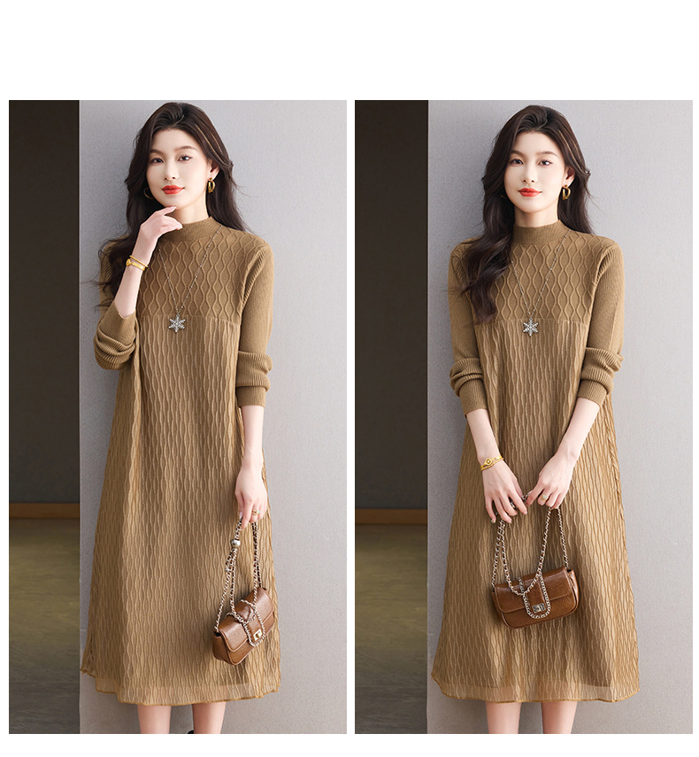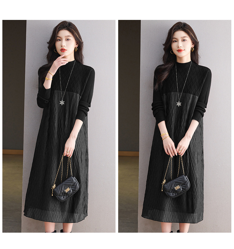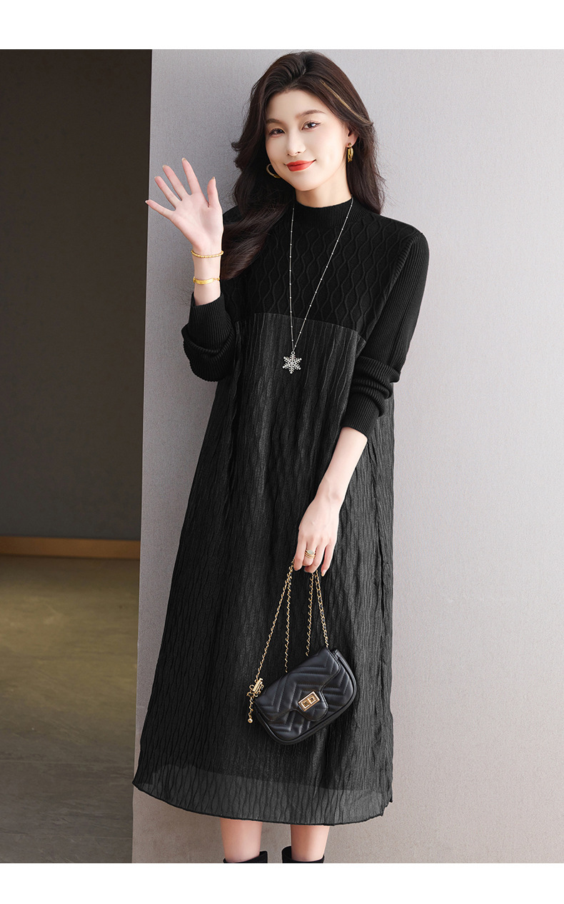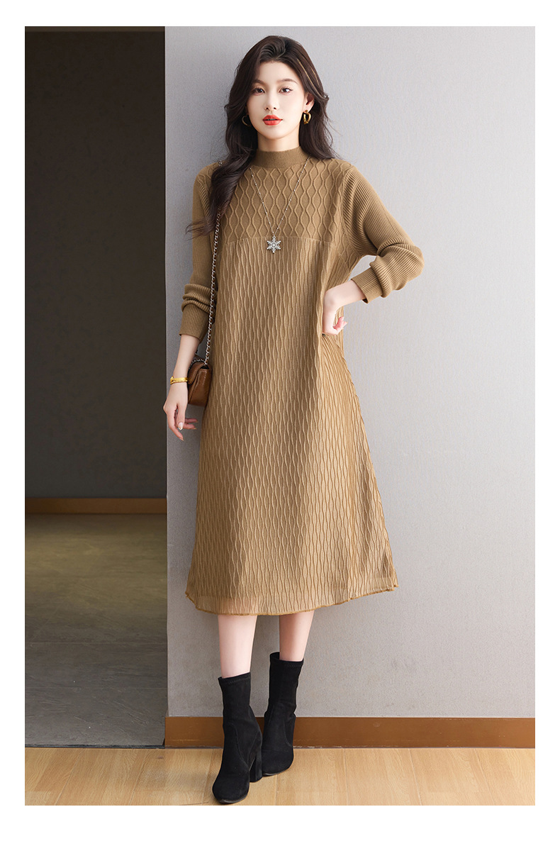 CC网纱拼接连衣裙秋冬高级感气质显瘦毛衣裙长款过膝配大衣内搭裙子