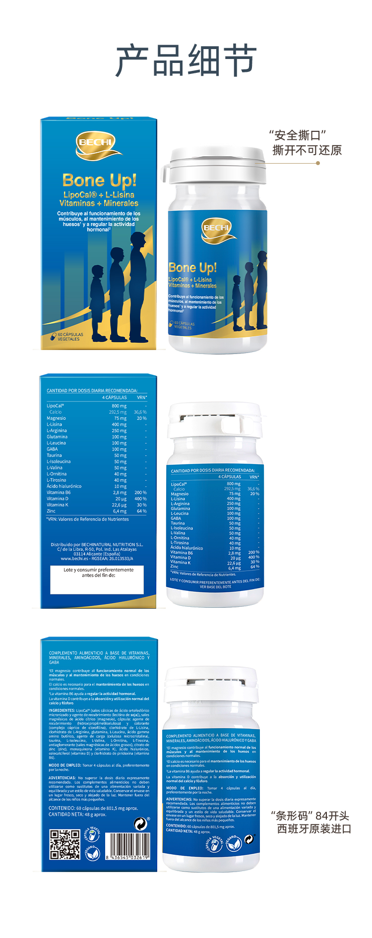 西班牙 BECHI骨力高胶囊 60粒/瓶 效期至26年2月